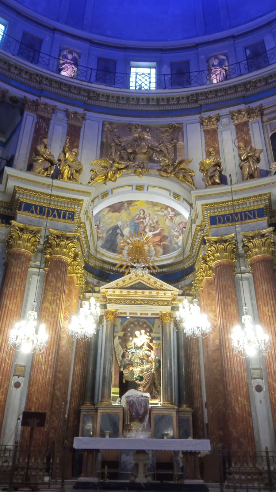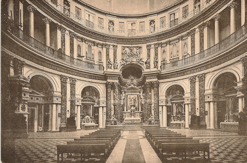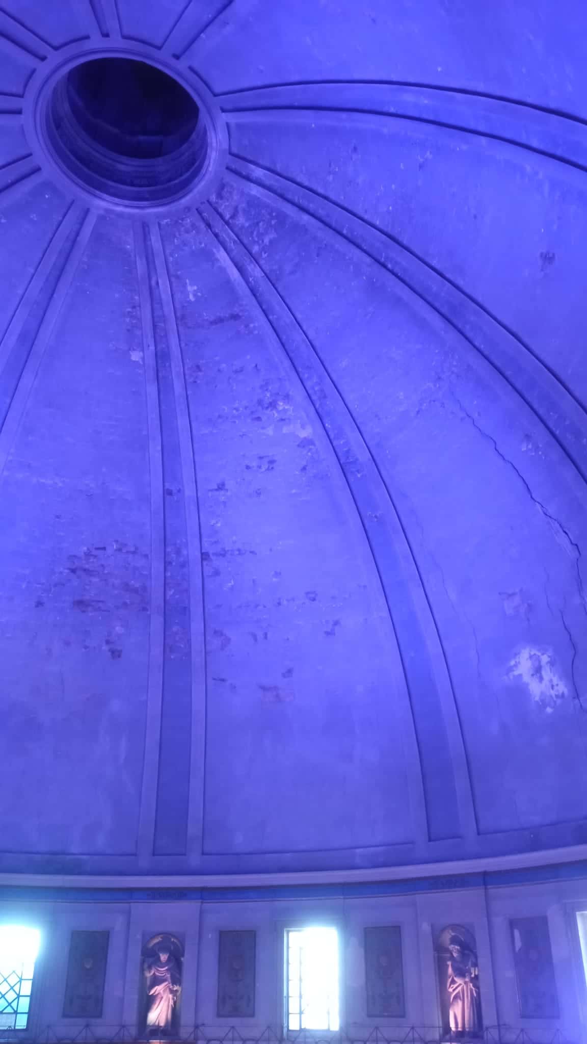 De planta circular cuenta con una altura de 48 metros y 24.5 de diámetro, y al levantar la cabeza la vista se pierde en la gran cúpula de linterna de 24 metros de diámetro. El piso de la rotonda descansa sobre una gran cripta que encerraba el panteón de la comunidad religiosa.