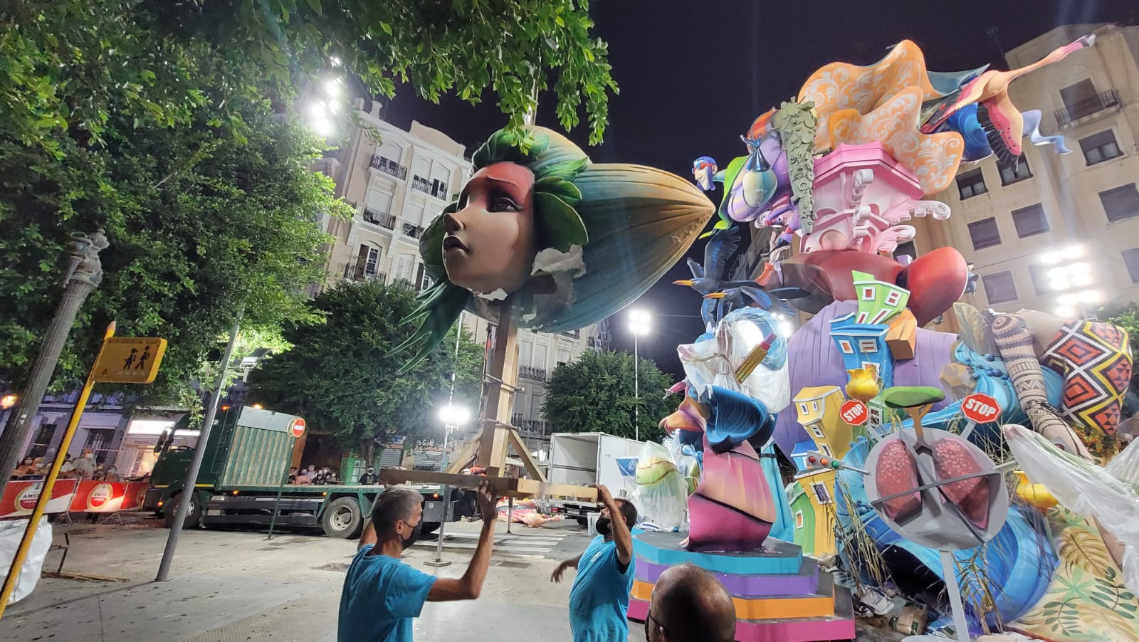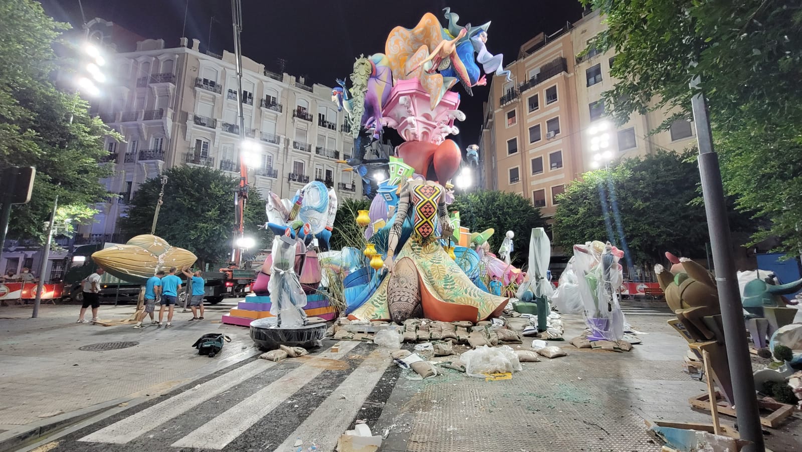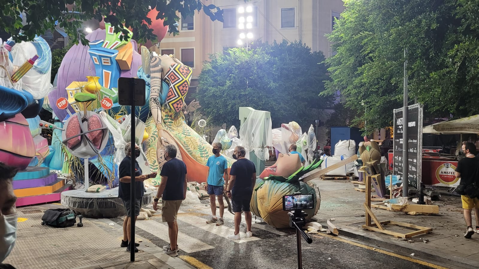 GALERÍA| La lluvia tumba un remate de la falla Sueca-Literato Azorín