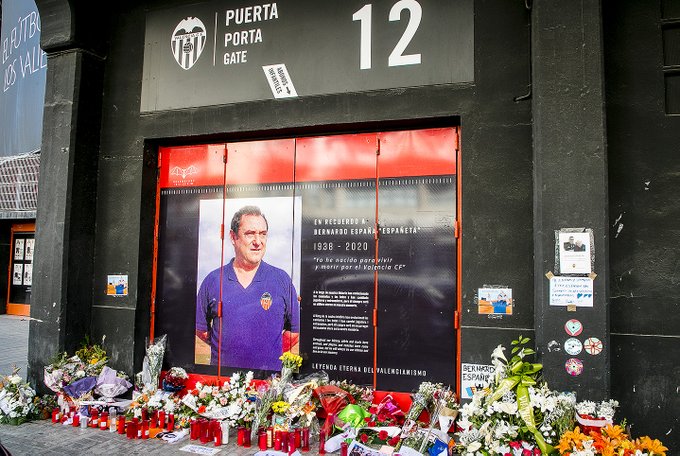En el próximo partido del València como local, el vestuario en el que tantas horas pasó Bernardo pasará a llamarse de manera oficial «Vestuario Bernardo España ‘Españeta’». Uno de sus asientos estará vacío para siempre, con una imagen y una placa conmemorativa dedicadas a recordar su figura dentro del lugar en que estuvo sirviendo al Valencia durante más de cinco décadas.