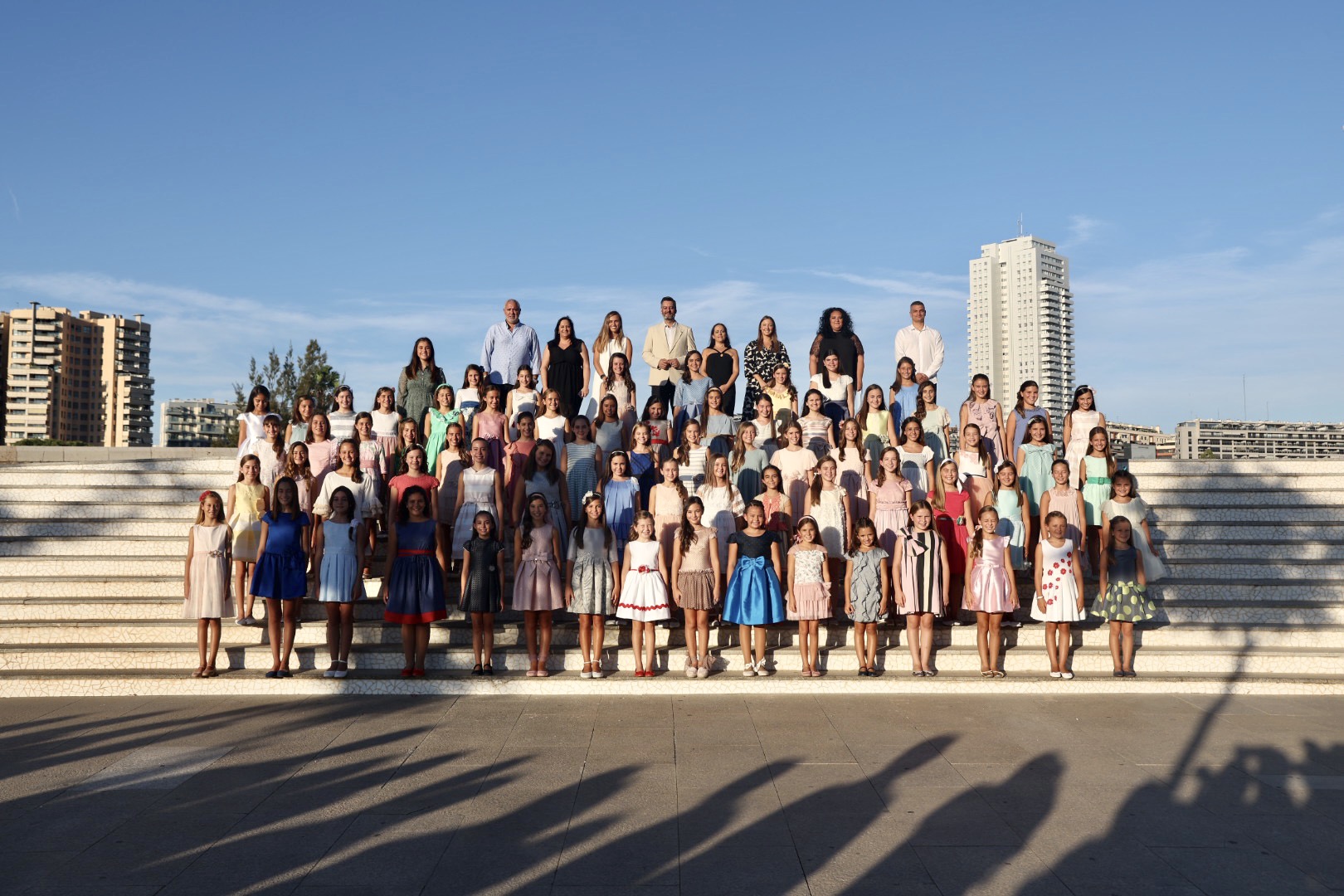 Las candidatas a Falleras Mayores de València 2023 ya conocen a sus jurados. Este viernes por la tarde ha sido el primer encuentro y la ya tradicional foto oficial en las escaleras de la Ciudad de las Artes y de las Ciencias.
