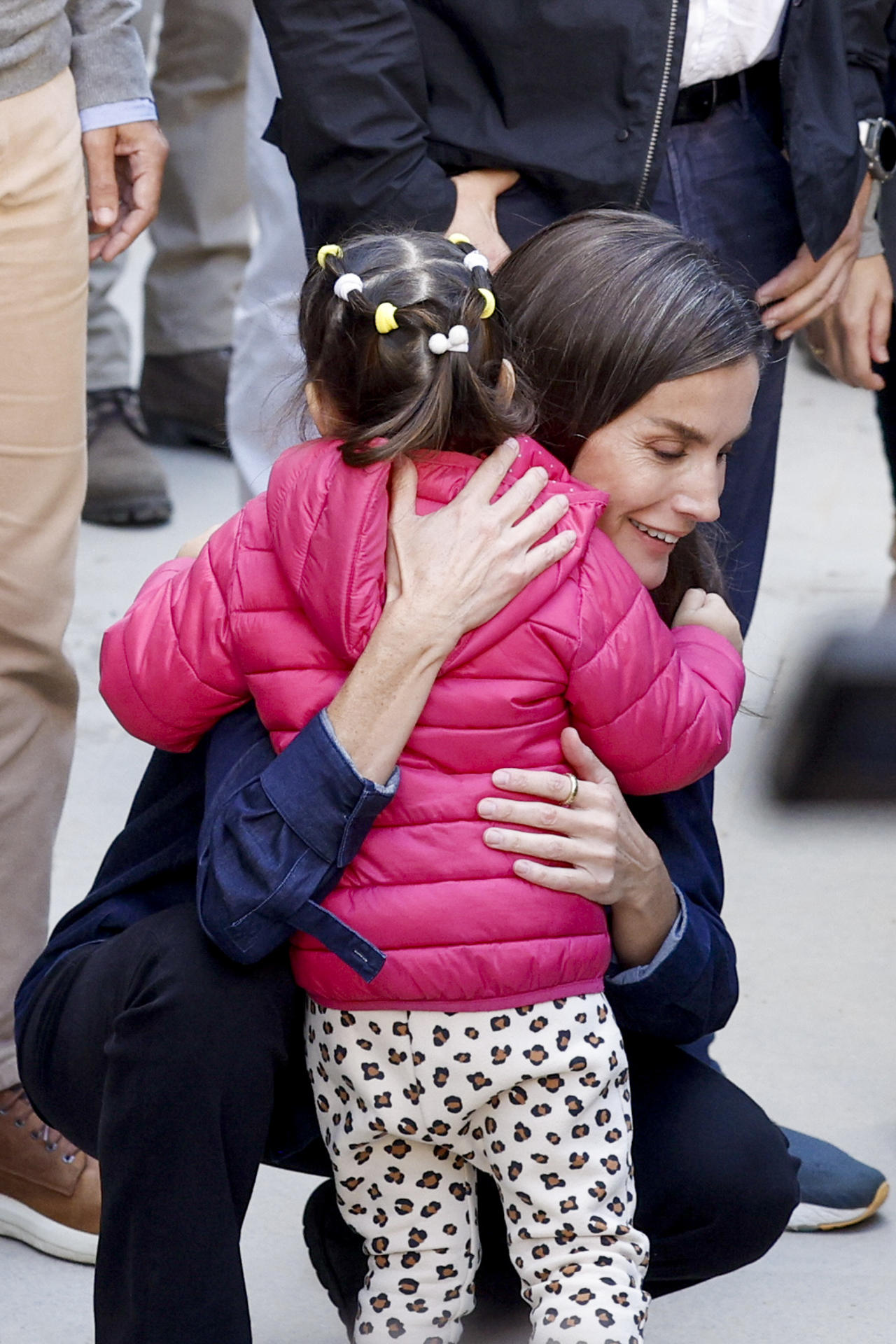 La reina Letizia saluda a una niña durante su visita a la localidad valenciana de Chiva este martes. EFE/ Kai Försterling