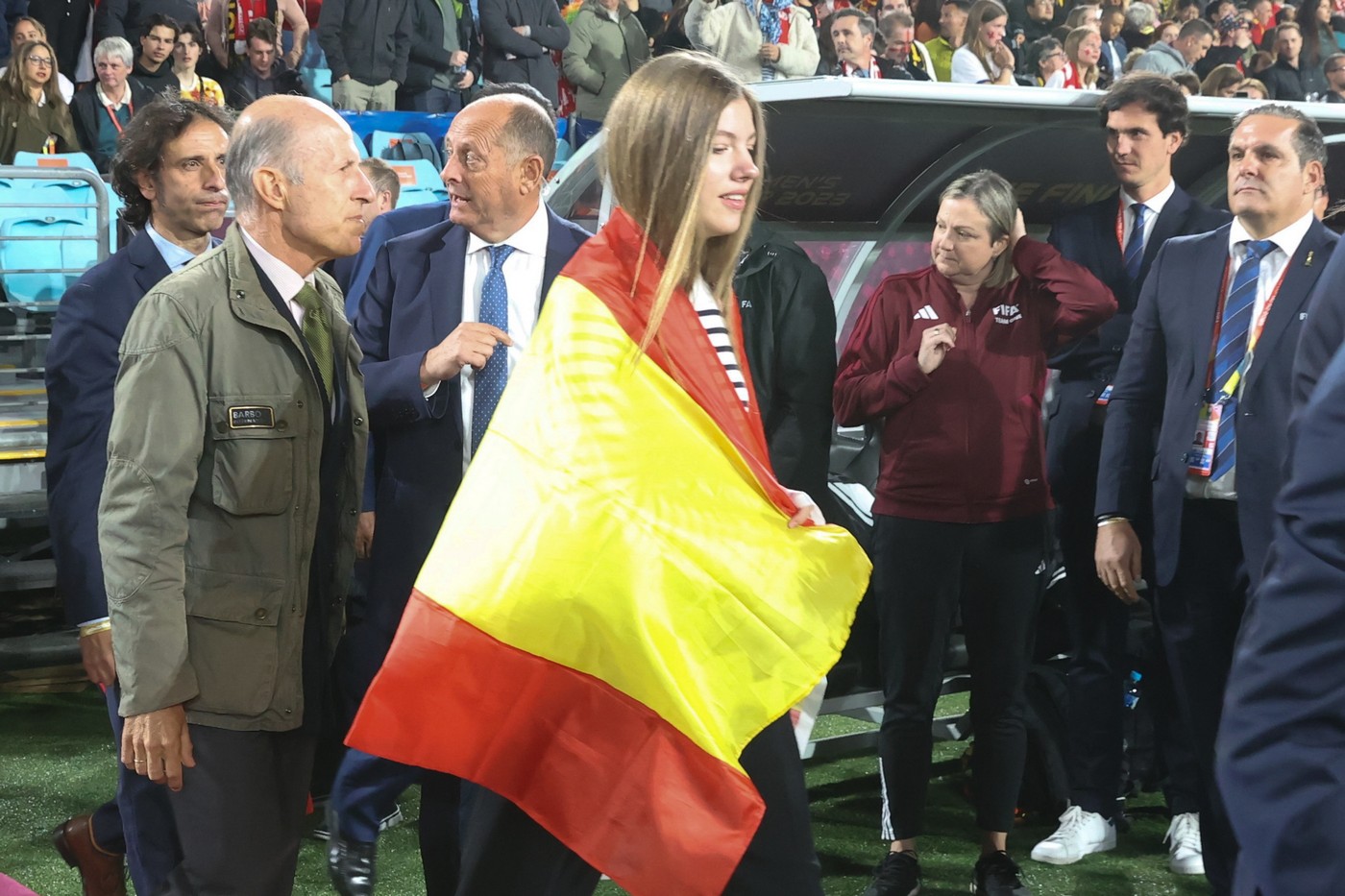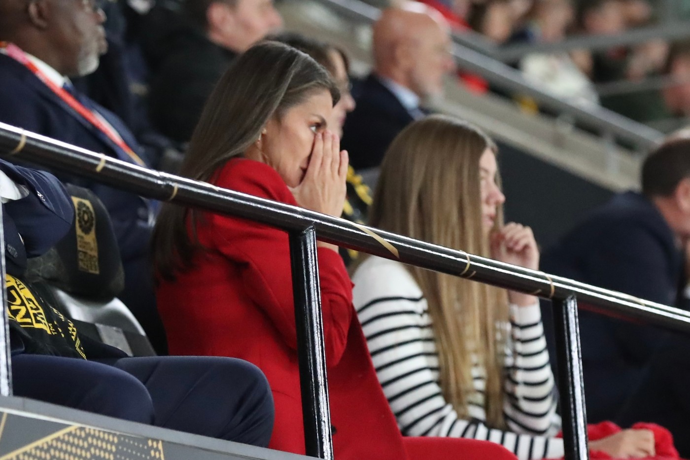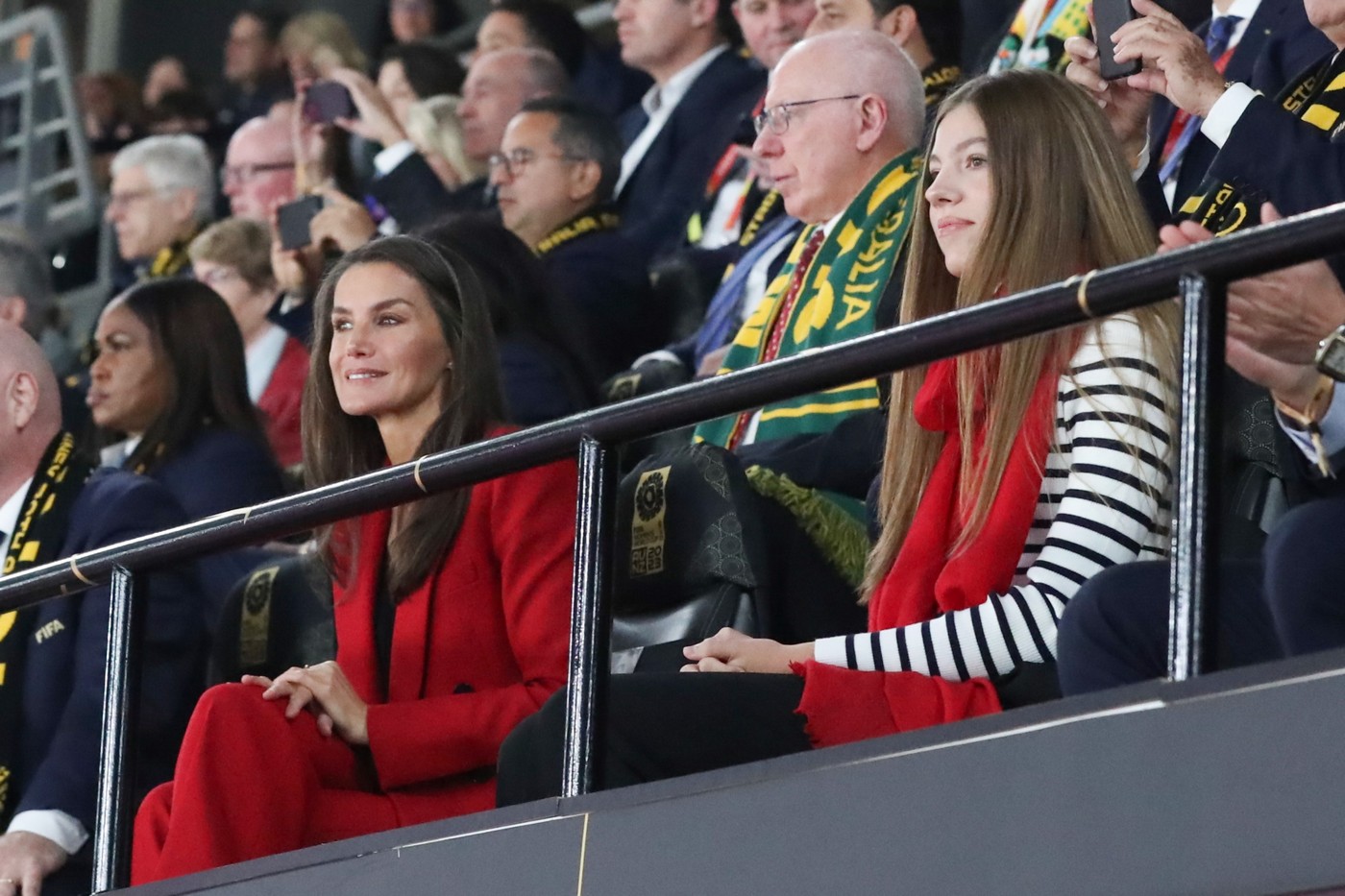 Durante el desarrollo de la ceremonia de clausura y del partido, Doña Letizia y Doña Sofía han estado acompañadas por el presidente de la Real Federación Española de Fútbol, Luis Manuel Rubiales; el presidente del Consejo Superior de Deportes, Víctor Francos; el presidente del Comité Olímpico Español, Alejandro Blanco, y por el presidente de la FIFA, Gianni Infantino.
