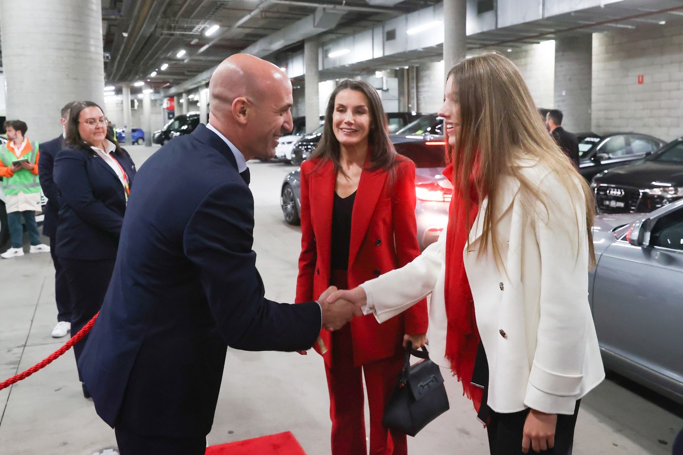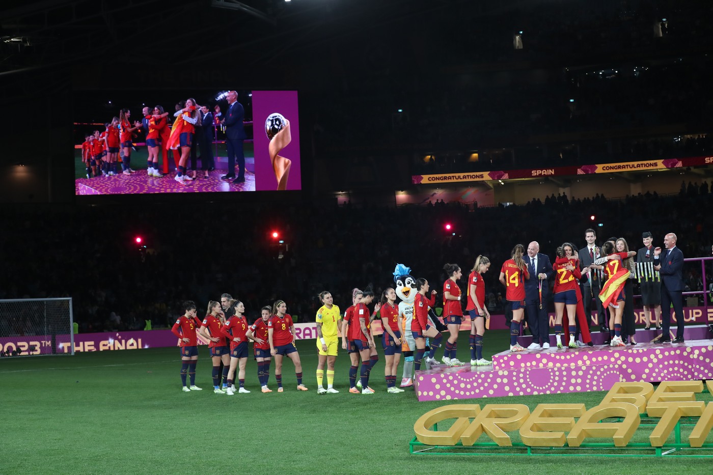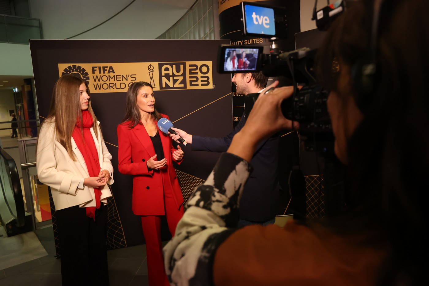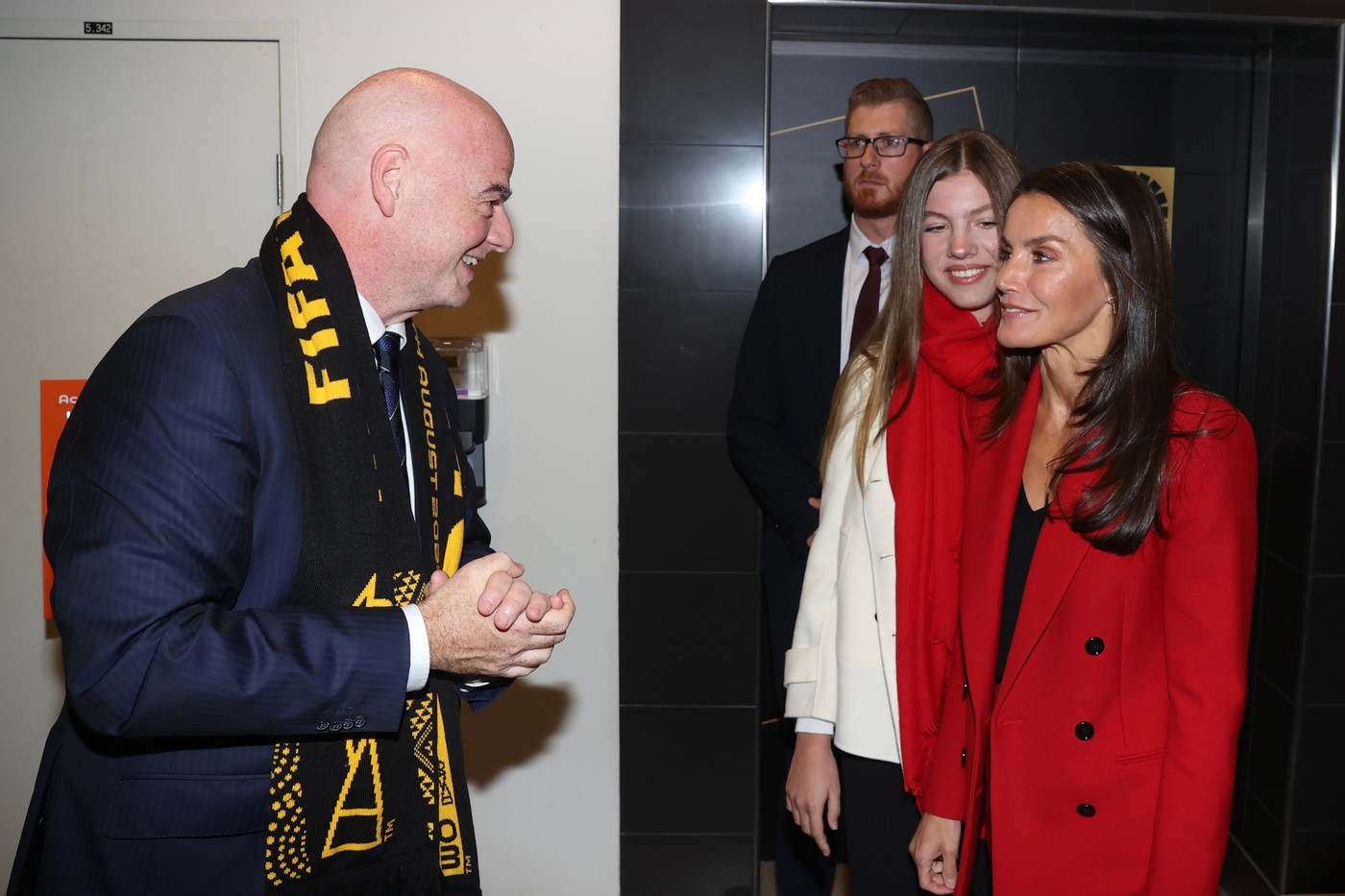 Durante el desarrollo de la ceremonia de clausura y del partido, Doña Letizia y Doña Sofía han estado acompañadas por el presidente de la Real Federación Española de Fútbol, Luis Manuel Rubiales; el presidente del Consejo Superior de Deportes, Víctor Francos; el presidente del Comité Olímpico Español, Alejandro Blanco, y por el presidente de la FIFA, Gianni Infantino.