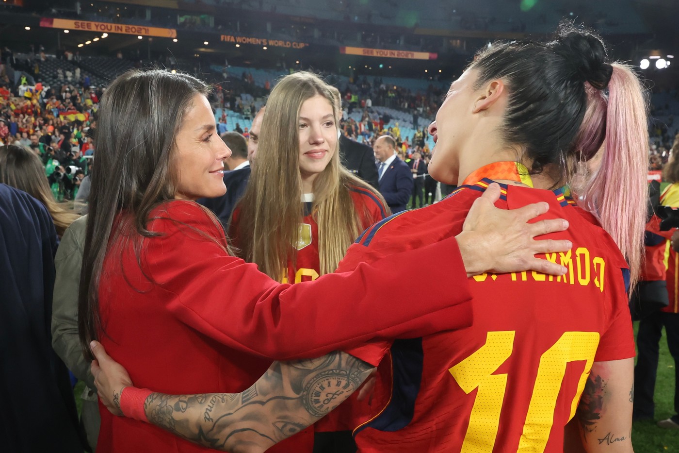 Al finalizar el encuentro, Doña Sofía y Doña Letizia acudieron al vestuario de la selección española y felicitaron a las jugadoras y al cuerpo técnico, destacando la brillante actuación realizada durante todo el torneo.
