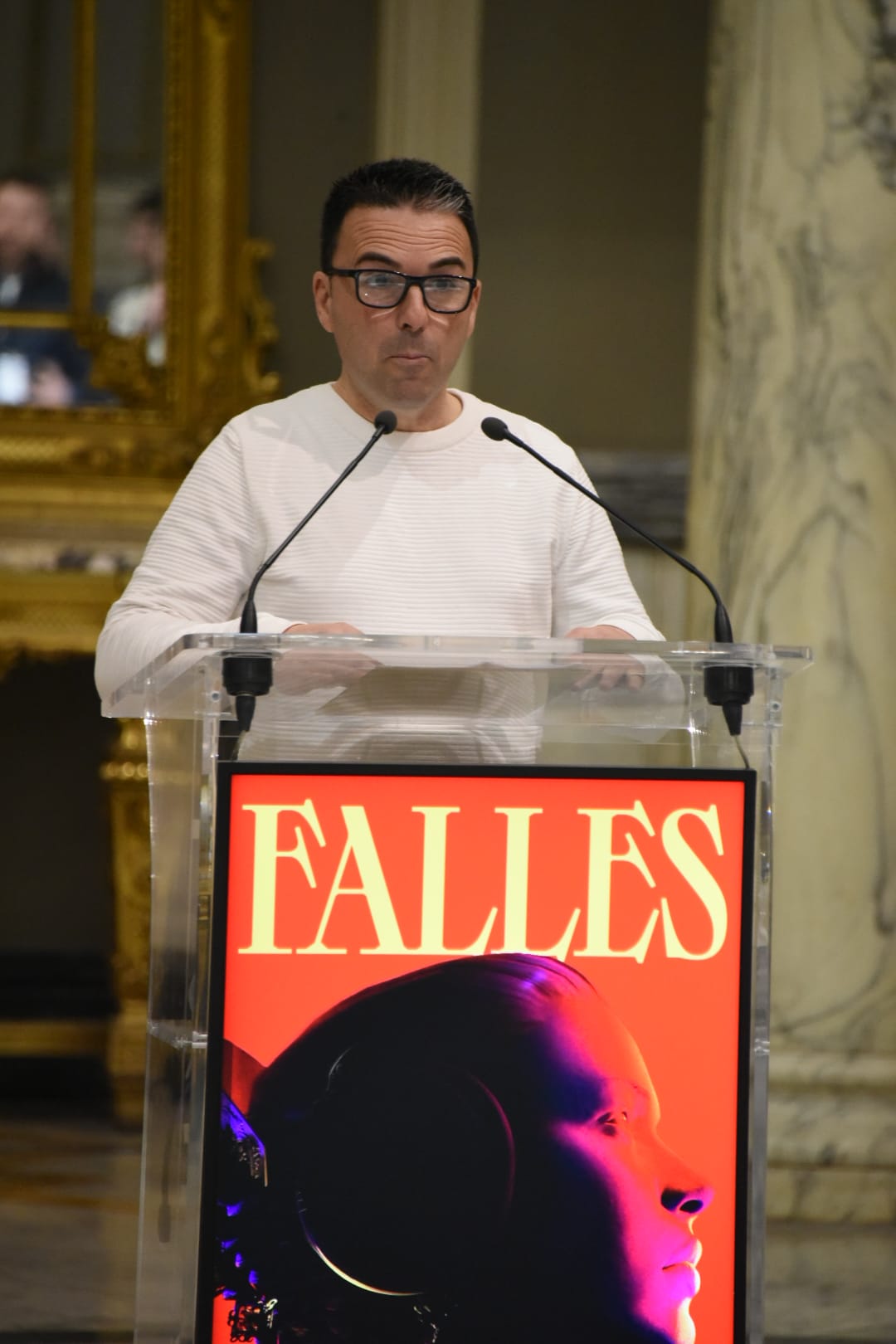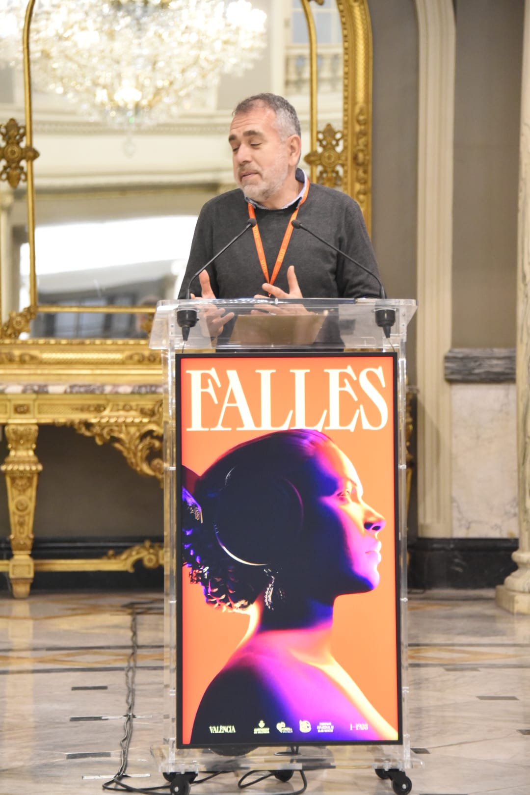 - El regidor de Cultura Festiva i president de Junta Central Fallera, Carlos Galiana, presenta el Llibret Oficial de les Falles Municipals 2023. A l’acte assistix el regidor d’Agenda Digital i Administració Electrònica, Pere Fuset.