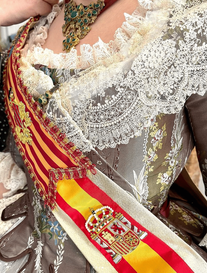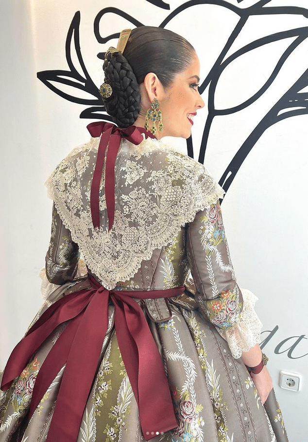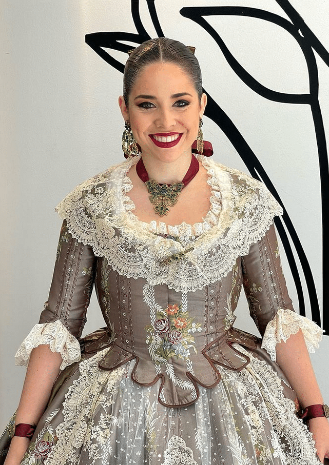 La confección de este vestido la ha realizado A l’Antiga Torrent, indumentaristas a los que ya les ha confiado gran parte de sus trajes, entre ellos el ‘Arabesco’ negro que eligió para la Crida de las Fallas.