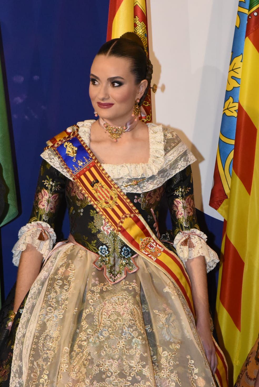 Sonia López Elena, Fallera Mayor 2024 de la Falla Conde Salvatierra – Cirilo Amorós, deslumbrante con su maravilloso espolín Francia el día de su Exaltación.
