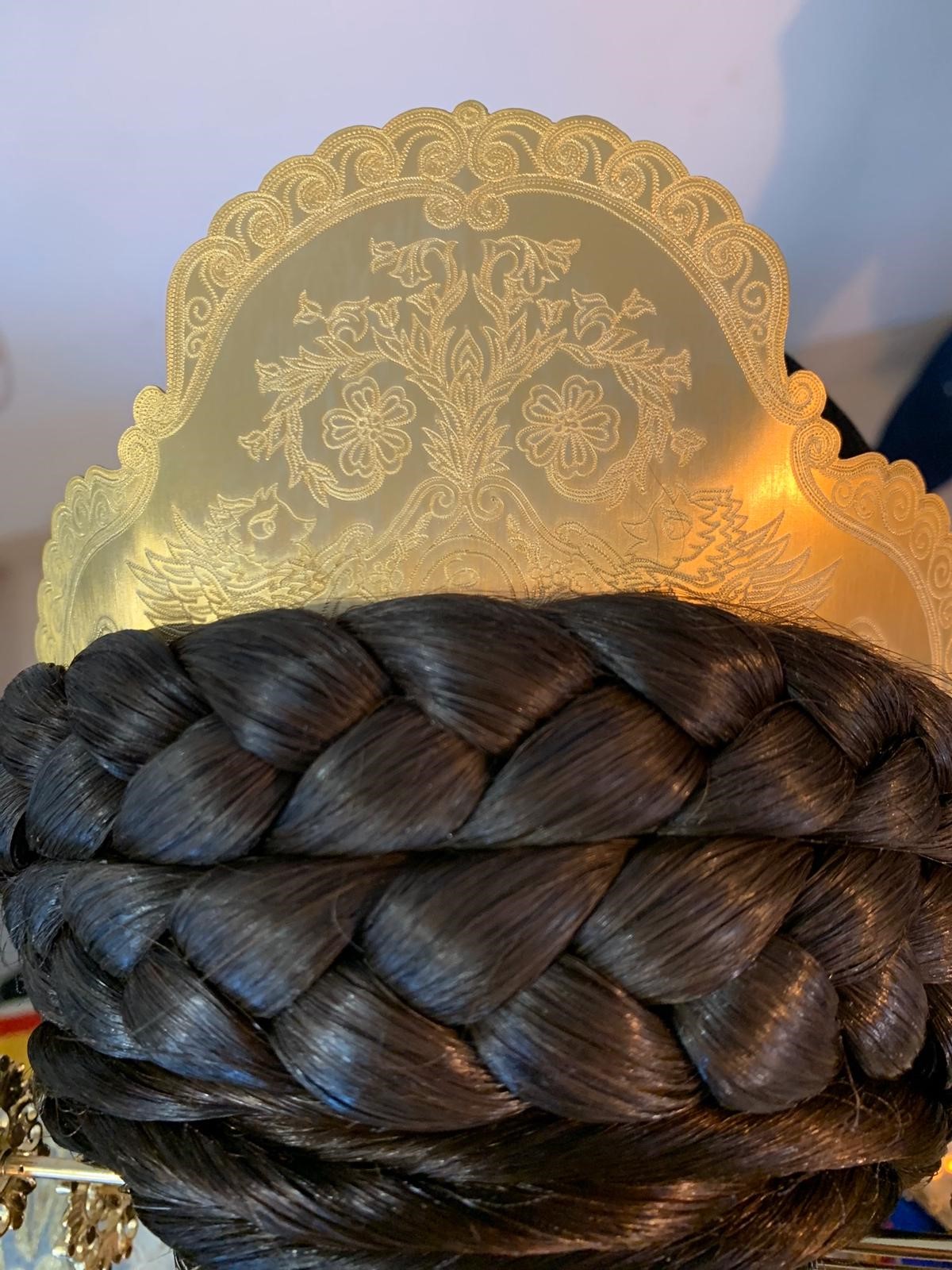 Fue todo un regalo, desde la tela hasta las manteletas, por parte de su comisión. La confección, además, corrió a cargo de Julia Bordados, la indumentarista de Carla de toda la vida. El aderezo que lució ese día también fue un regalo de amigos de sus padres, también de Ramiro de Maetzu – Els Lleons.