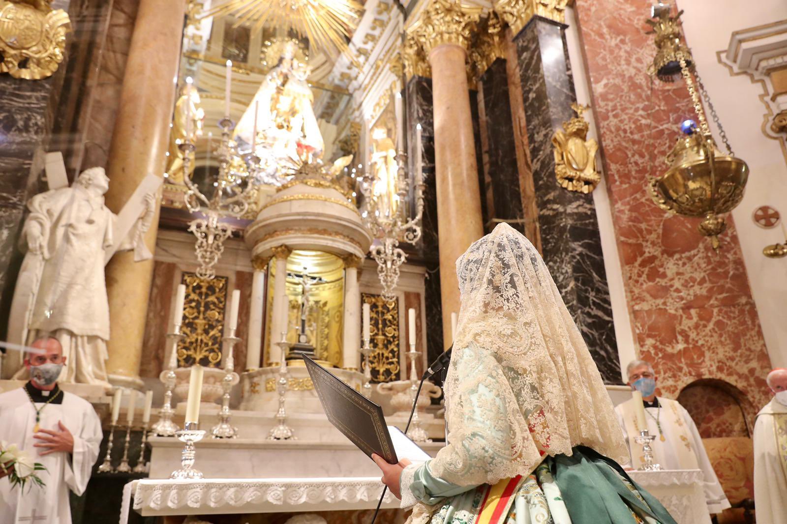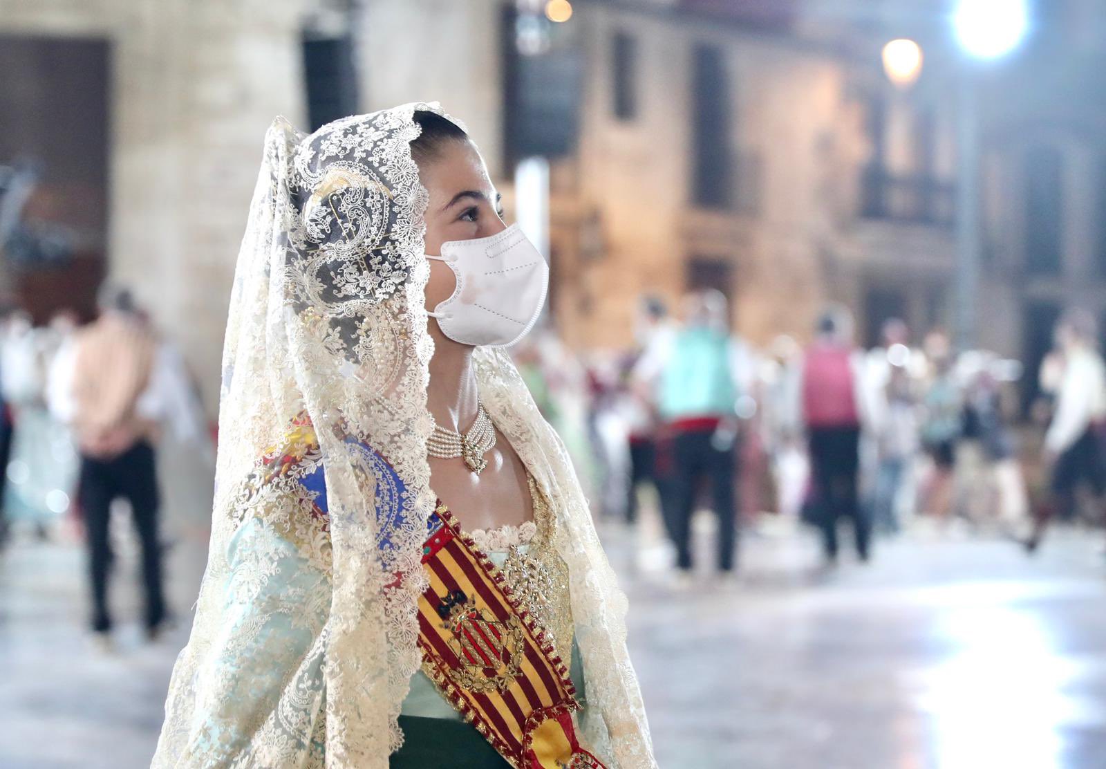La mantilla de Santos Textil que Carla lució el primer día de Ofrenda de estas pasadas Fallas de septiembre, esperaron un año y medio a salir del armario. Fue un regalo especial de su Corte de Honor mucho tiempo antes, en previsión de las primeras Fallas que no pudieron culminarse. Permanecieron intactas y a la espera hasta que finalmente llegó el gran momento, uno de los que más esperaba con ilusión la Fallera Mayor Infantil de Valencia.