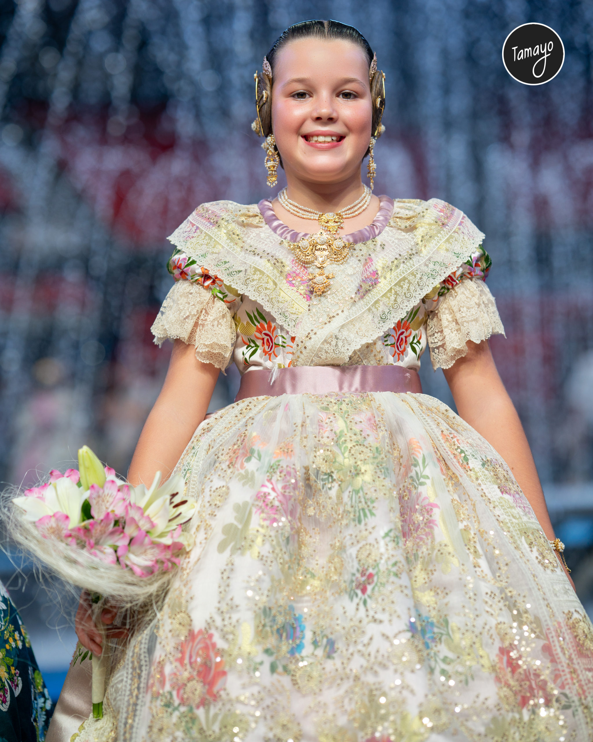 Lucía ha estado en la falla desde que nació. Su primera Ofrenda fue con solo tres meses, lo que muestra su conexión temprana con las tradiciones falleras. Actualmente, posee el Bunyol d’Argent, y el año que viene se le otorgará el de Oro. Le encanta participar en todas las actividades y actos de la falla, especialmente en la presentación y los playbacks.