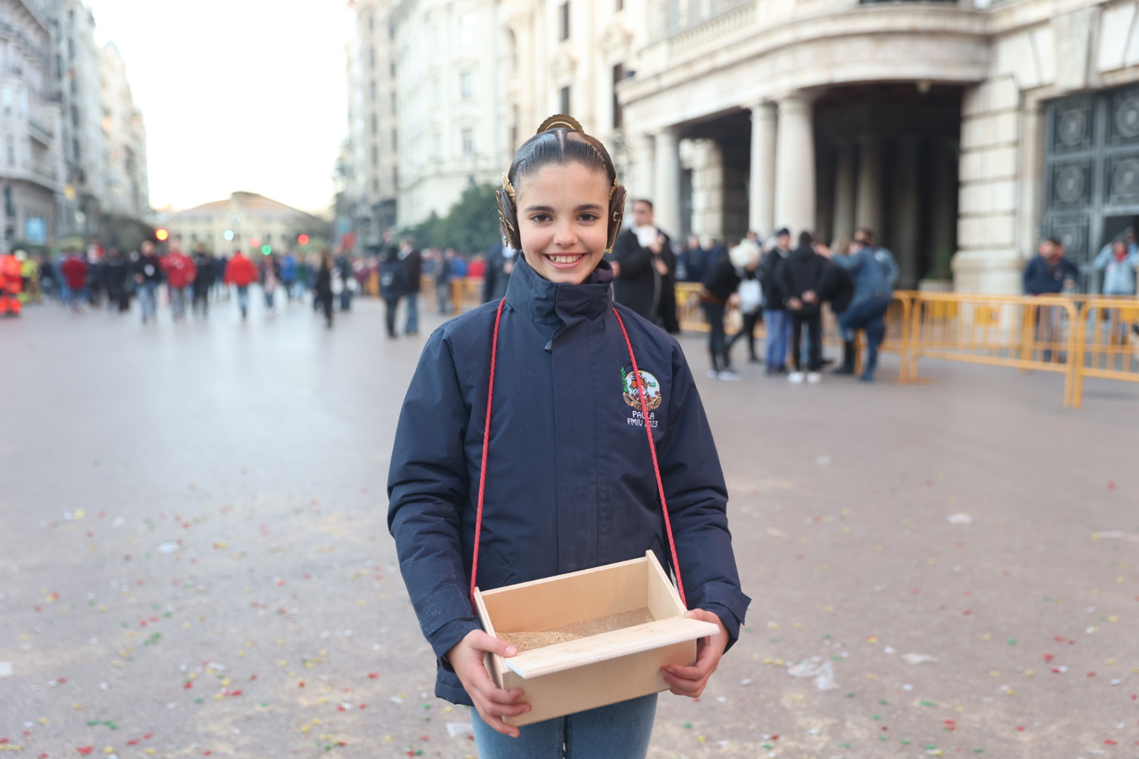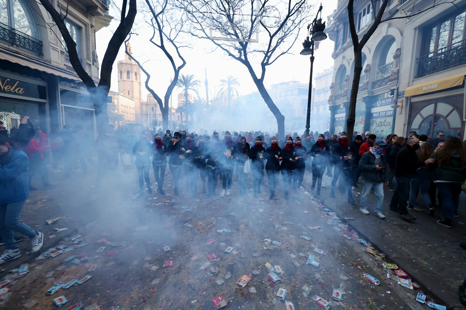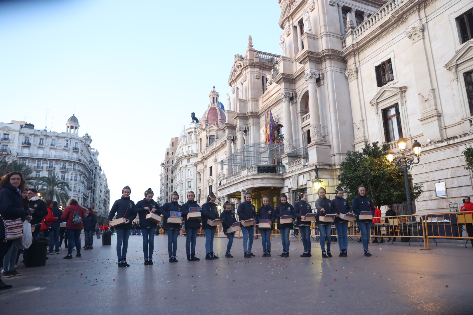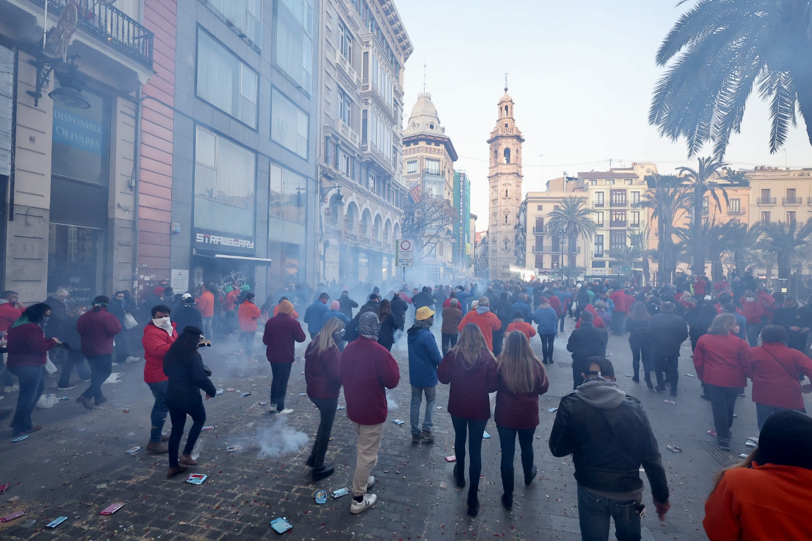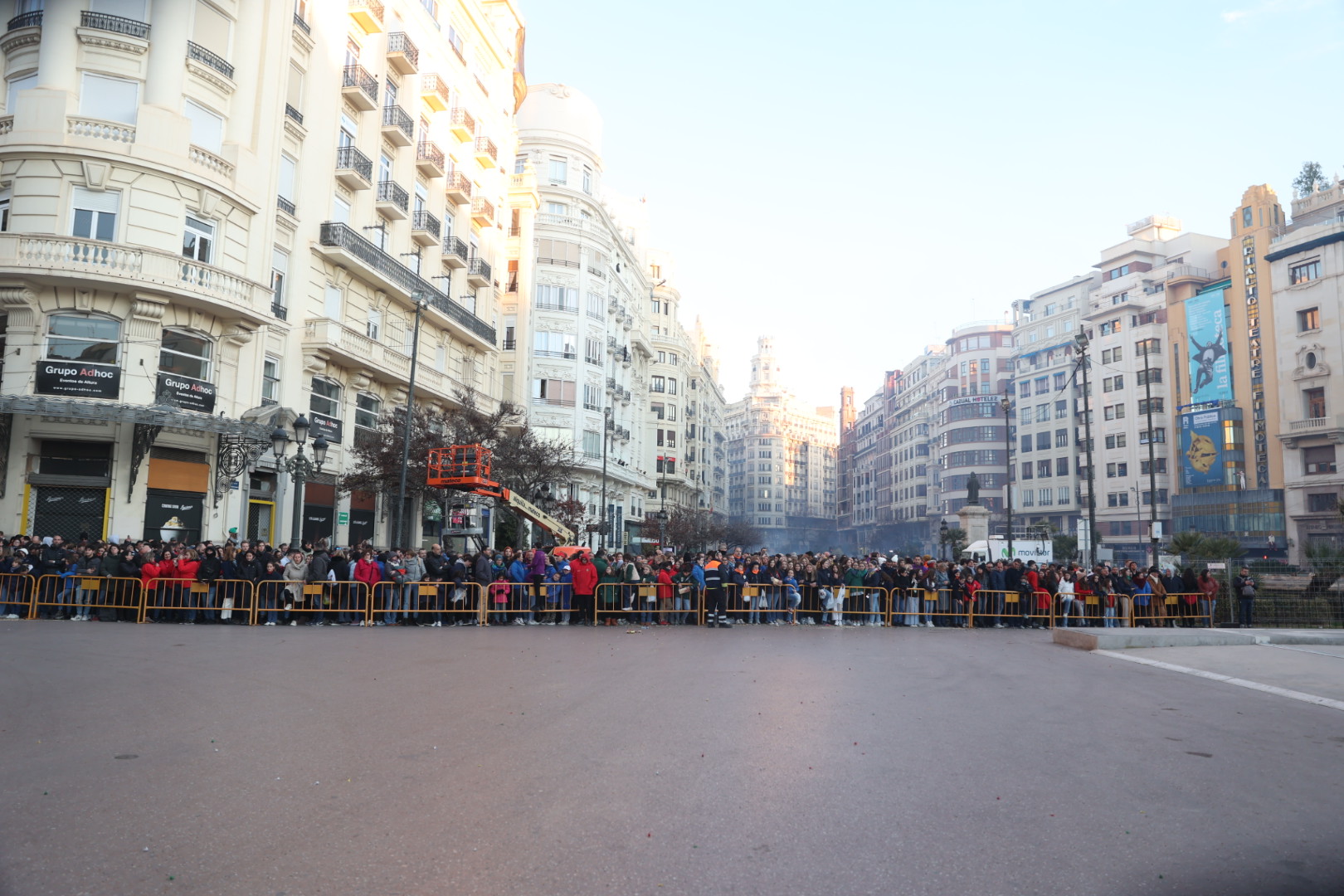 Y a las 8 de la mañana se ha disparado la mascletà en la Plaza del Ayuntamiento, a cargo de Pirotecnia Valenciana.