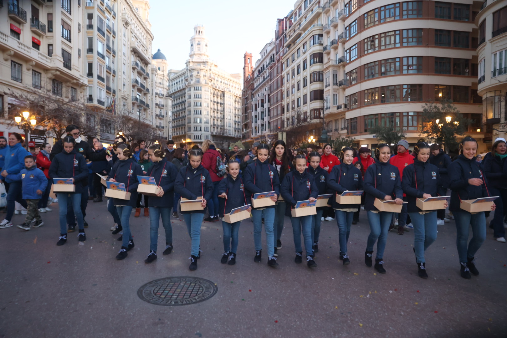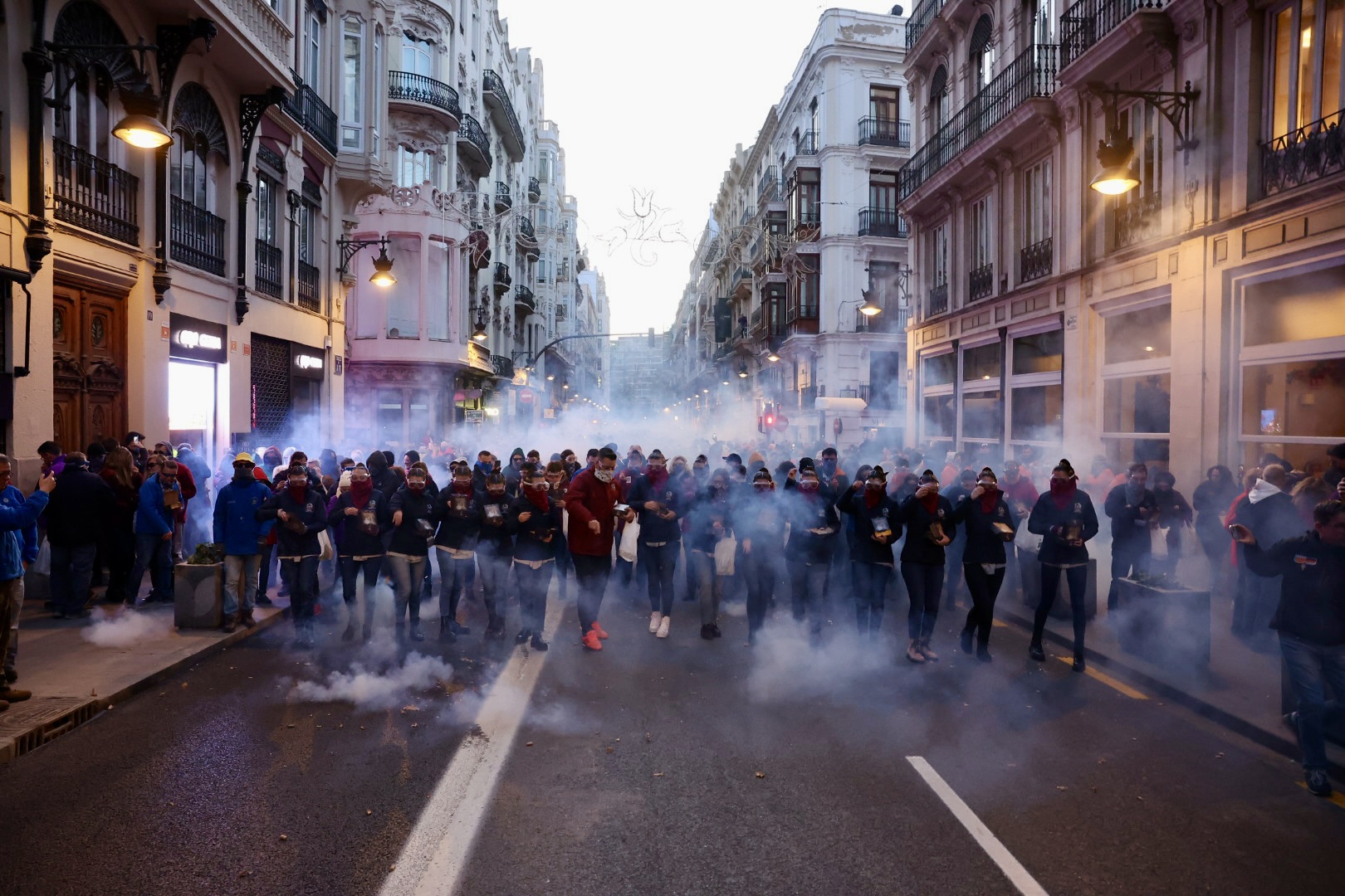 La macrodespertà de este domingo ha encendido oficialmente el primer domingo de las Fallas 2023. Es el día de la Crida pero desde las 6:30 de la mañana las Falleras Mayores de València y sus Cortes de Honor han asistido a la Iglesia de San Juan del Hospital para visitar la Capilla de Santa Bárbara, patrona de los pirotécnicos, para dar paso a la ‘macrodespertà, donde los falleros han despertado València a ritmo de tró de bac de Pirotècnia del Mediterráneo. Al finalizar la apoteosis final en la Plaza del Ayuntamiento, la Junta Central Fallera ha ofrecido un desayuno popular en la plaza del Ayuntamiento para todos los participantes.