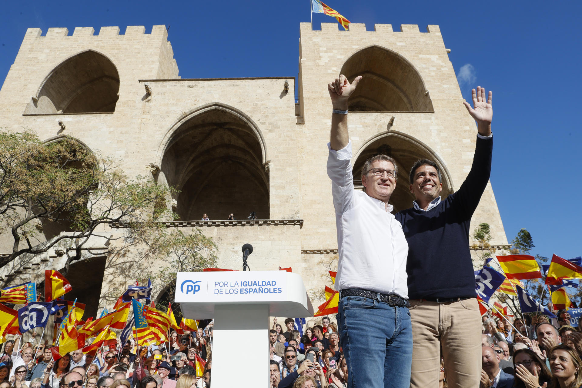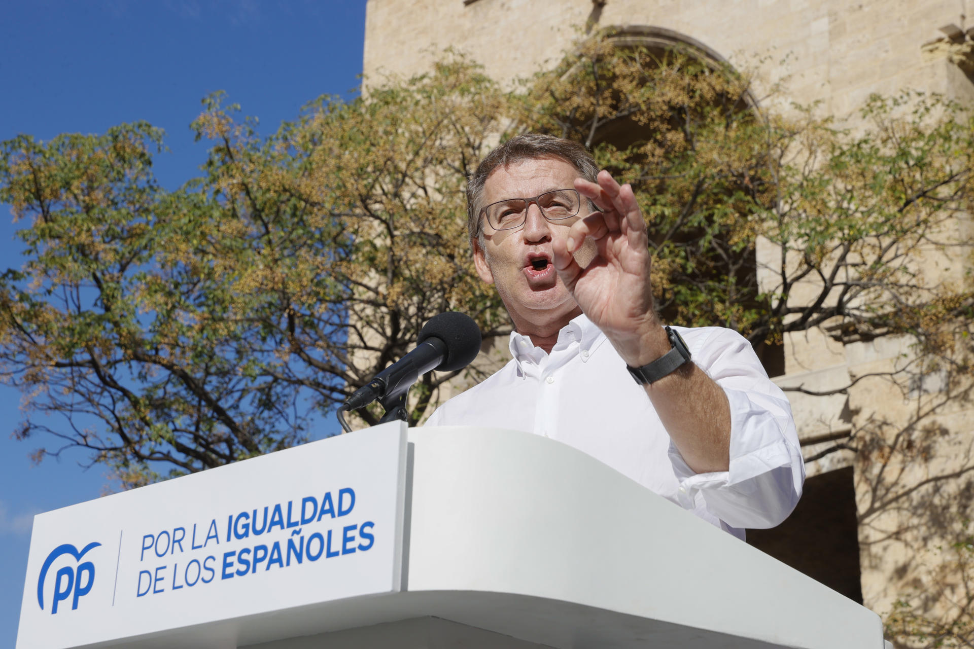 Feijóo se ha pronunciado así en un acto en Valencia a los pies de las Torres de Serranos por «la igualdad de todos los españoles» y en contra de la amnistía del ‘procés’, que se suma a los que el PP ya ha celebrado en Madrid, Toledo y Málaga para criticar los pactos de Pedro Sánchez con el independentismo catalán.