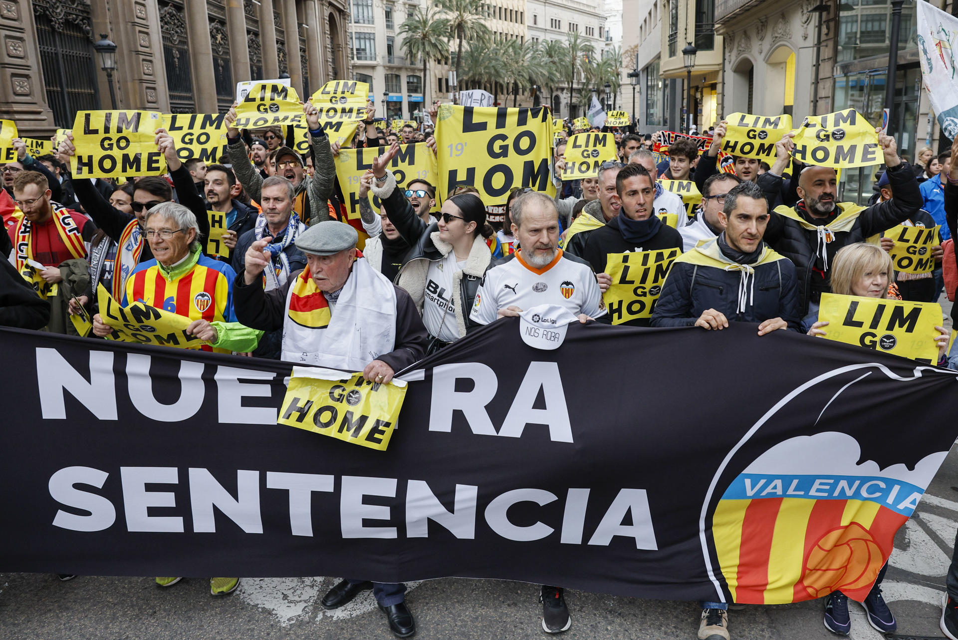 También hubo cánticos críticos hacia la presidenta Layhoon Chan y los empleados importantes de Meriton Holdings en la ciudad, el director corporativo Javier Solís y el director deportivo Miguel Ángel Corona, así como el expresidente del club Amadeo Salvo, que fue parte activa de la llegada de Lim al Valencia.