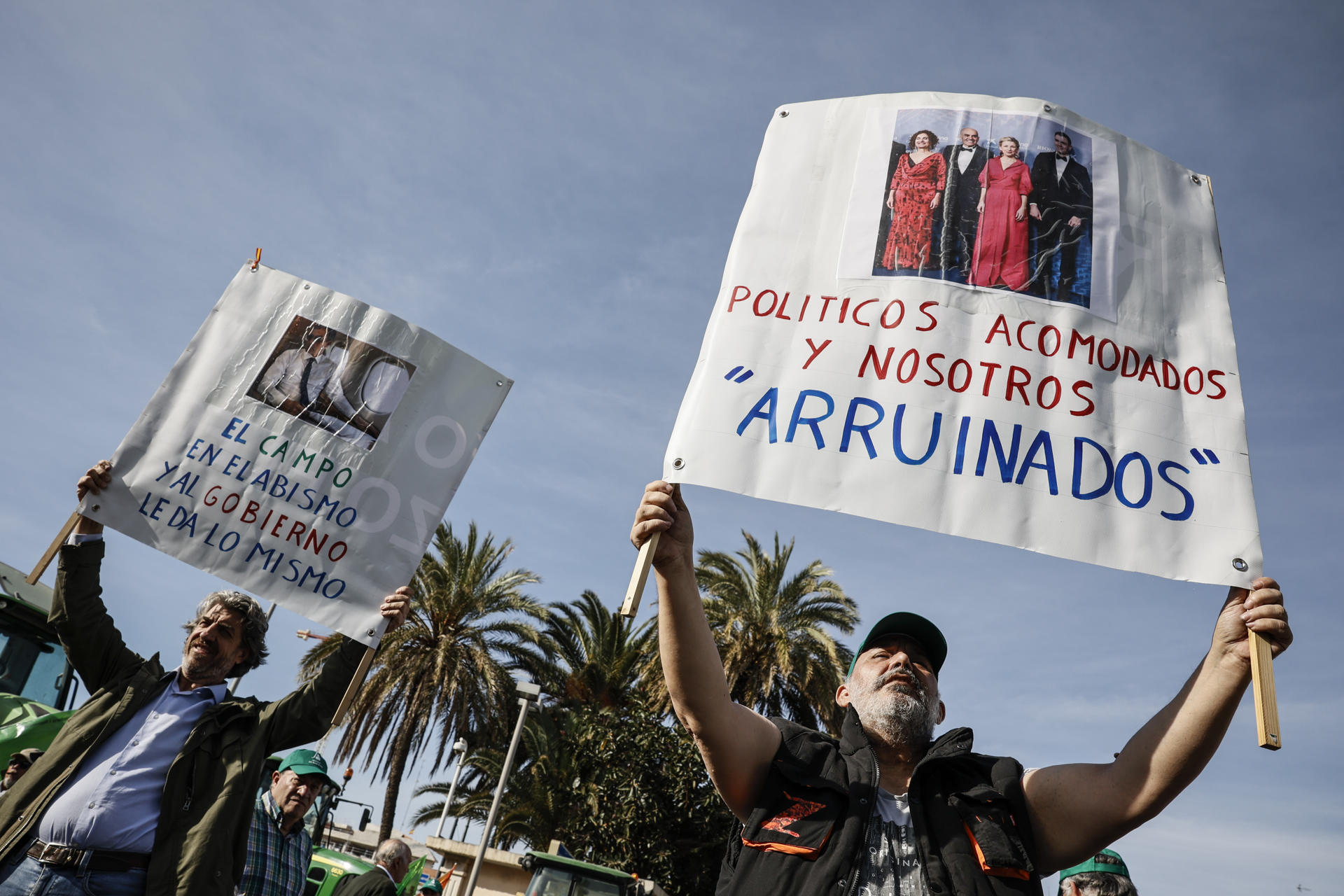 Los manifestantes, que tienen previsto arrojar naranjas, arroz, vino y almendras en señal de protesta, exhiben pancartas con los lemas: «Europa, ¿queréis agricultores o no?», «En defensa de la tierra, labremos el futuro» o «Europa nos arruina y el Gobierno nos ignora».