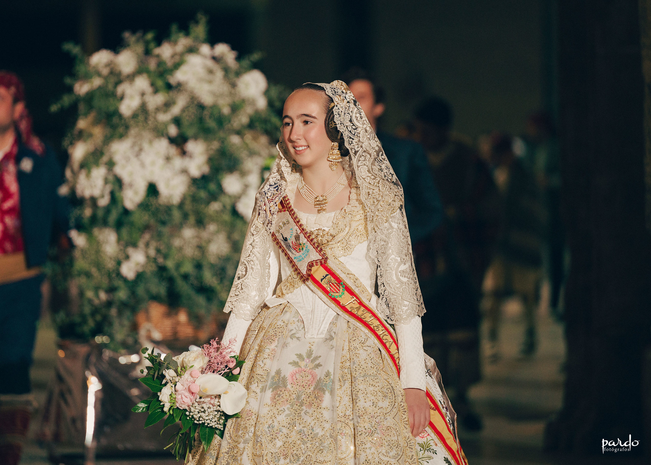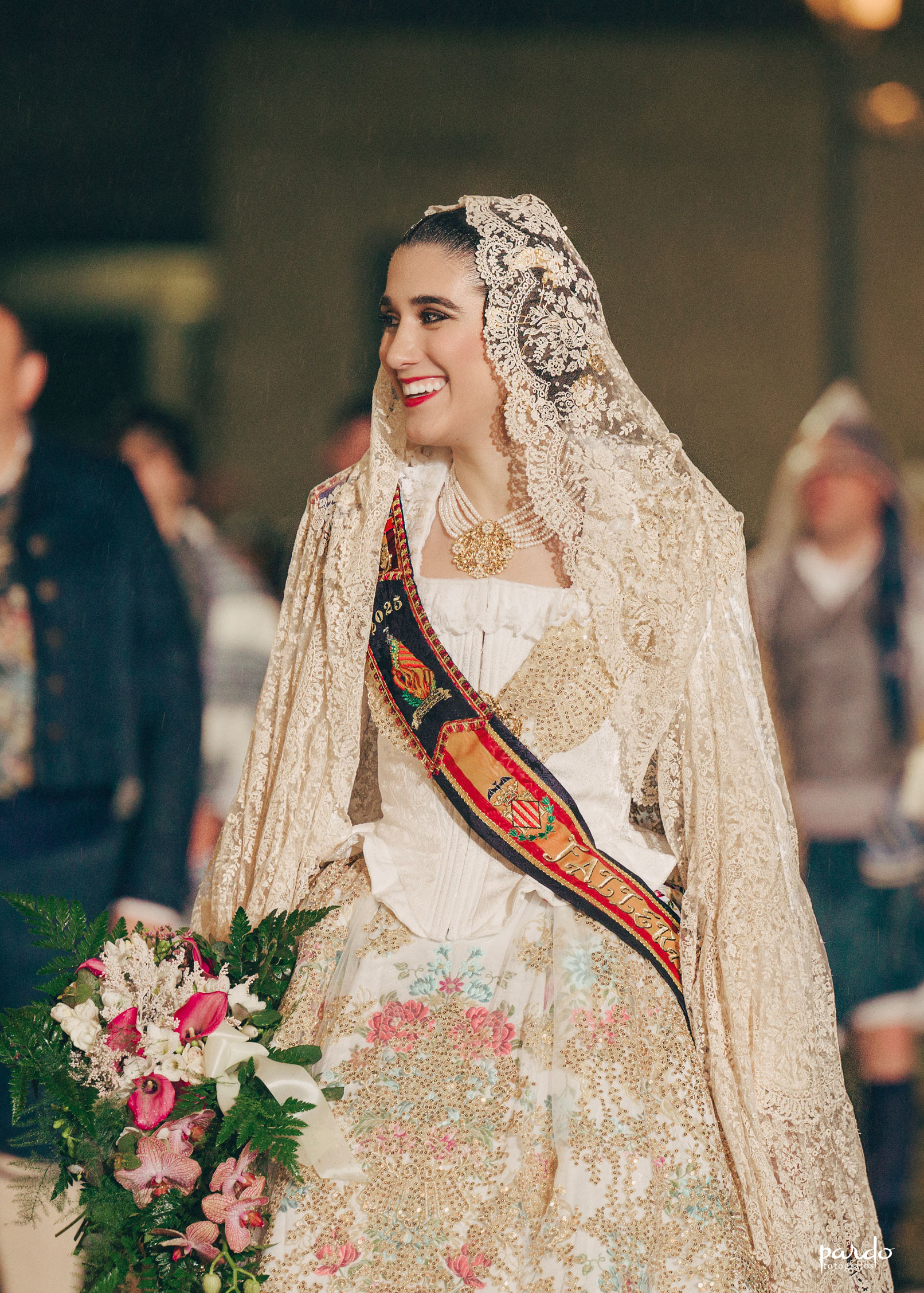 También participaron las Falleras Mayores de València: Carmen Martín Carbonell (2022), Laura Mengó (2023) y Mª Estela Arlandis Ferrando (2024), todas ellas con mantillas artesanales de Santos Textil, reafirmando su compromiso con la indumentaria tradicional y con el saber hacer de los artesanos valencianos.