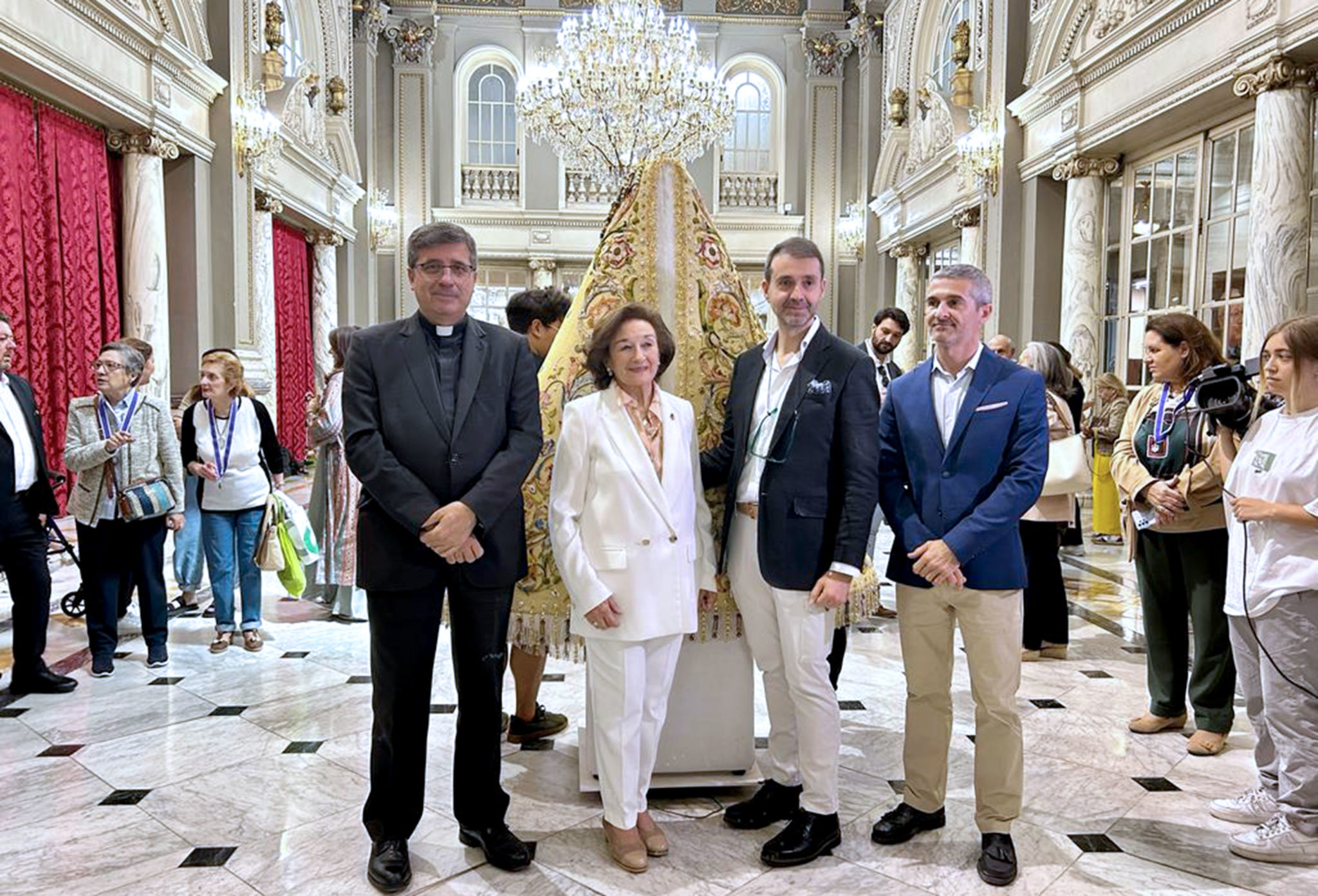 Este manto restaurado y sus elementos de conjunto será el que portará la imagen peregrina de la Virgen en los actos festivos del próximo domingo, día 14.