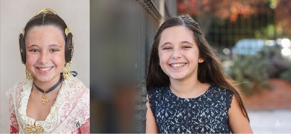 Tiene 10 años y estudia en el Colegio Escolapias el curso de 6.º de primaria. Es fallera desde que nació y tiene el Bunyol d’Or.