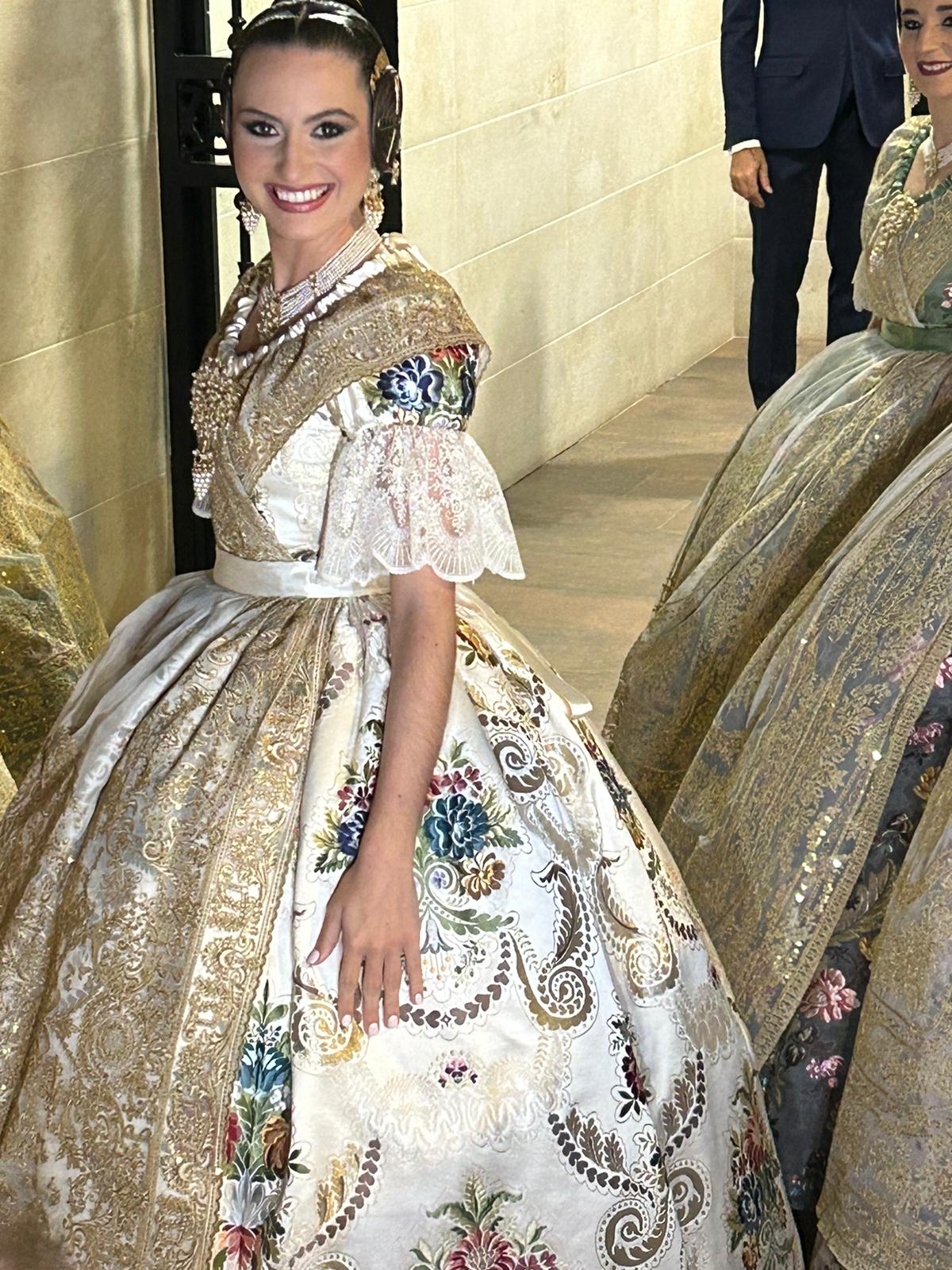 María Estela Arlandis ha sorprendido con un blanco para el color de su espolín Fallera Mayor de Valencia 2024.