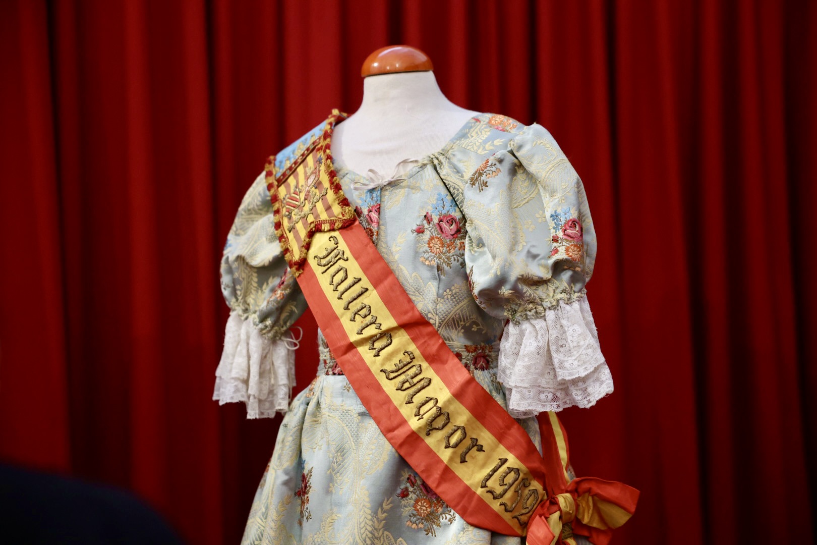 Entre los objetos donados se encuentra el traje que María Luisa lució durante su exaltación. Este traje es un espolín de Garín, una prenda de gran valor y belleza, confeccionada en el prestigioso taller de Suay. La meticulosa elaboración y el diseño detallado del traje reflejan la tradición y el arte de la indumentaria fallera de la época.