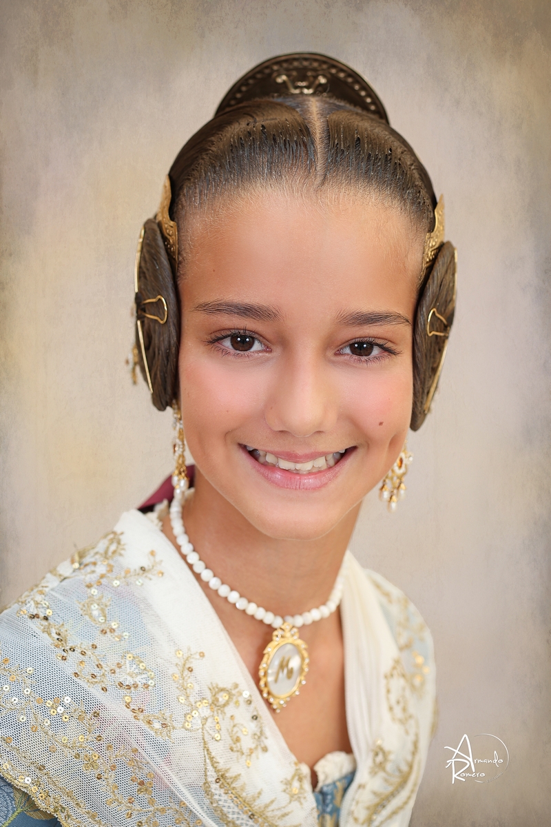 Con 10 años, María Mariner Guijarro representa la unión perfecta entre tradición, elegancia y energía. Nació el 7 de octubre de 2014 y pertenece a la Falla Jacinto Benavente-Reina Doña Germana, dentro del sector Pla del Remei-Gran Vía. Actualmente cursa 6º de Primaria en el Colegio Guadalaviar, compaginando sus estudios con su intensa vida fallera y sus pasiones personales.
