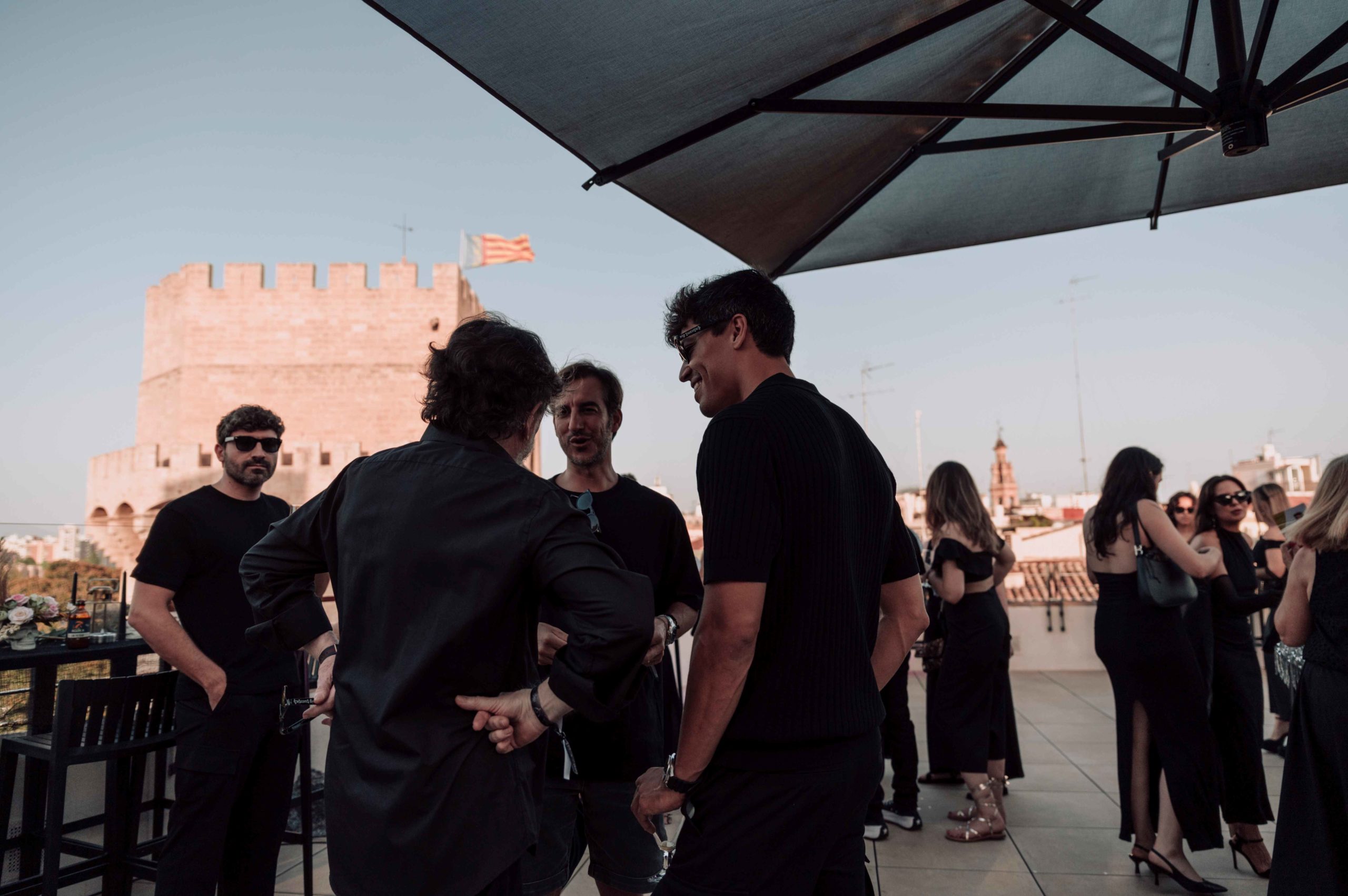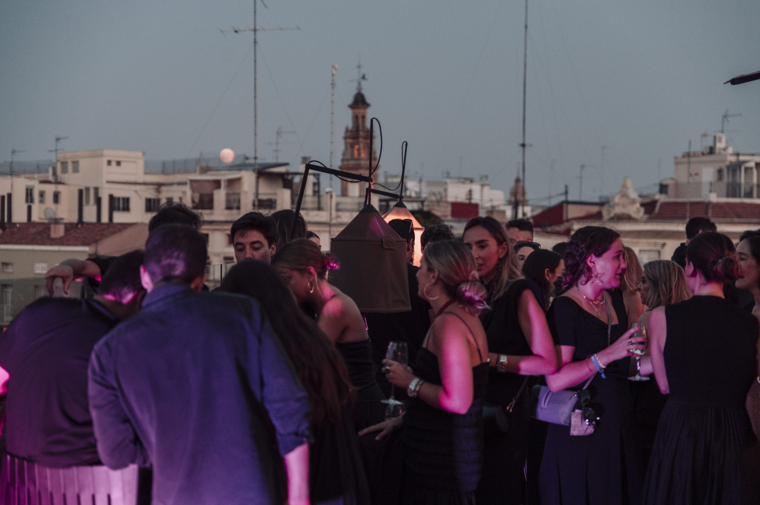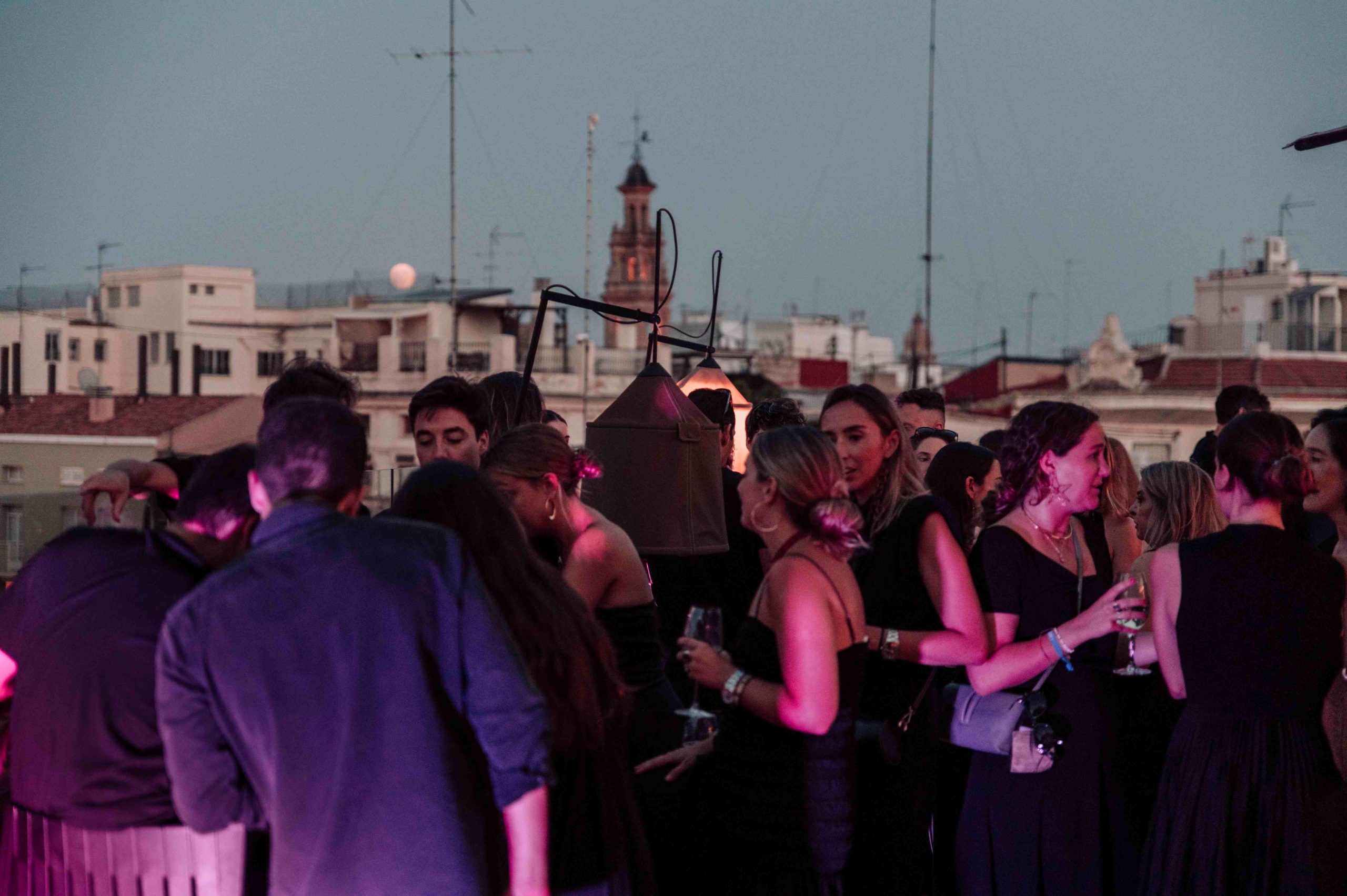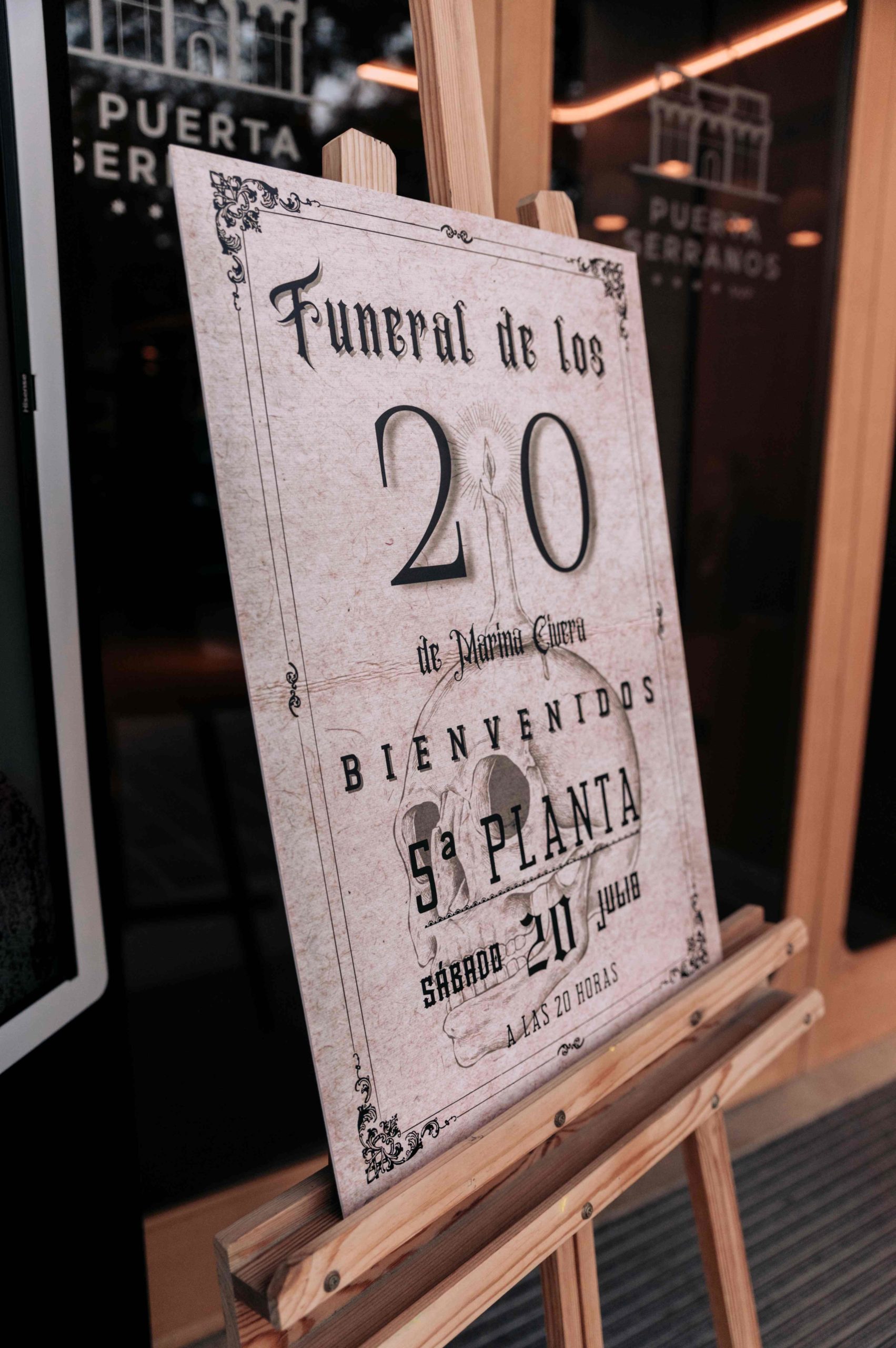 La fiesta se celebró en el rooftop Luna de Valencia del hotel, decorado con una atmósfera lúgubre pero elegante. Al llegar, los invitados fueron recibidos por dos actores, Rafa Martí y Jordi Tamarit de StresdeQuatre, vestidos como La Parca. Estos actores entregaron a cada invitado un Kit Funerario que incluía una carta de bienvenida, una pulsera tematizada, gafas de sol con el eslogan «RIP Twenties», un cacao labial personalizado, un abanico Pai Pai, una ilustración de un pecado capital y una pegatina anatómica.