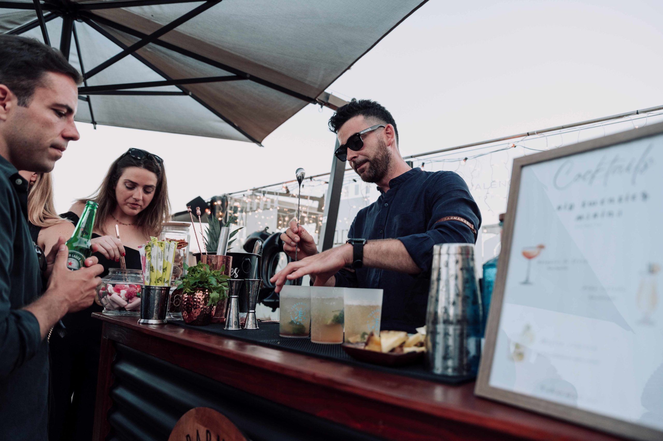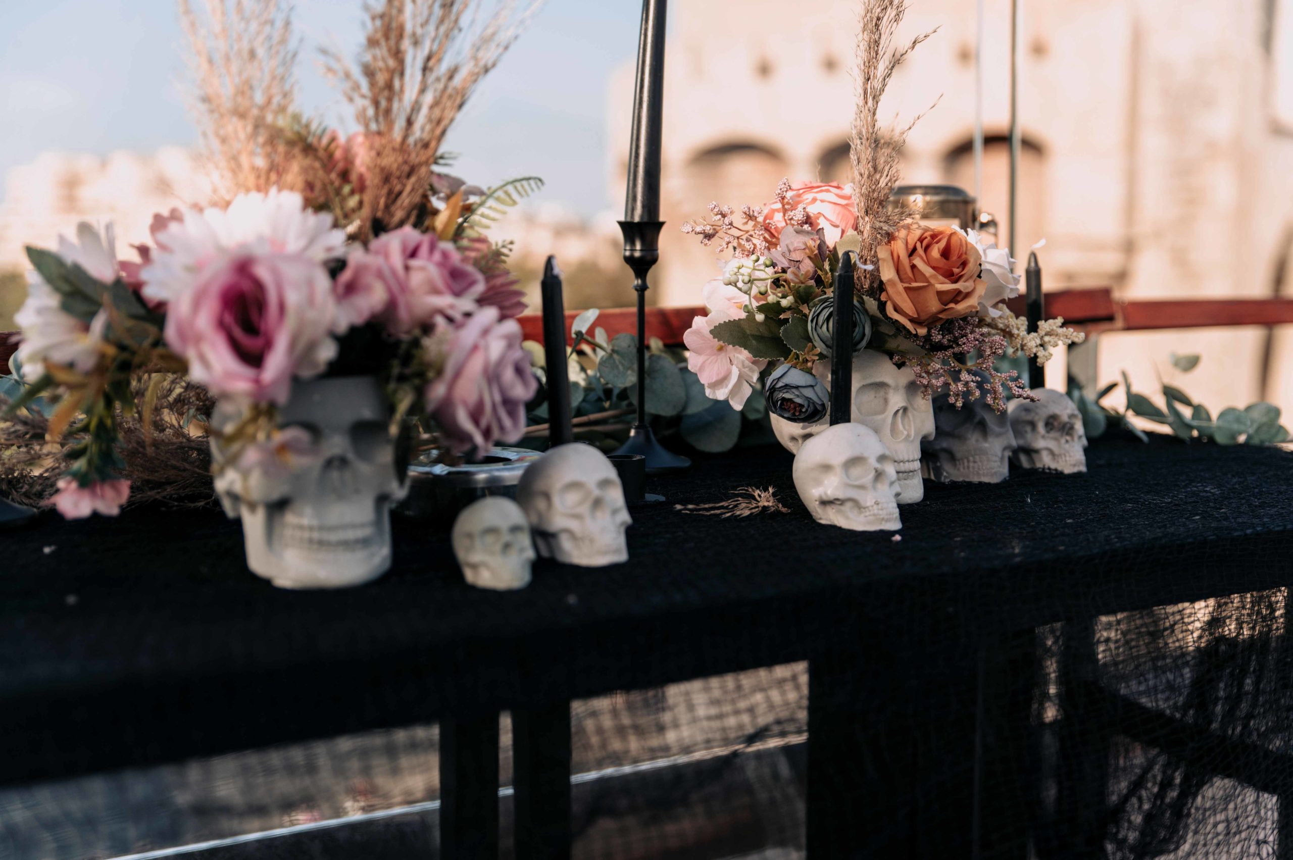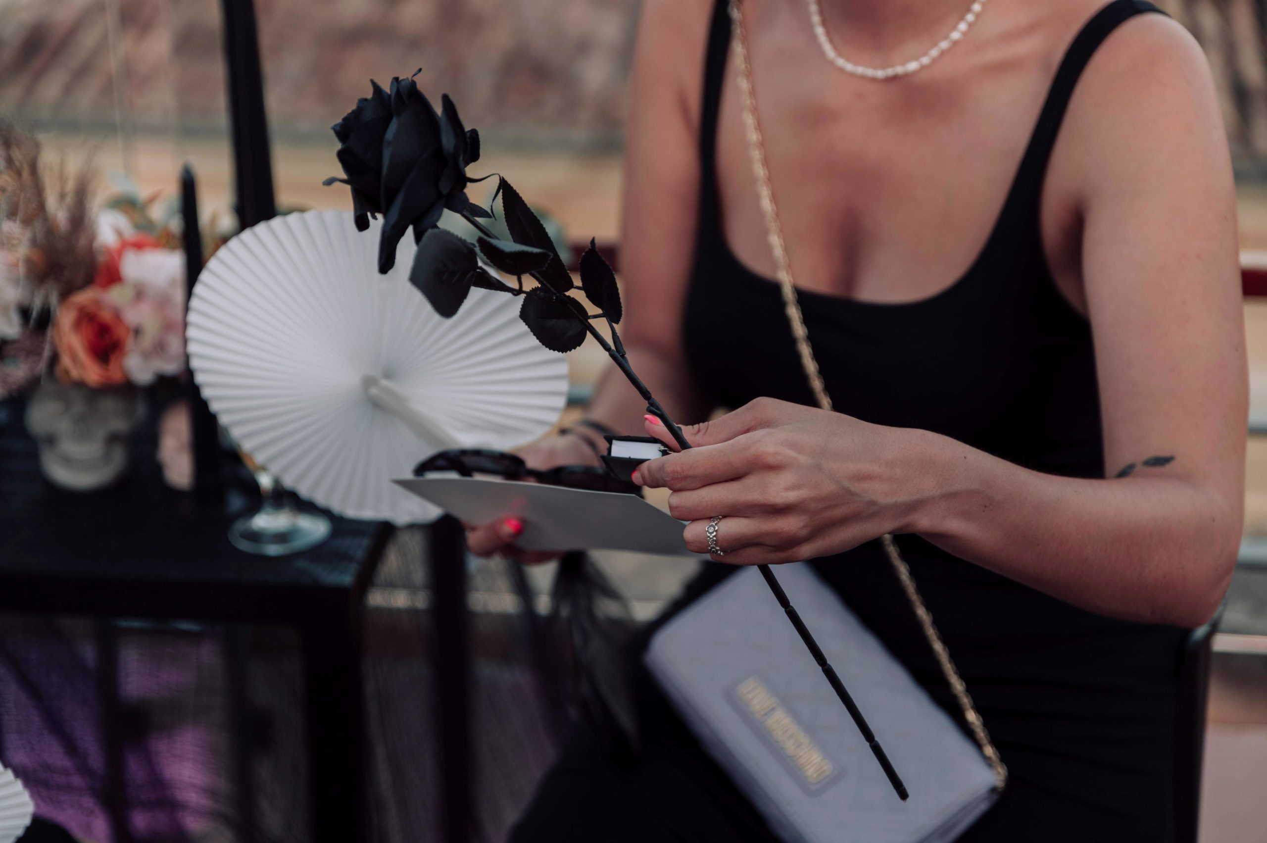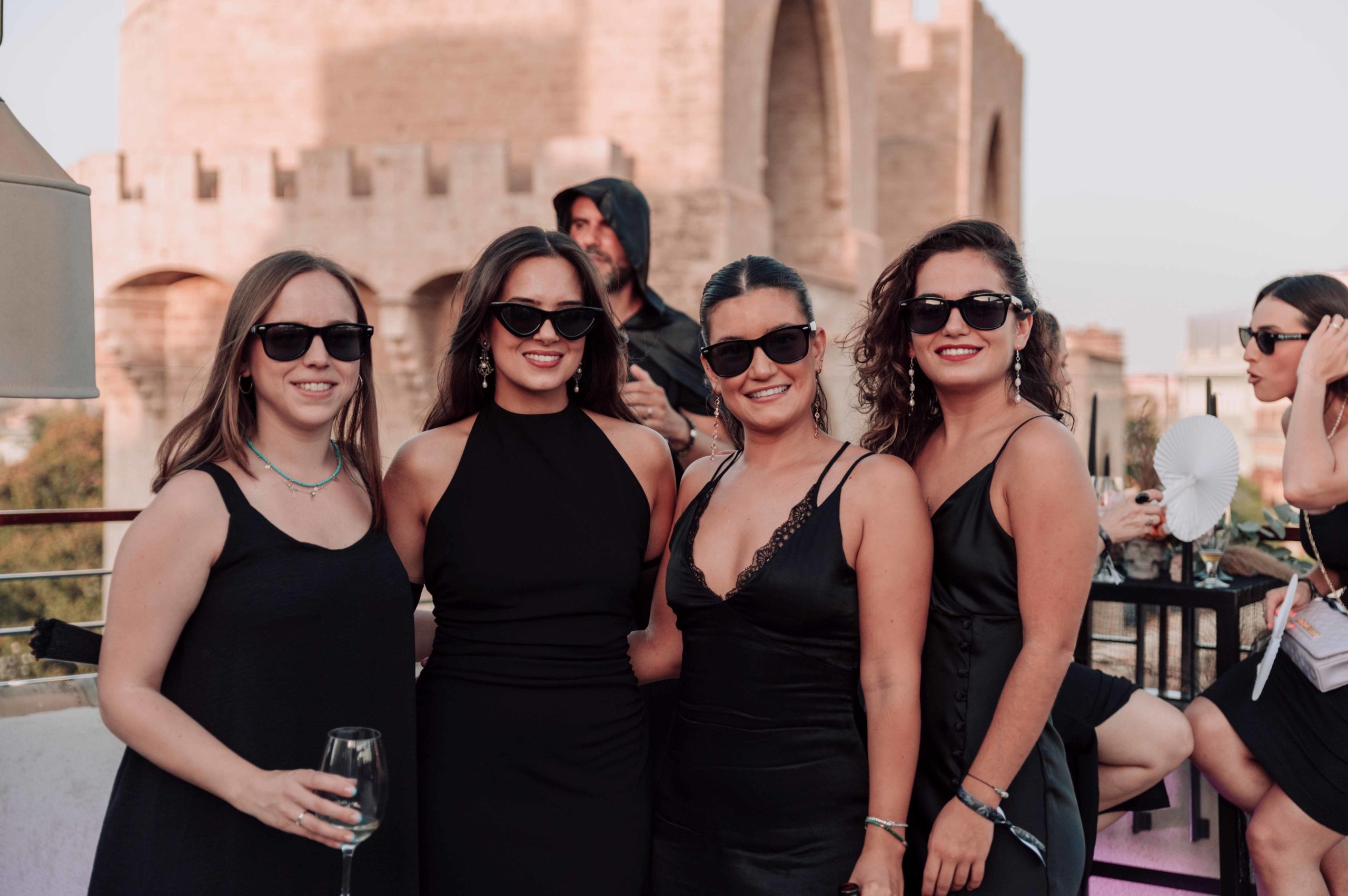 La fiesta se celebró en el rooftop Luna de Valencia del hotel, decorado con una atmósfera lúgubre pero elegante. Al llegar, los invitados fueron recibidos por dos actores, Rafa Martí y Jordi Tamarit de StresdeQuatre, vestidos como La Parca. Estos actores entregaron a cada invitado un Kit Funerario que incluía una carta de bienvenida, una pulsera tematizada, gafas de sol con el eslogan «RIP Twenties», un cacao labial personalizado, un abanico Pai Pai, una ilustración de un pecado capital y una pegatina anatómica.