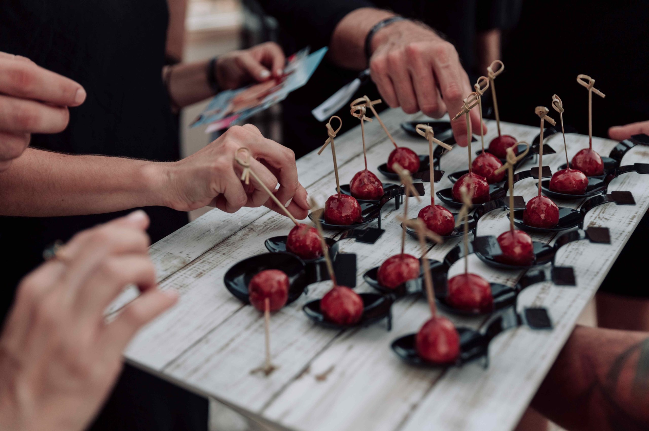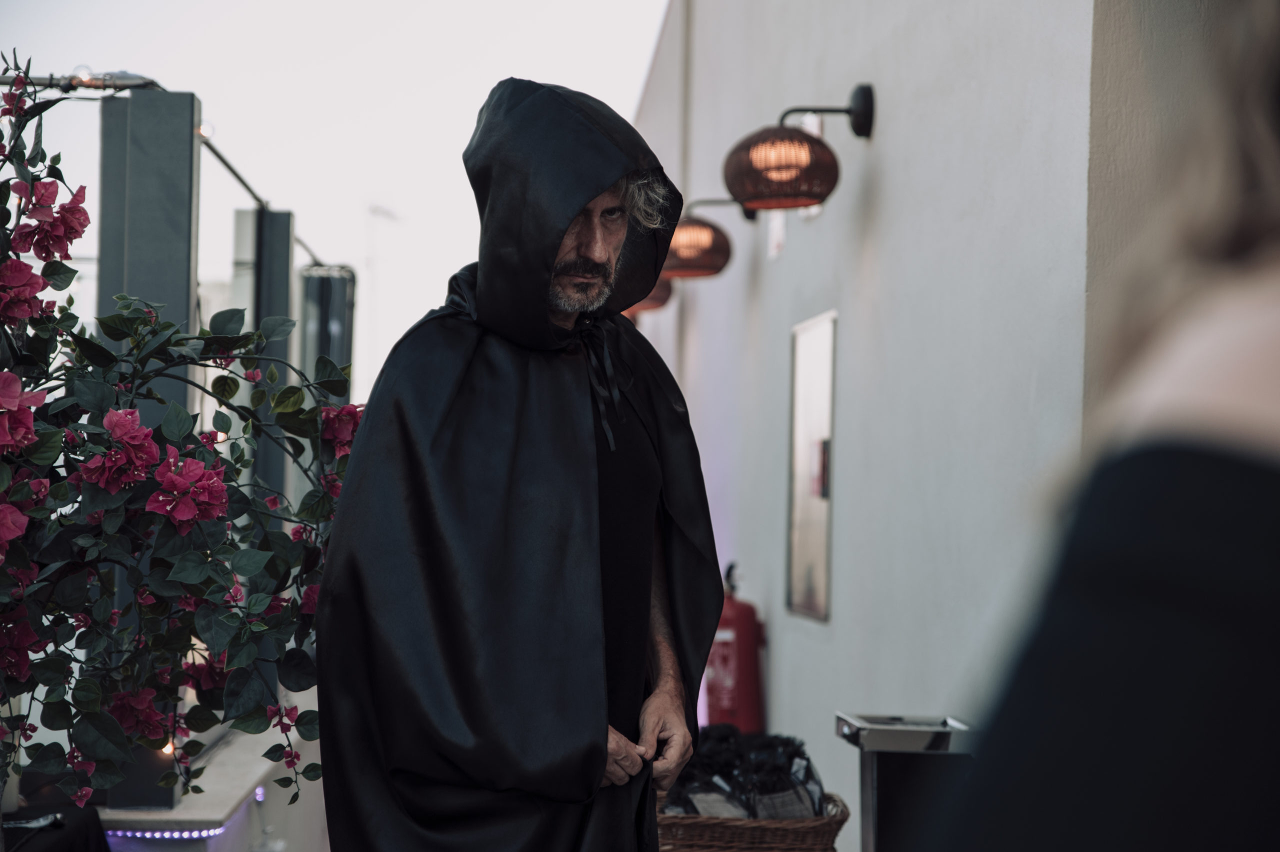 La recepción y encuentro inicial se realizó en una terraza decorada con calaveras, candelabros de velas negras y manteles de telaraña, todo preparado por la misma Marina. Rafa Martí dirigió una ceremonia introductoria, explicando el motivo del duelo y dando paso a una cena de cóctel proporcionada por el hotel, acompañada de cócteles seleccionados por la empresa TuBarman.es.