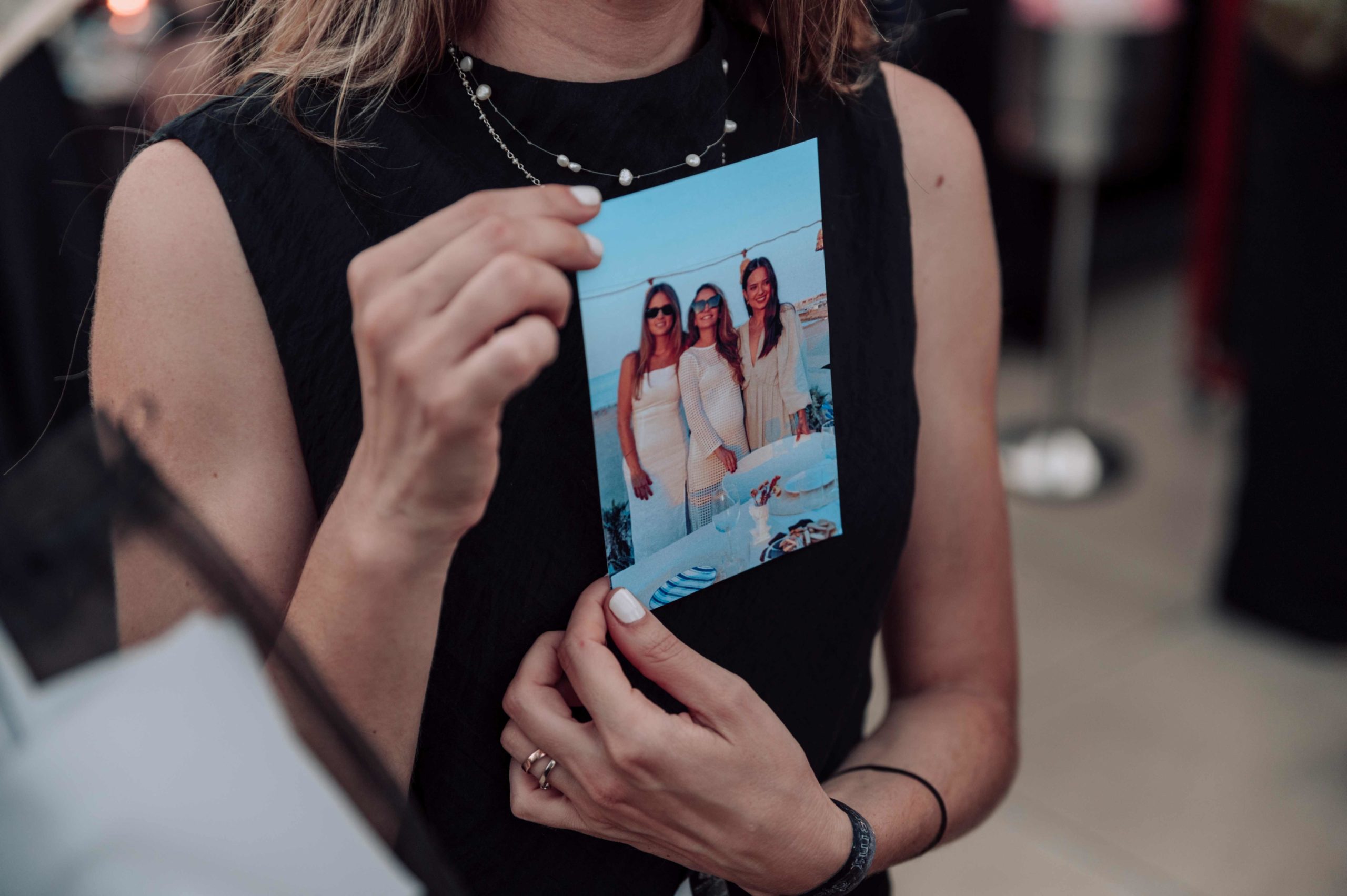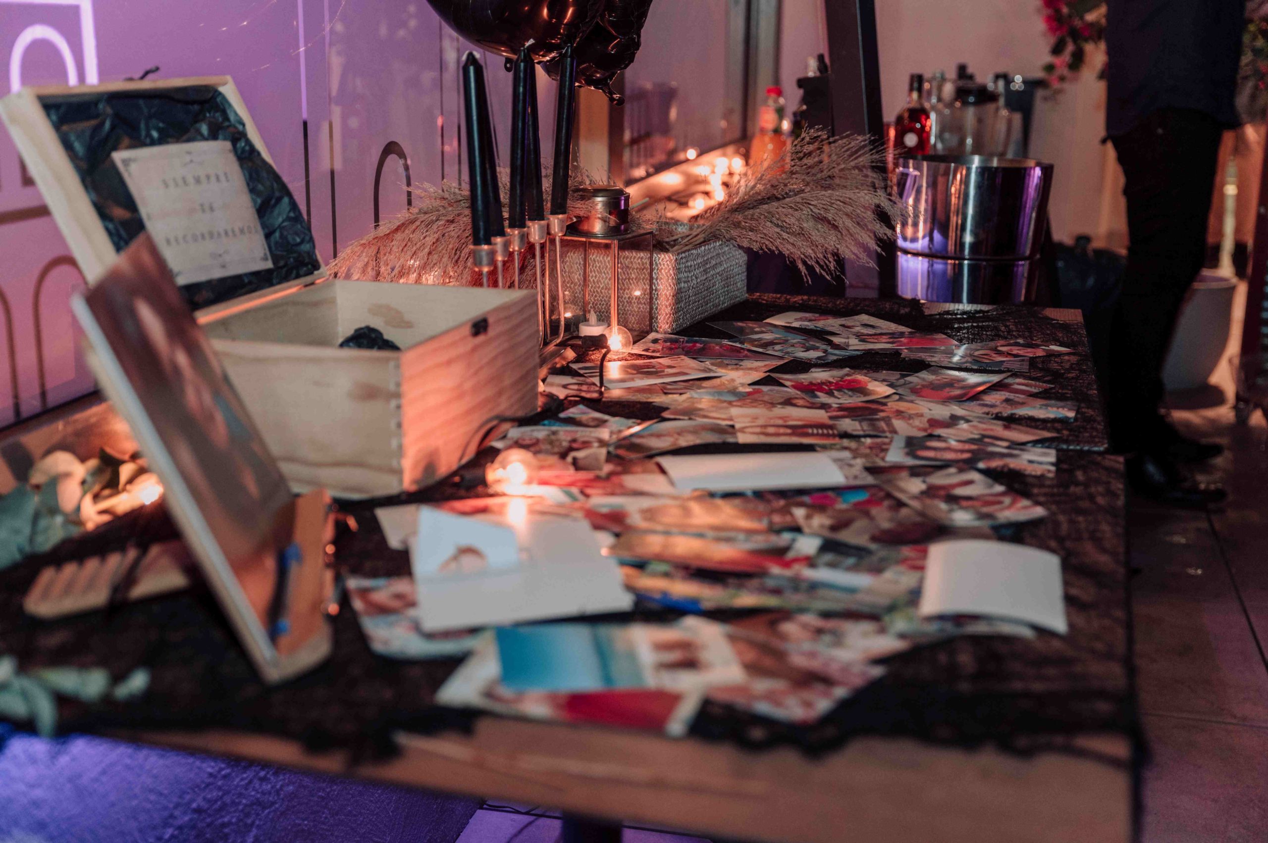 Durante la cena, los invitados participaron en una actividad simbólica: encontrar una foto suya con Marina de sus 20 años, dejar un mensaje en la parte trasera y depositarla en una caja de madera, simbolizando el entierro de esos recuerdos.
