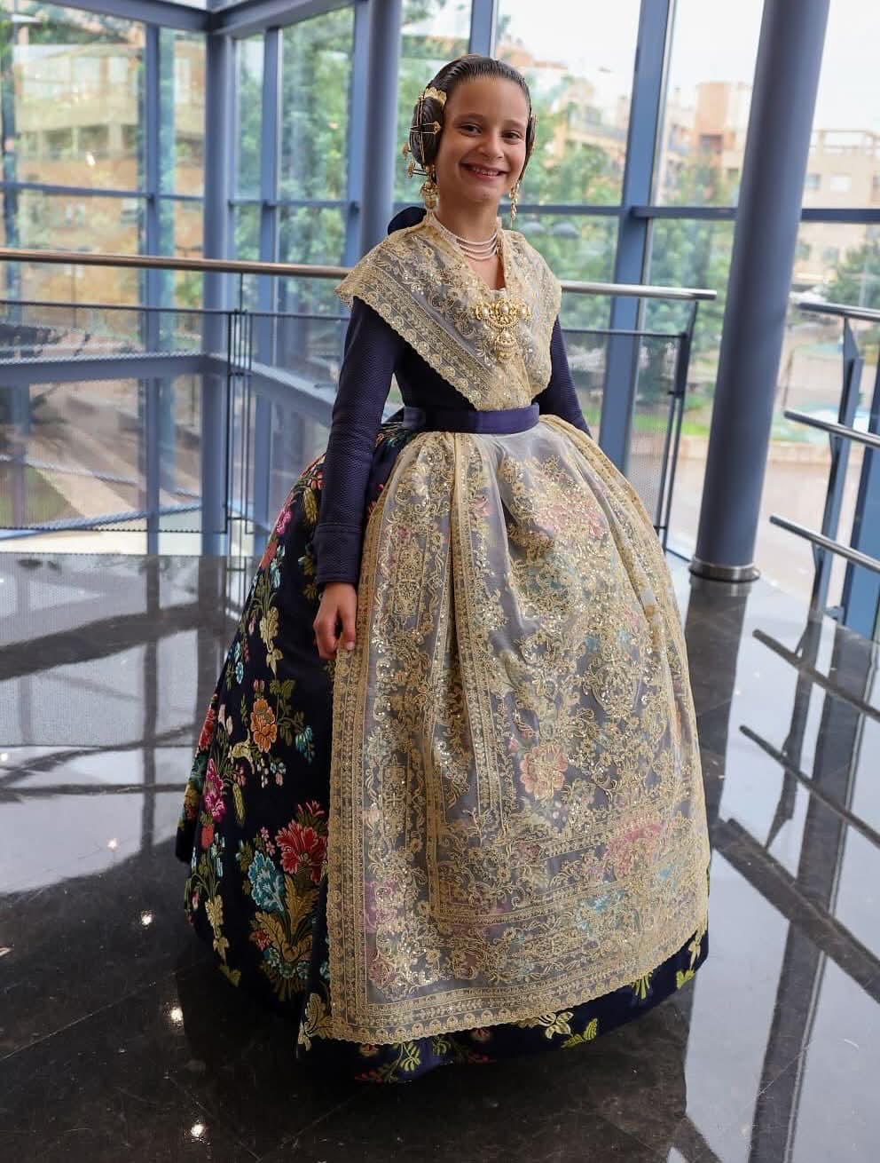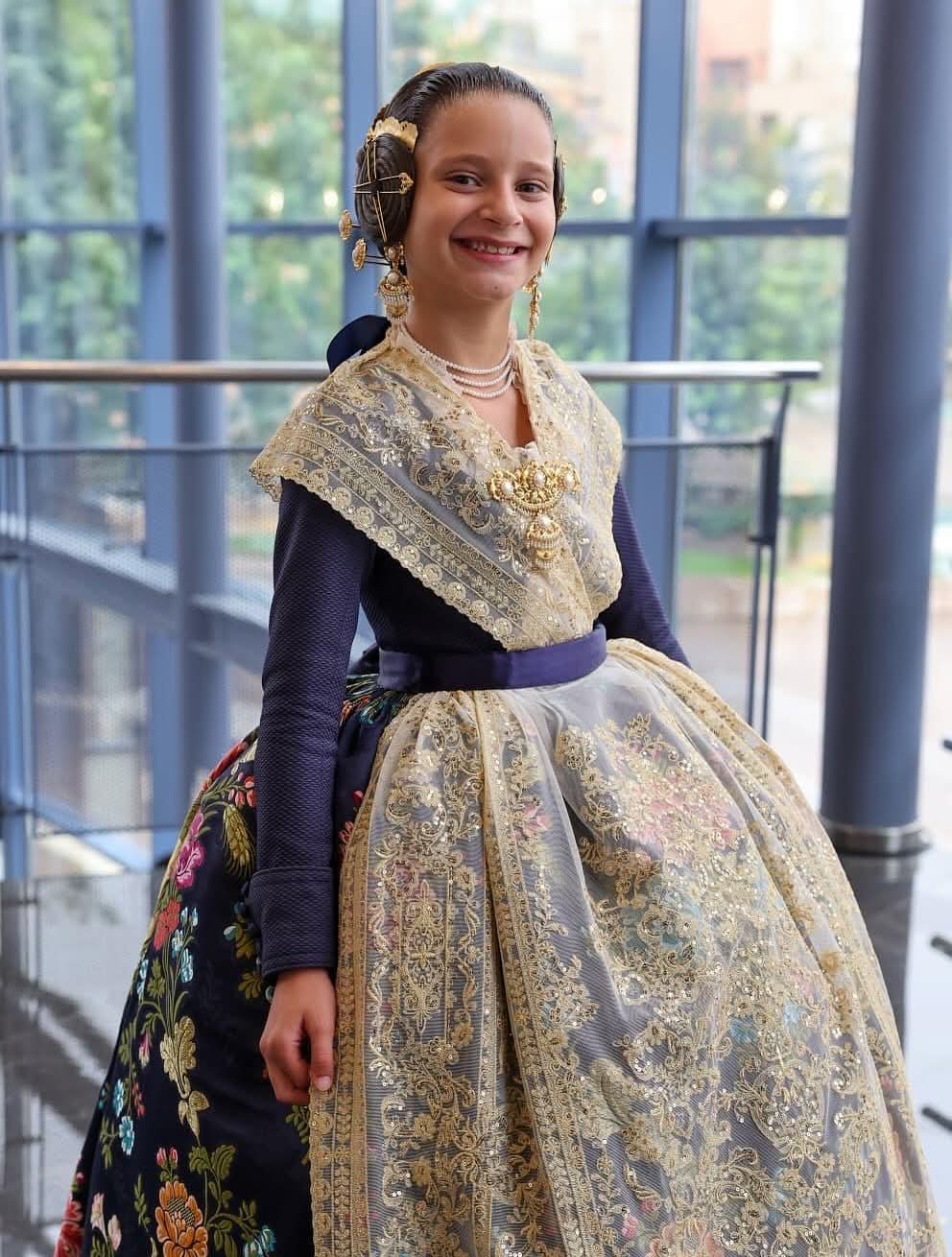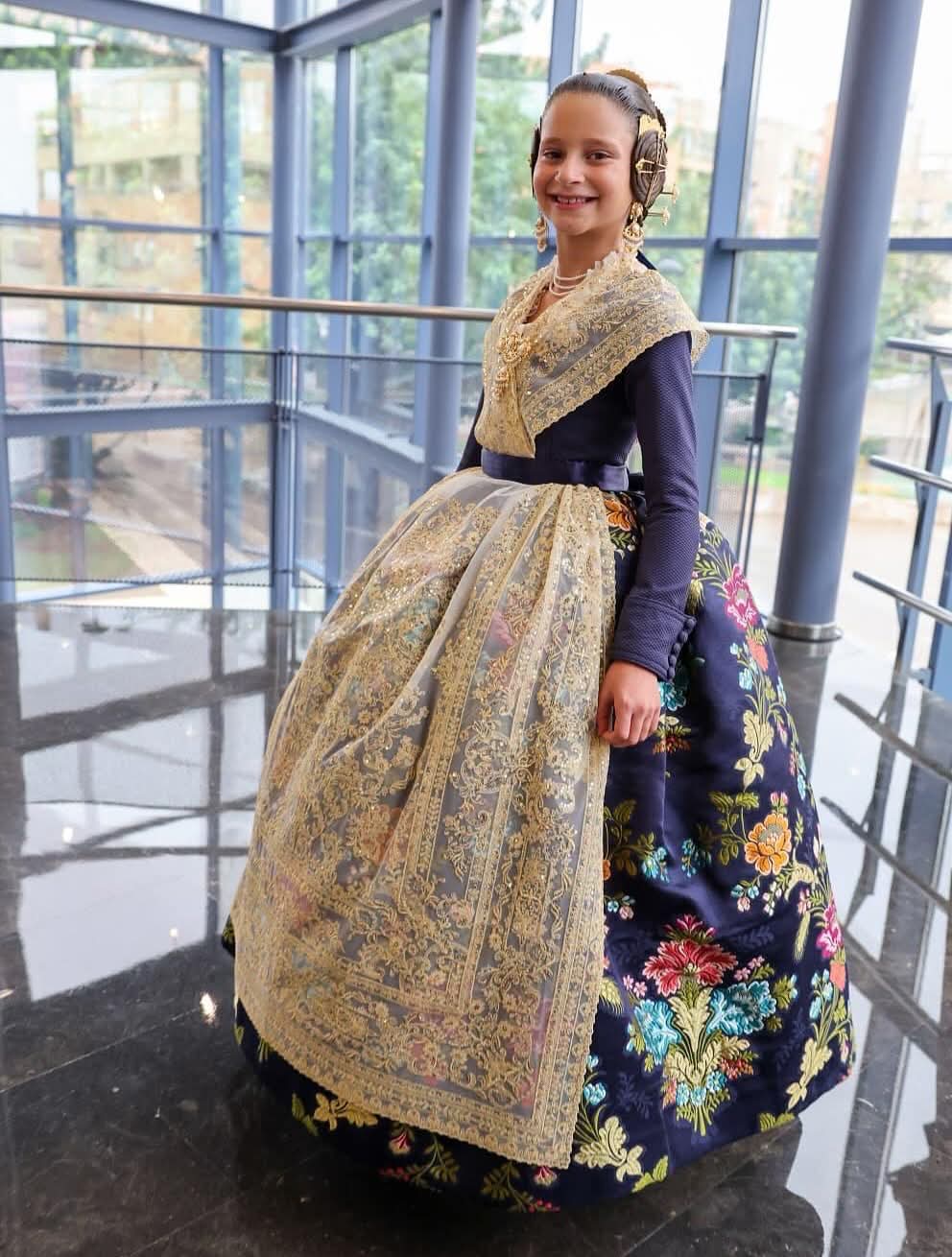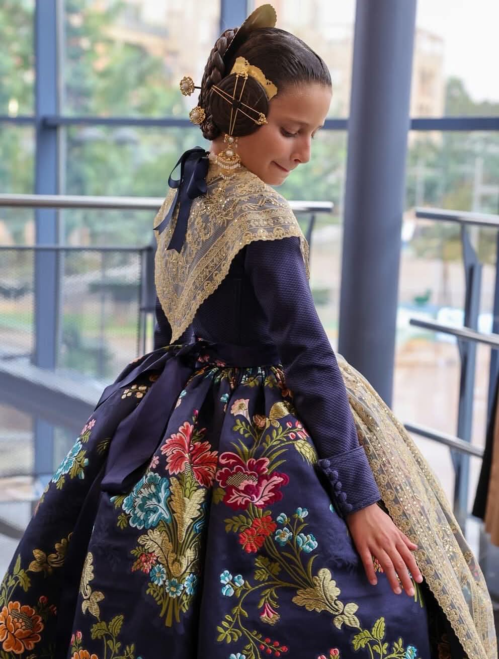 La Fallera Mayor Infantil de Valencia 2026, Marta Mercader Roig, ha hecho su esperado debut luciendo un traje que combina tradición, elegancia y artesanía de máxima calidad. Este conjunto, cuidadosamente confeccionado por Flor de Cotó, destaca no solo por su elegante color azul marino, sino también por la excelencia de los detalles que hacen único cada vestido de fallera.