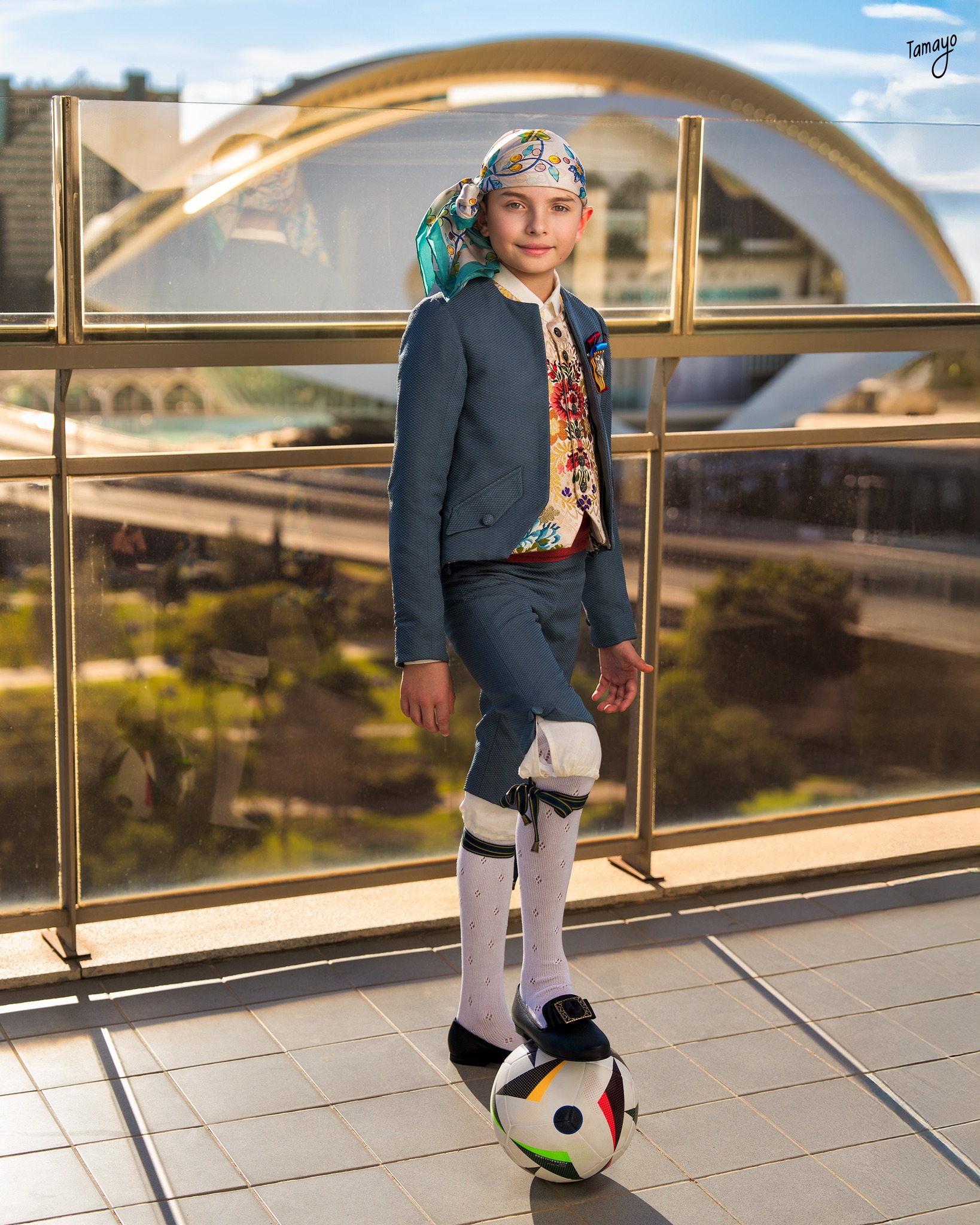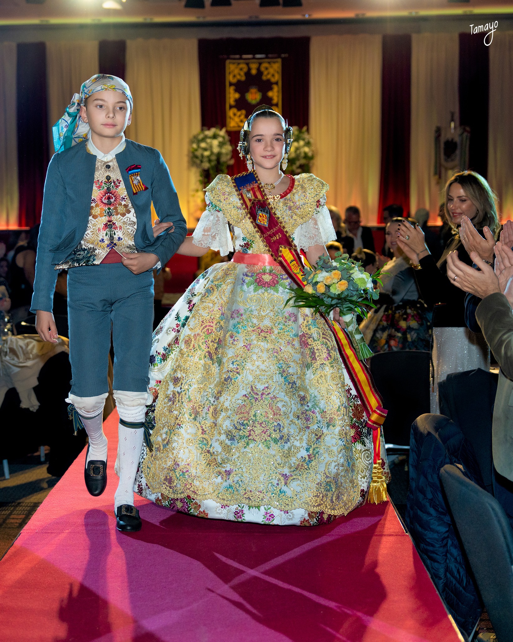 Martín eligió impresionante Lyon, un traje que rinde homenaje a su hermana Aisha, quien lució este mismo tejido en su año como Fallera Mayor Infantil. Este gesto resalta la importancia de la tradición y el legado familiar en el mundo fallero, haciendo de su presentación un día aún más especial.