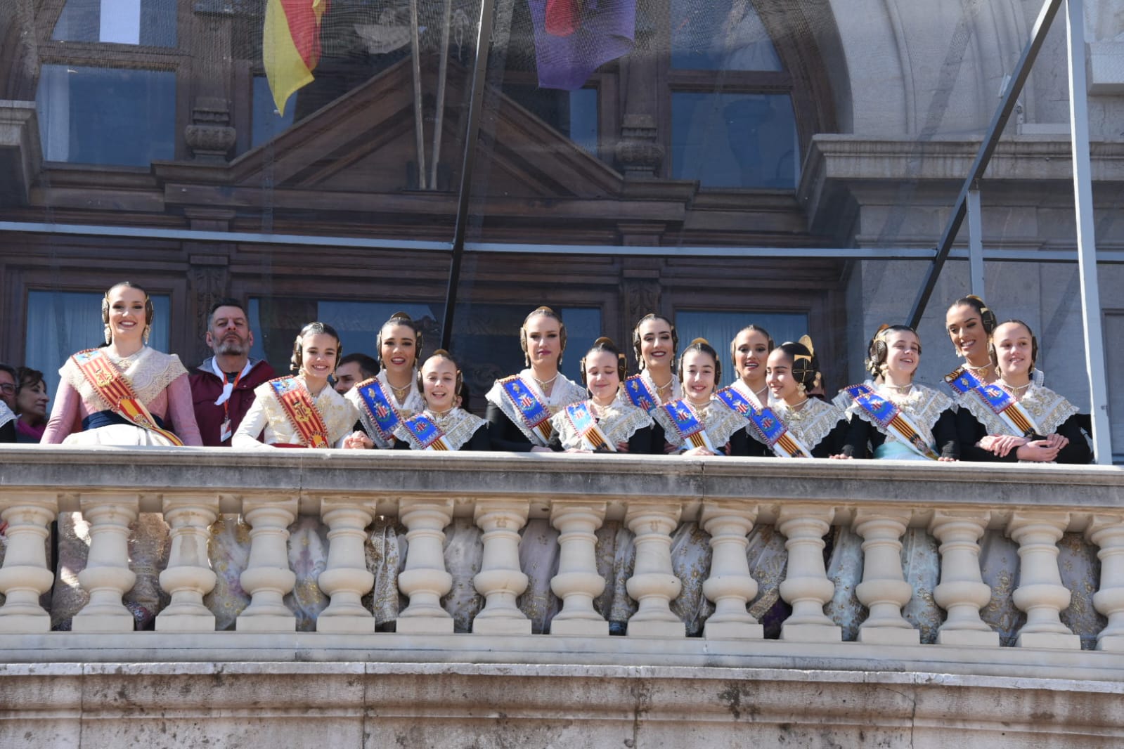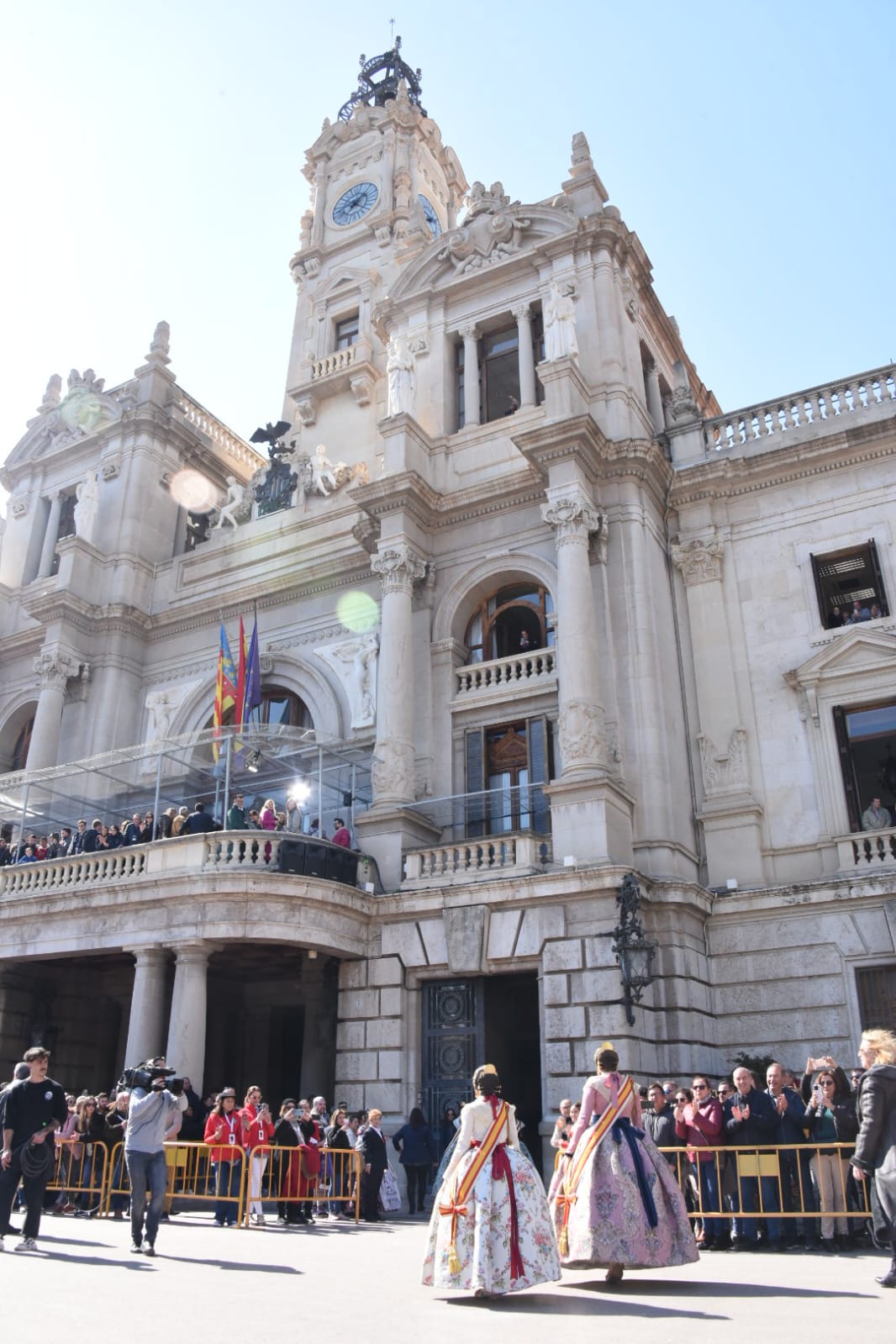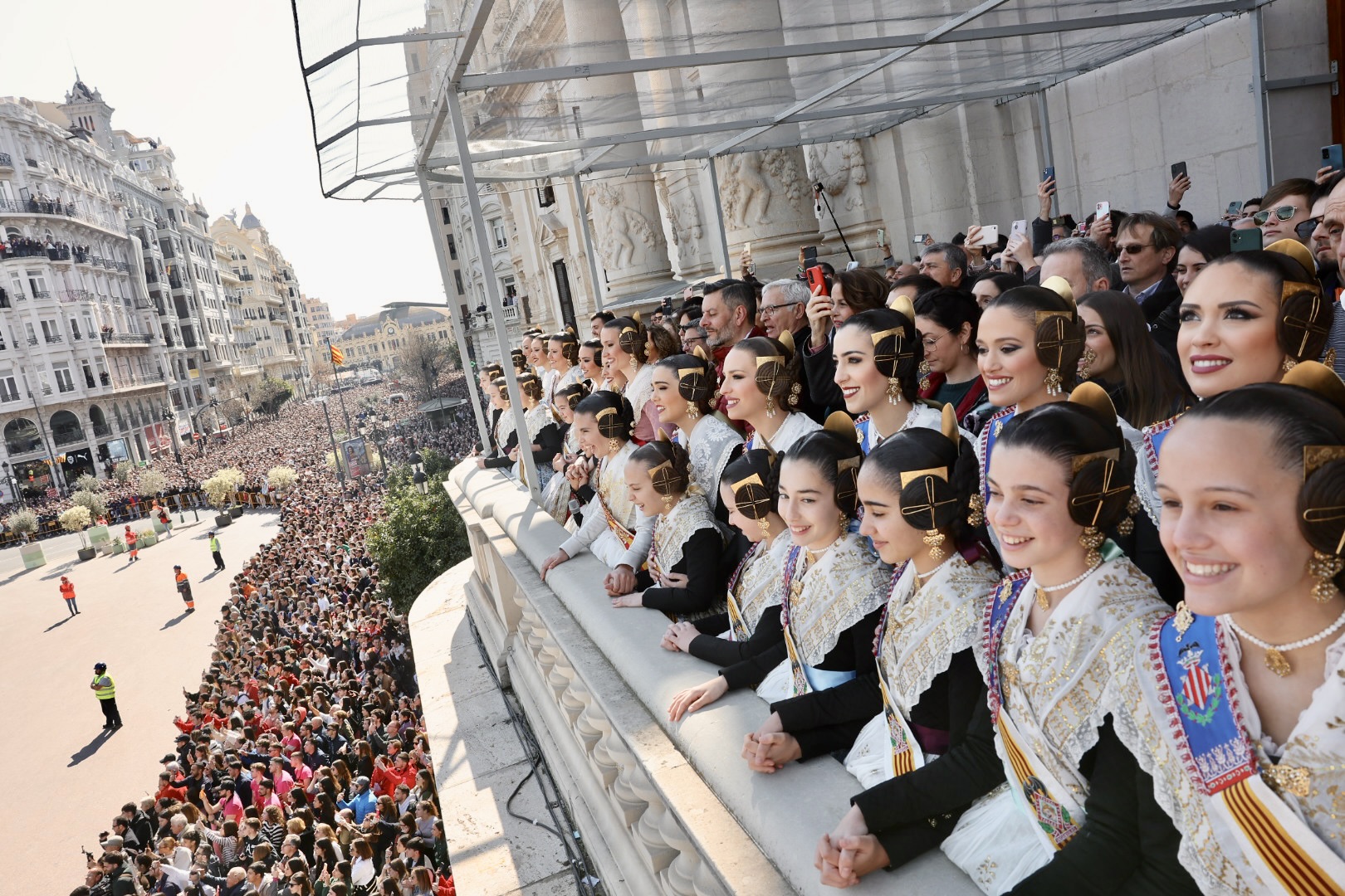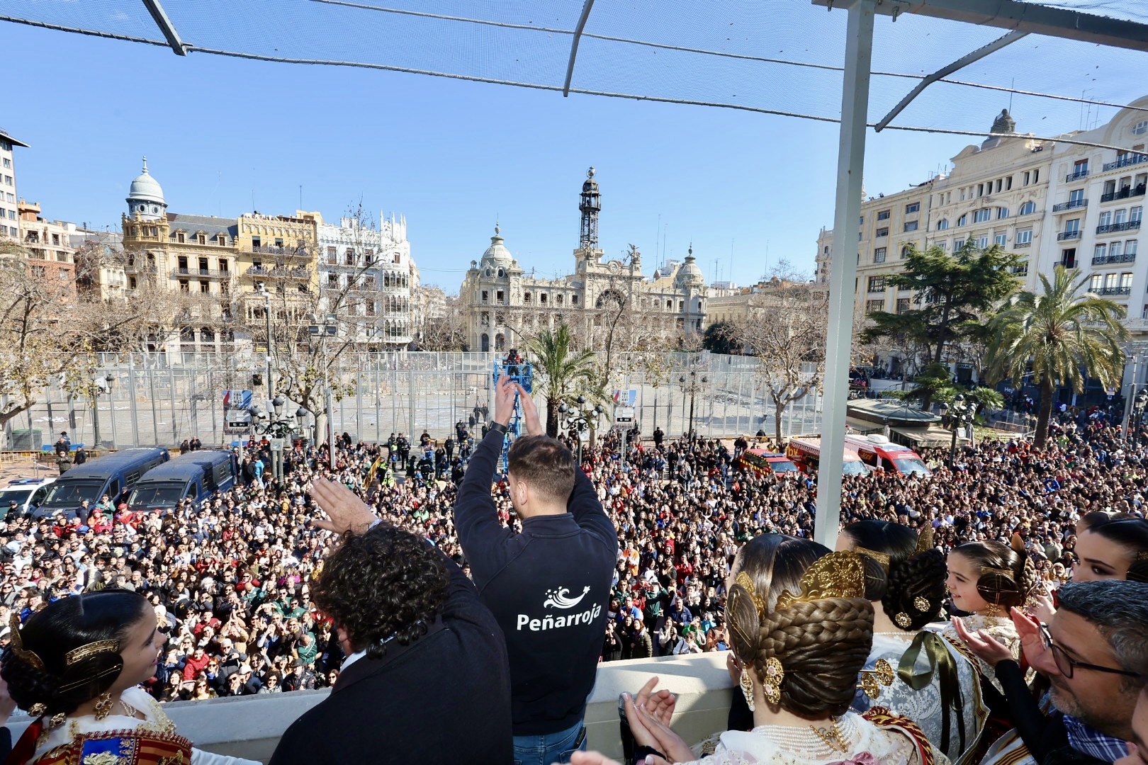 Siendo la primera mascletà todo el mundo quería estar en el balcón. Lleno de autoridades como el Conseller d’Economia Sostenible, Sectores Productivos, Comerç i Treball, Rafael Climent. La Vicepresidenta 1ª de la mesa de les  Corts, María José Salvador, el  Diputado Corts, Jesús Salmeron y  Diputada Corts, Sunsi Sanchís. Las comisiones falleras también han estado presentes con la representación de Maestro Valls – Marino Albesa, Ramiro de Maeztu – Los leones, Patraix, Plaza de Yecla – Cardenal Benlloch, Gloria – Felicidad – Tremolar, Reina Vicente Guillot y Villanueva de Castellón – Hort Galan. Las juntas locales también han estado representadas con la junta local de La Vall D’uixó, Alberic y Alaquàs.