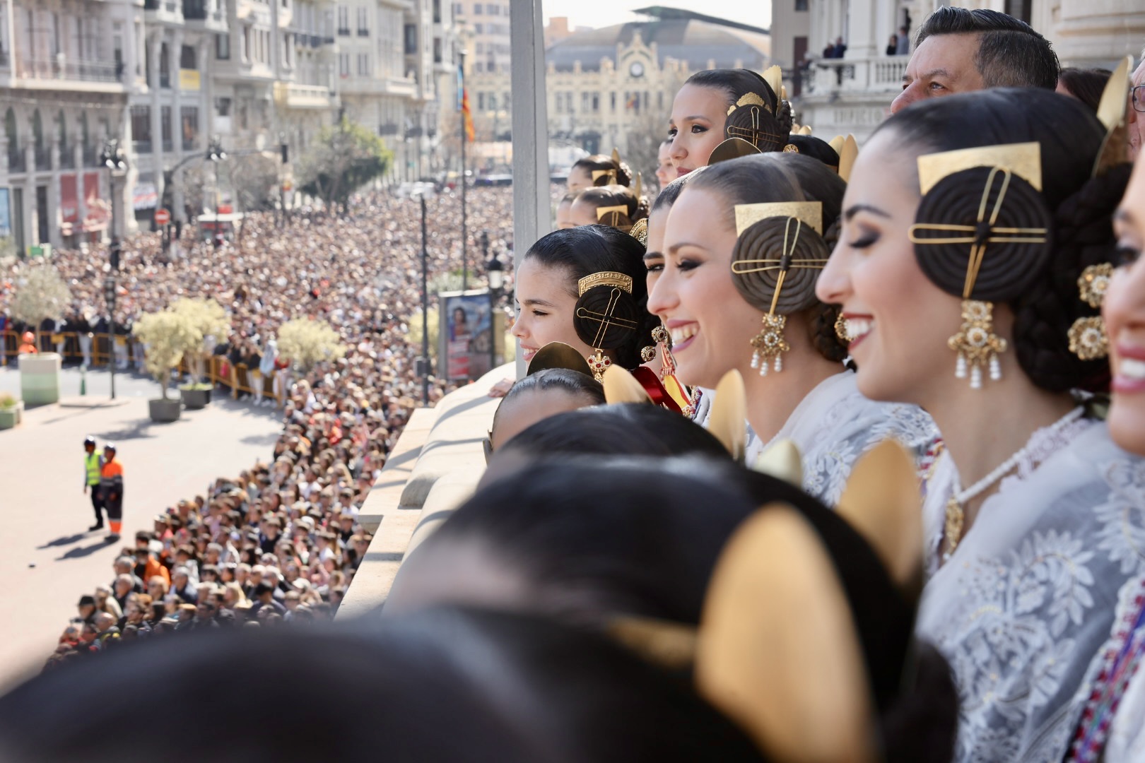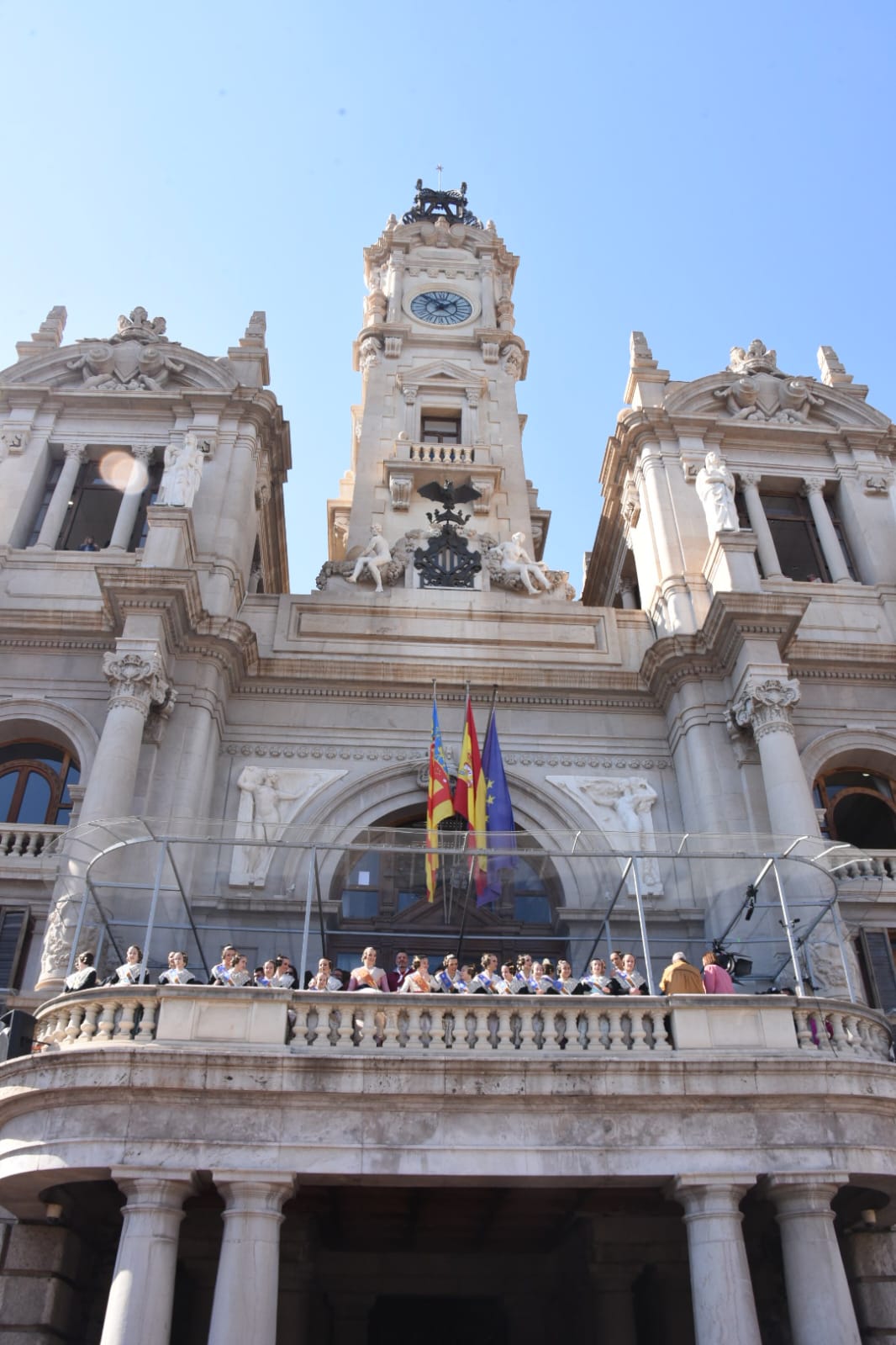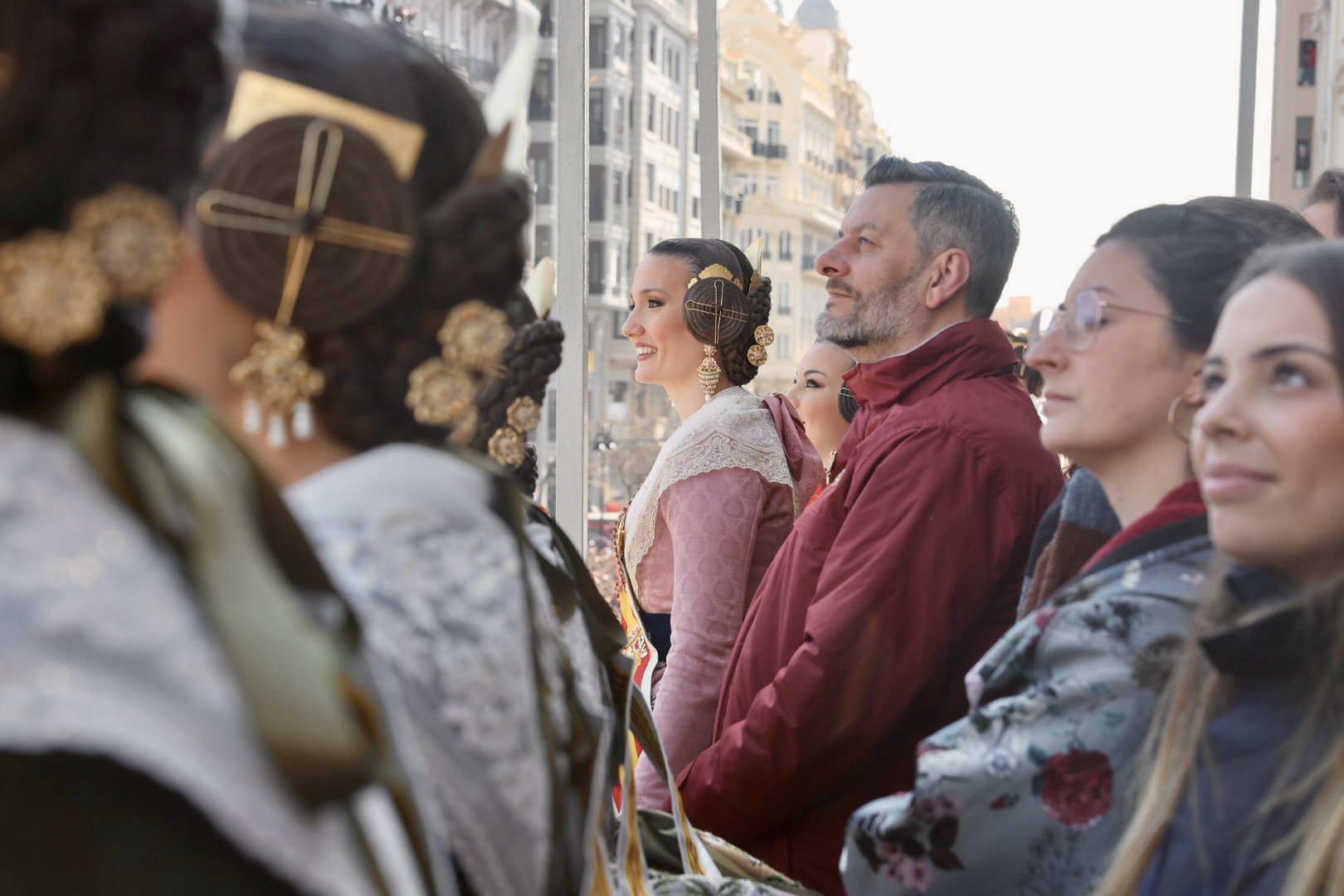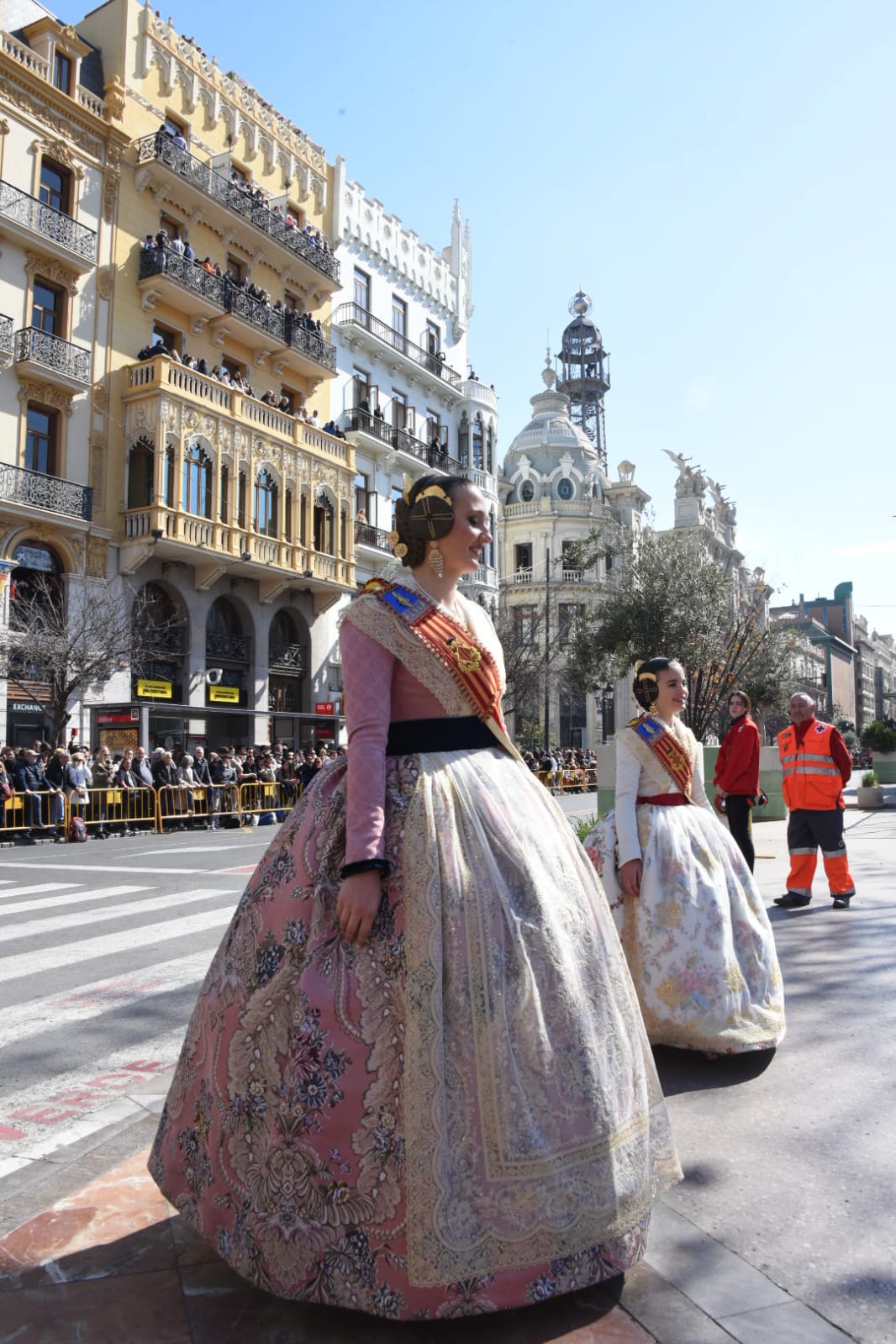 Siendo la primera mascletà todo el mundo quería estar en el balcón. Lleno de autoridades como el Conseller d’Economia Sostenible, Sectores Productivos, Comerç i Treball, Rafael Climent. La Vicepresidenta 1ª de la mesa de les  Corts, María José Salvador, el  Diputado Corts, Jesús Salmeron y  Diputada Corts, Sunsi Sanchís. Las comisiones falleras también han estado presentes con la representación de Maestro Valls – Marino Albesa, Ramiro de Maeztu – Los leones, Patraix, Plaza de Yecla – Cardenal Benlloch, Gloria – Felicidad – Tremolar, Reina Vicente Guillot y Villanueva de Castellón – Hort Galan. Las juntas locales también han estado representadas con la junta local de La Vall D’uixó, Alberic y Alaquàs.