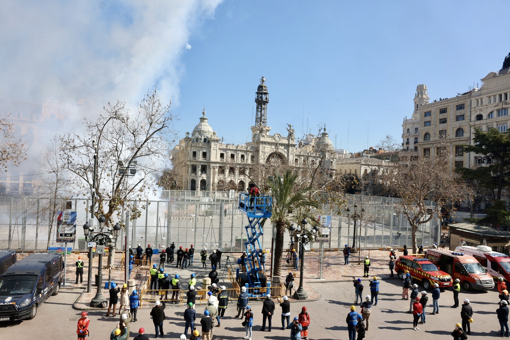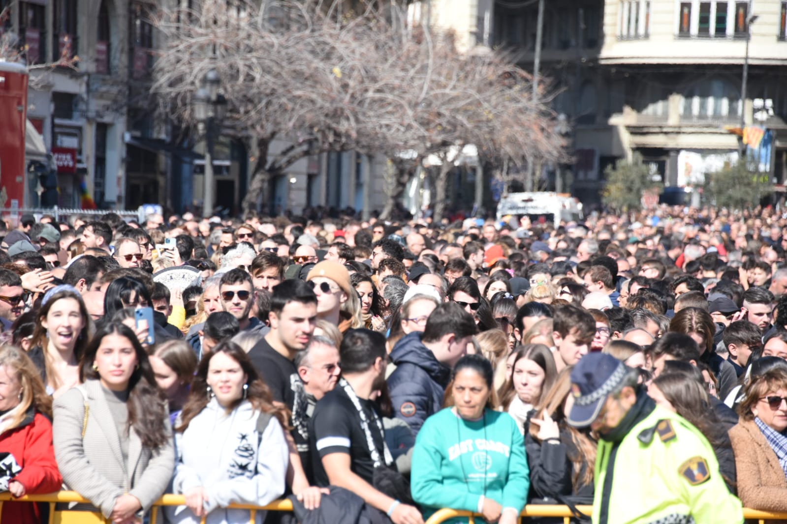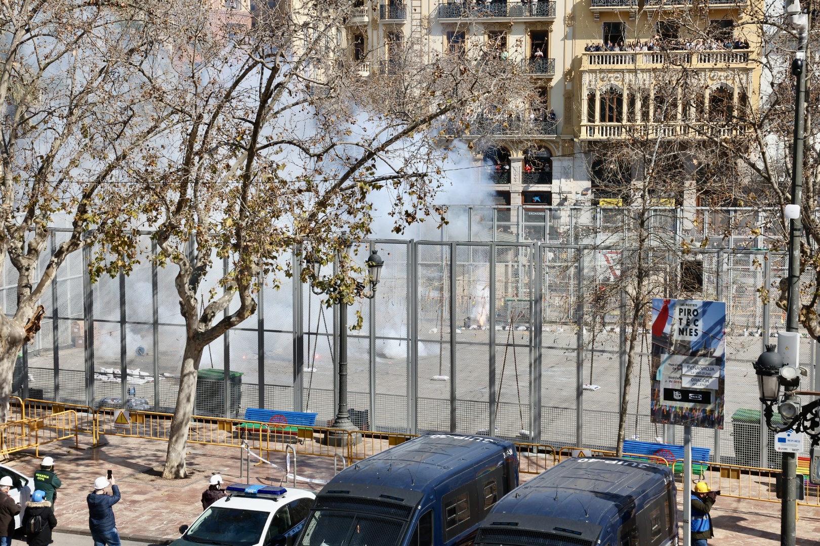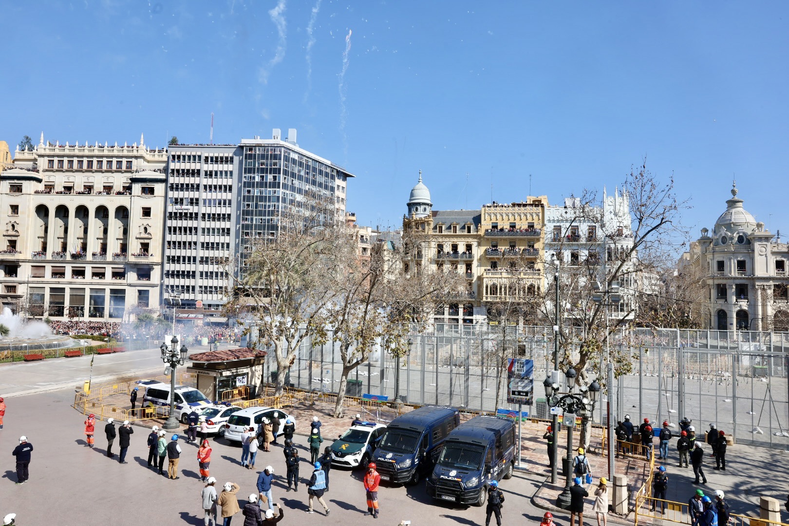 Siendo la primera mascletà todo el mundo quería estar en el balcón. Lleno de autoridades como el Conseller d’Economia Sostenible, Sectores Productivos, Comerç i Treball, Rafael Climent. La Vicepresidenta 1ª de la mesa de les  Corts, María José Salvador, el  Diputado Corts, Jesús Salmeron y  Diputada Corts, Sunsi Sanchís. Las comisiones falleras también han estado presentes con la representación de Maestro Valls – Marino Albesa, Ramiro de Maeztu – Los leones, Patraix, Plaza de Yecla – Cardenal Benlloch, Gloria – Felicidad – Tremolar, Reina Vicente Guillot y Villanueva de Castellón – Hort Galan. Las juntas locales también han estado representadas con la junta local de La Vall D’uixó, Alberic y Alaquàs.