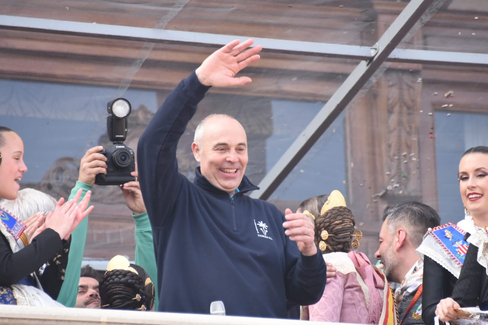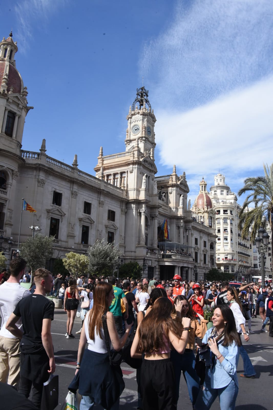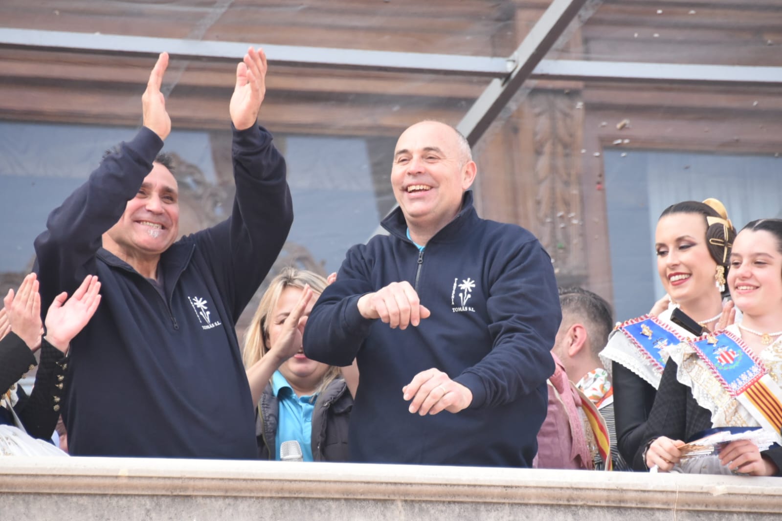 El balcón de la casa consistorial ha contado este sábado con la asistencia de la delegada del Gobierno en la Comunitat Valenciana, Pilar Bernabé; la secretaria autonómica de Innovación, Mª Ángeles Campello; la presentadora del podcast ‘Saldremos mejores’ y de las dos ediciones del Benidorm Fest, Inés Hernand; Burning Man. Capitalitat del Disseny, y la Fallera Mayor Infantil de València 2022, Nerea López Maestre, y su Corte de Honor.