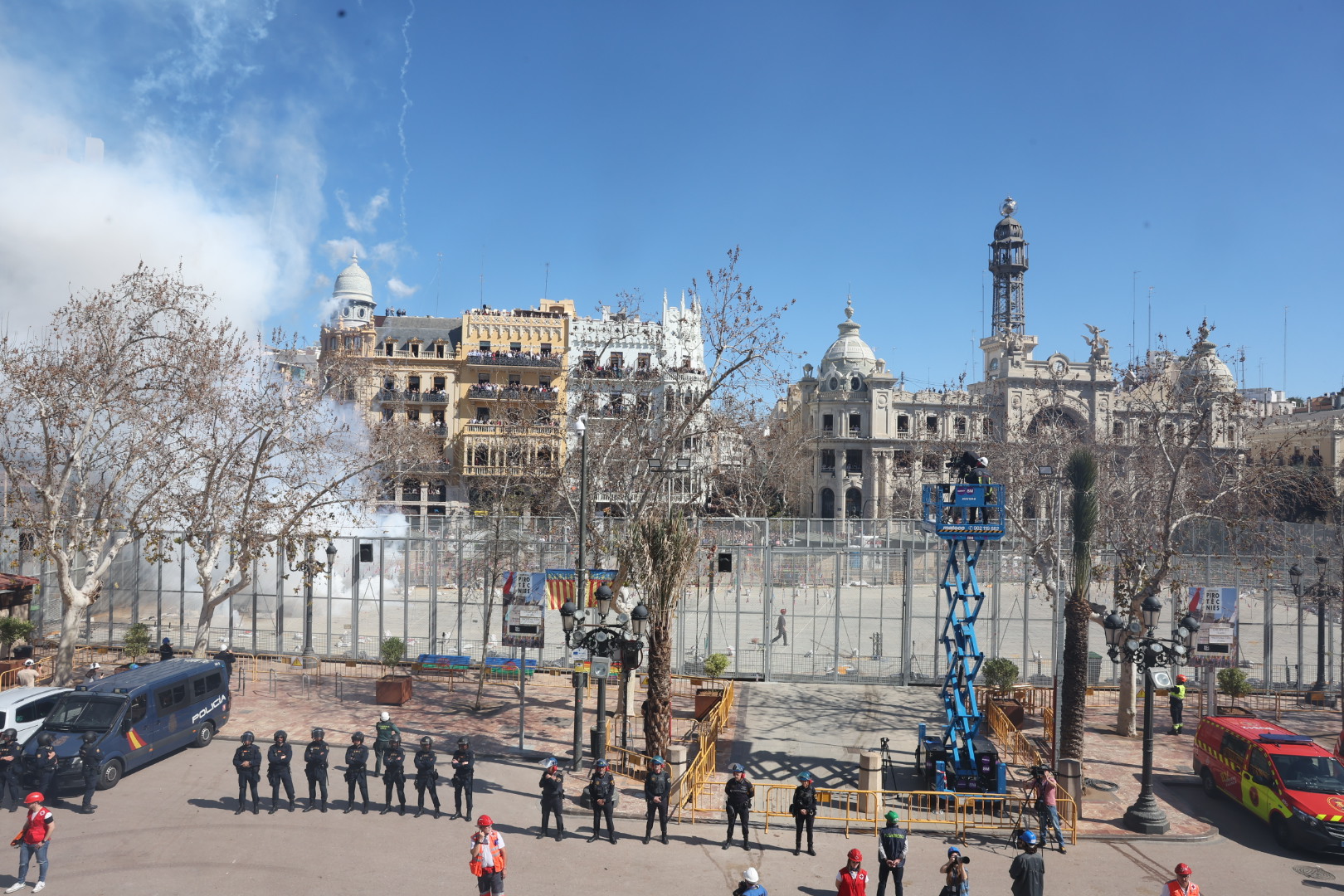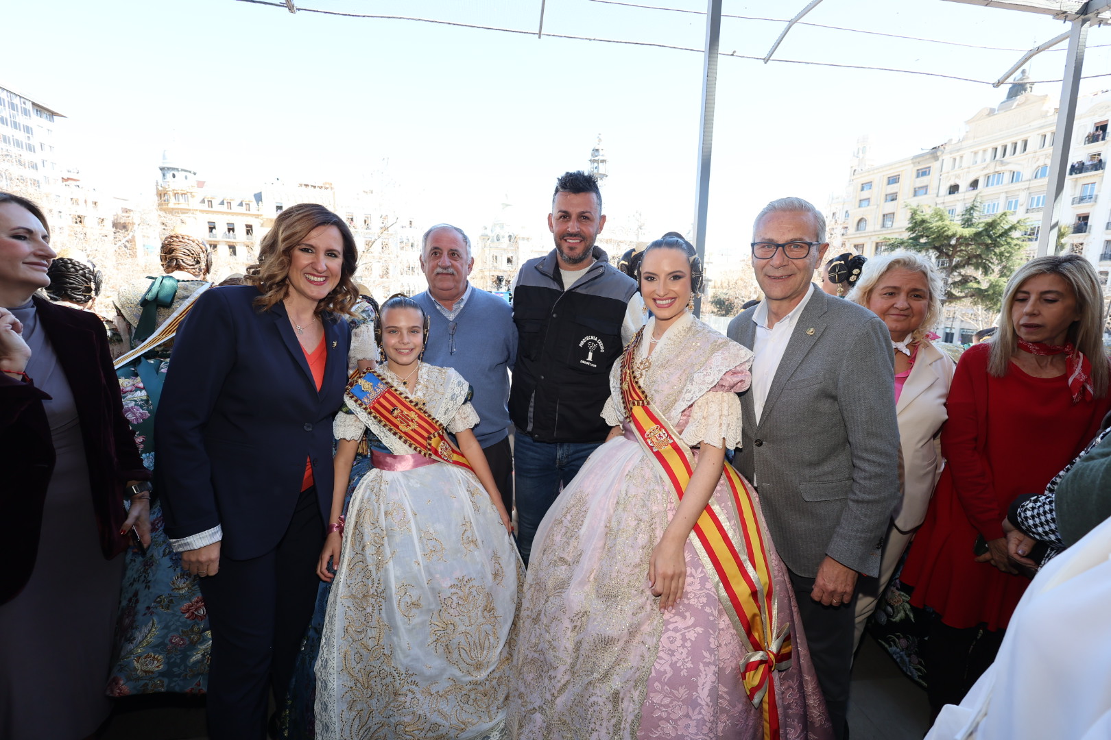 Como testigos de la apoteósica mascletà han estado representados en el balcón del Ayuntamiento de València el mundo del deporte, la policía, las instituciones autonómicas, la música y el periodismo. Los jugadores del primer equipo del Valencia CF, que han acaparado decenas de selfies compartidos, han acudido con su presidenta Layhoon Chan y el equipo directivo. Por parte de la Generalitat han presenciado el disparo Ruth Merino, consellera de Hacienda, Economía y Administración Pública; Nuria Montes, consellera de Innovación, Industria, Comercio y Turismo; así como la secretaria autonómica de Turismo, Cristina Moreno.