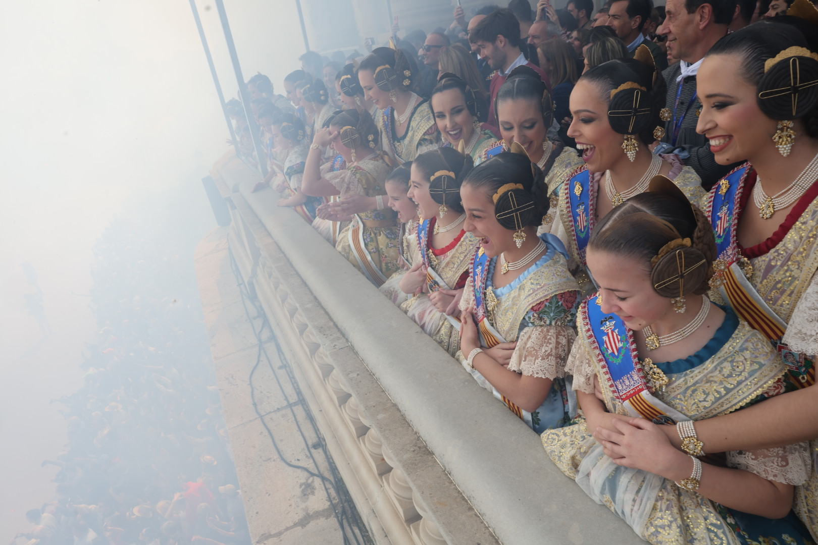 Invitados en el balcón de las mascletà