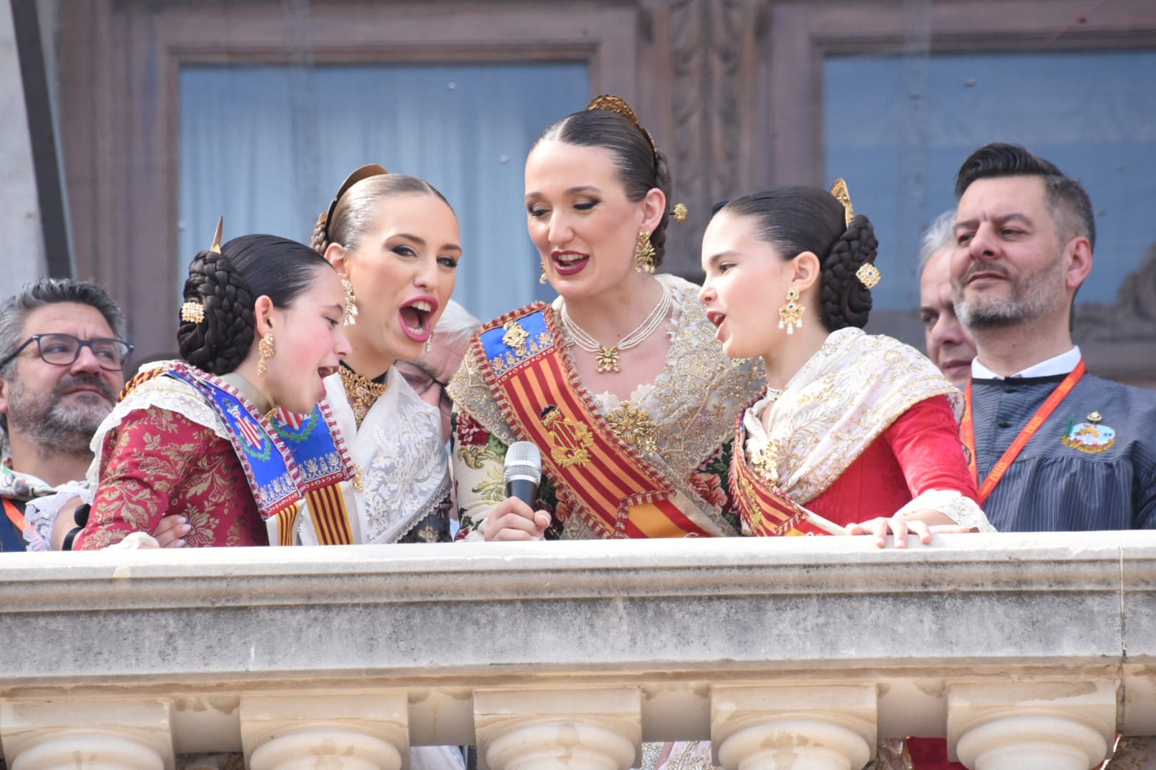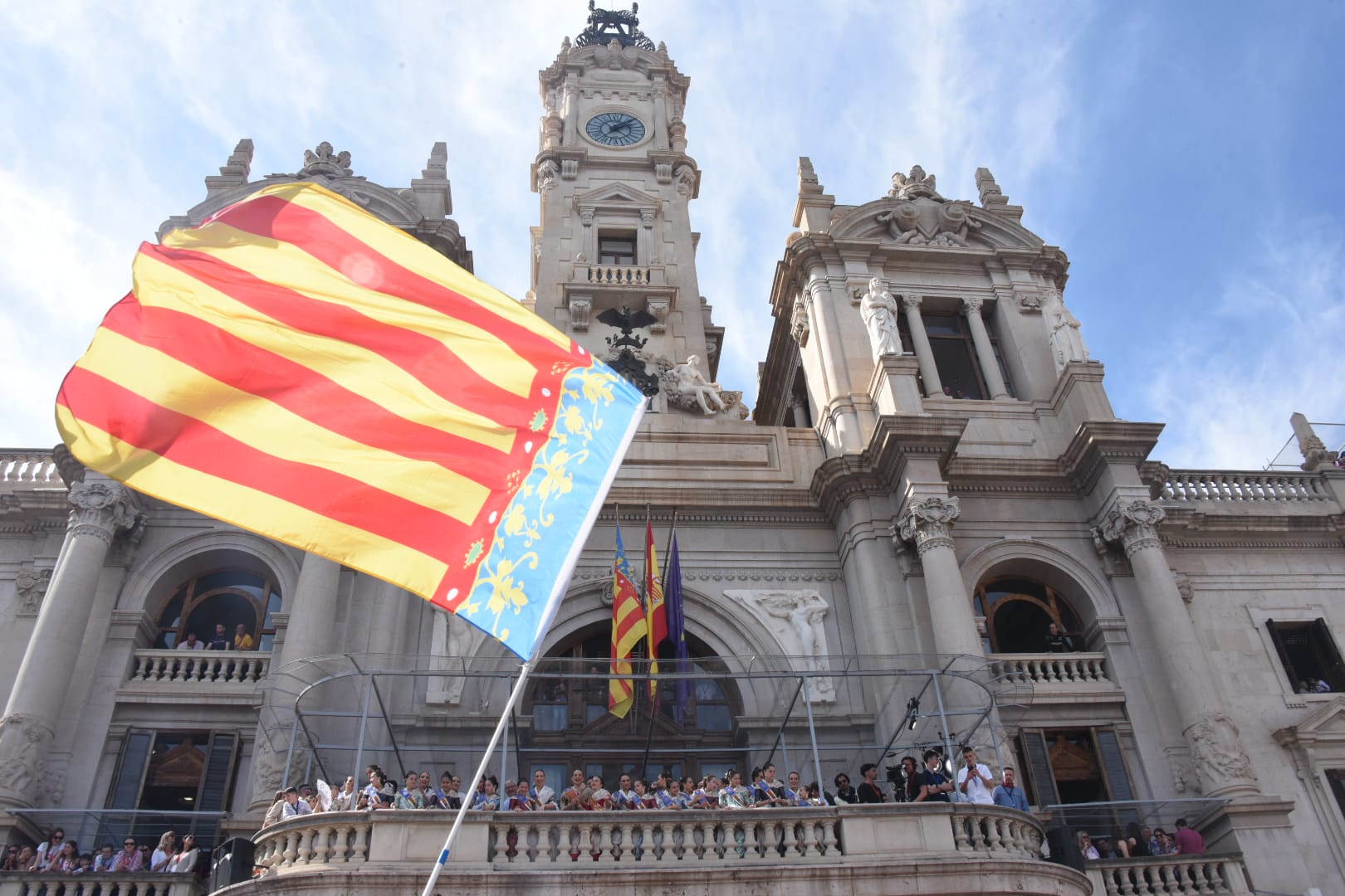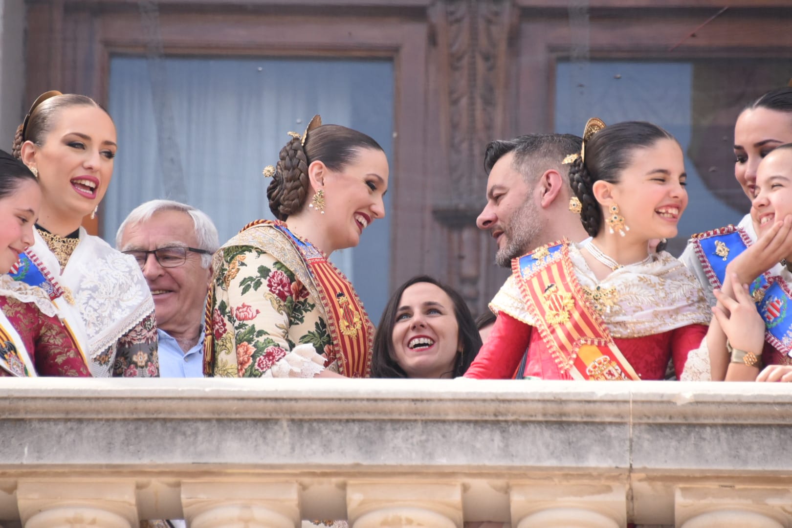 El balcón principal de la casa consistorial ha contado este lunes con la presencia de la ministra de Derechos Sociales y Agenda 2030, Ione Belarra; el vicepresidente segundo y conseller de Vivienda y Arquitectura Bioclimática, Héctor Illueca; la secretaria de Estado para la Agenda 2030, Lilith Verstrynge; la secretaria autonómica de Innovación, Mª Angeles Campello, y las síndicas de Compromís, Unides Podem y Cs en Les Corts, Papi Robles, Pilar Lima y Mamen Peris.