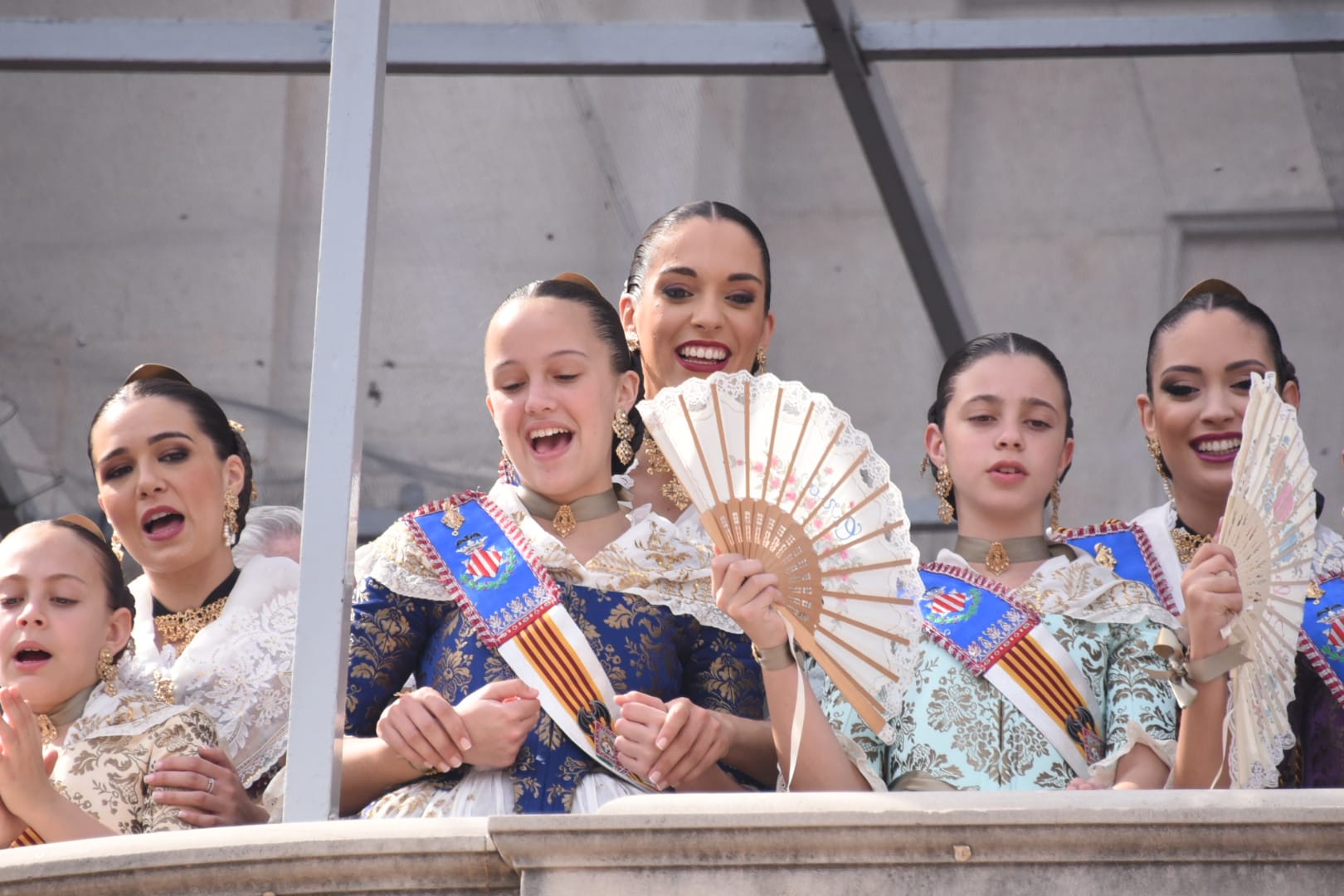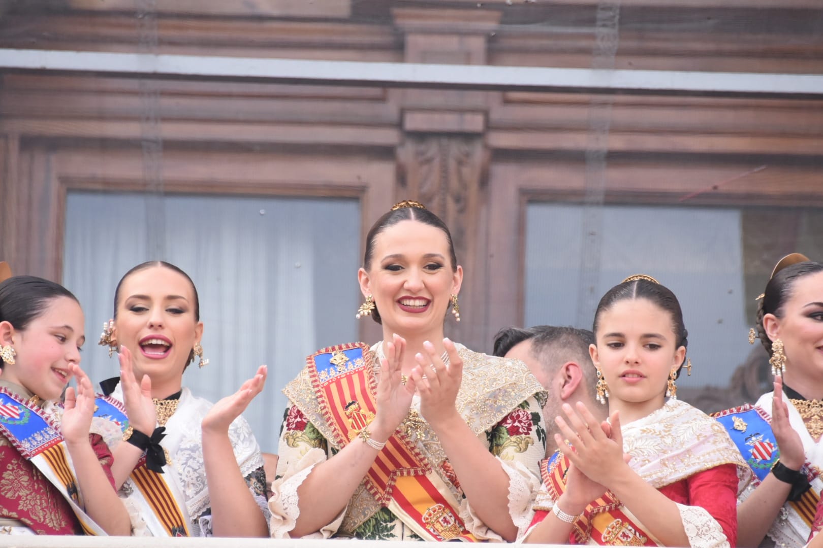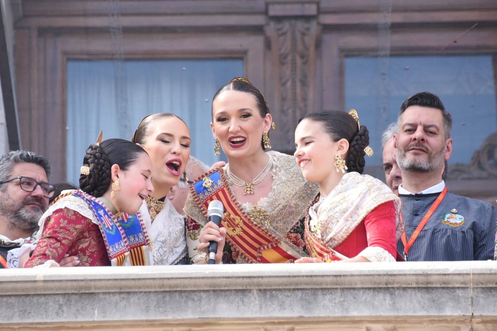 El balcón principal de la casa consistorial ha contado este lunes con la presencia de la ministra de Derechos Sociales y Agenda 2030, Ione Belarra; el vicepresidente segundo y conseller de Vivienda y Arquitectura Bioclimática, Héctor Illueca; la secretaria de Estado para la Agenda 2030, Lilith Verstrynge; la secretaria autonómica de Innovación, Mª Angeles Campello, y las síndicas de Compromís, Unides Podem y Cs en Les Corts, Papi Robles, Pilar Lima y Mamen Peris.