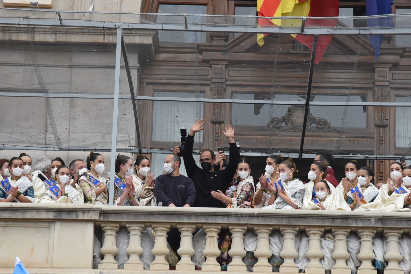 Hoy el balcón del Ayuntamiento ha contado con la presencia de la plantilla y la directiva del Levante U.D, las Belleas del Foc de Alicante, el grupo Gay Games, el club de gimnasia Antares, la tiktoker valenciana Lola Aaguilella, el Jefe Superior de Policía  C.V, Jorge Martí Rodríguez y la Directora del Museo del Artista Fallero. María José Luna.