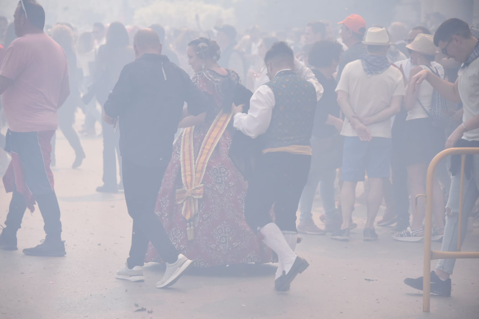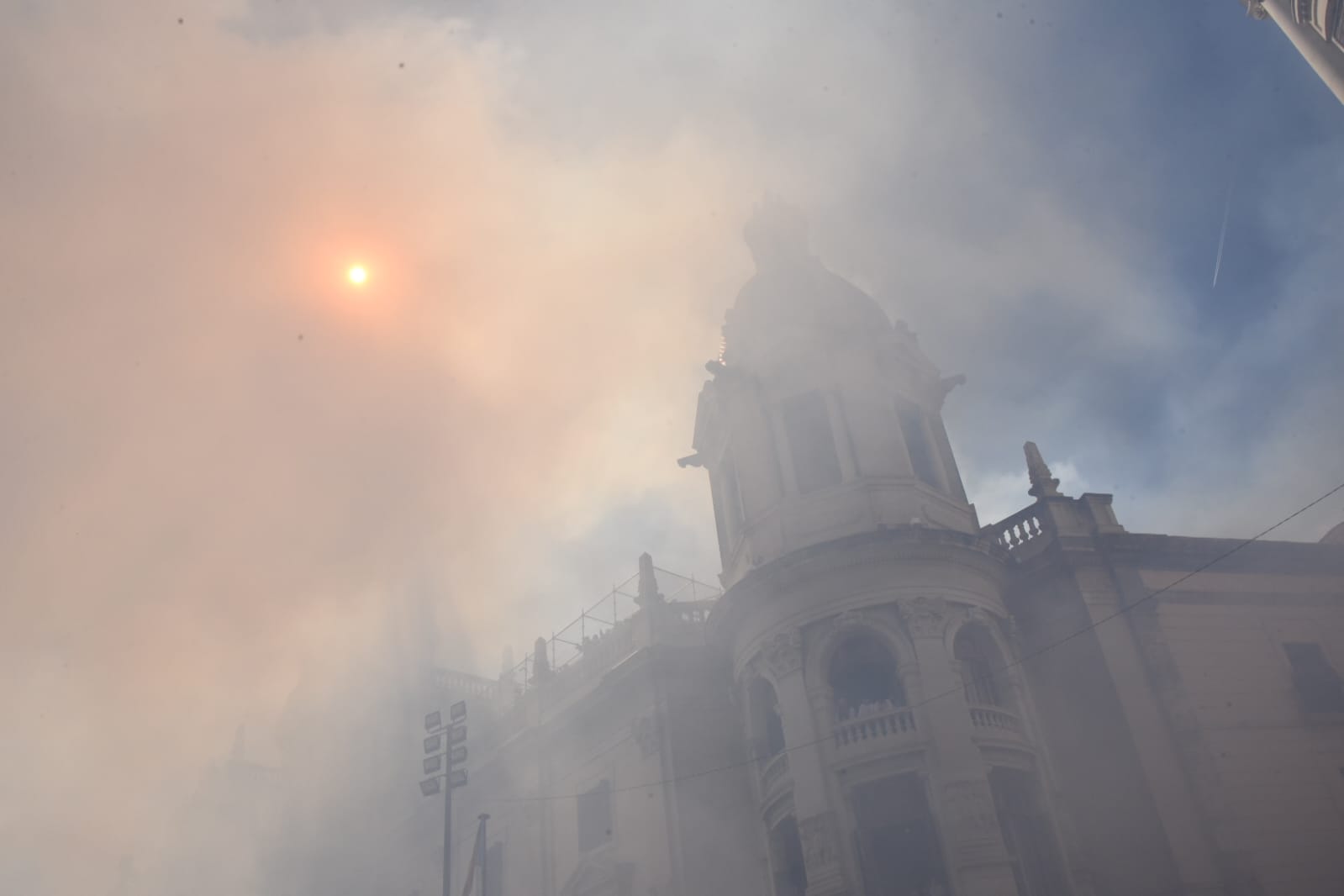 La Pirotecnia Turis vuelve a la catedral de la pólvora con mas de 125 kilos de pólvora que han hecho estallar la Plaza del Ayuntamiento. Algo menos de 6 minutos ha sido su duración, en una mascletà rápida, pero muy potente, en la que han confinado el corte clásico con el novedoso ritmo de las secuencias musicales.