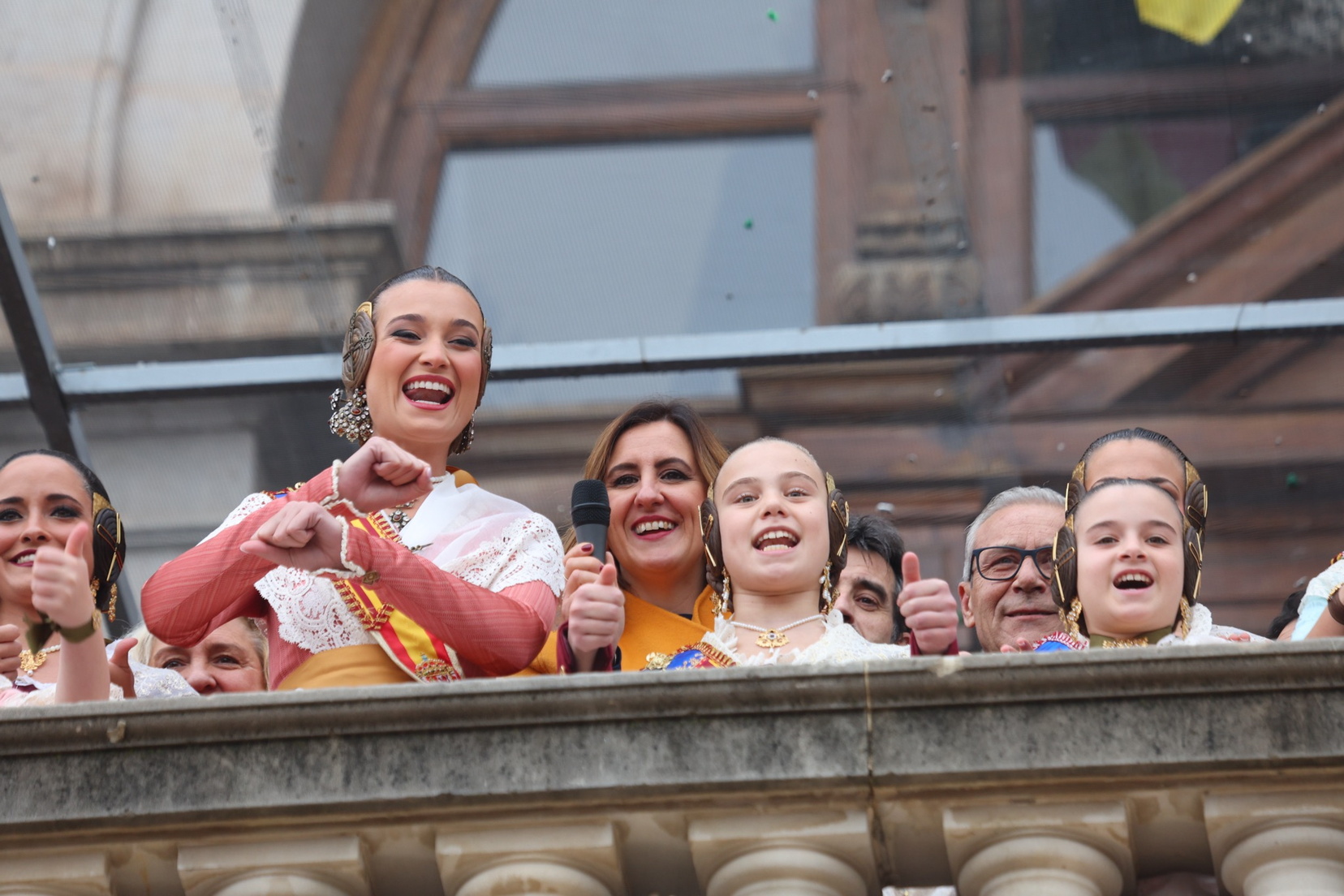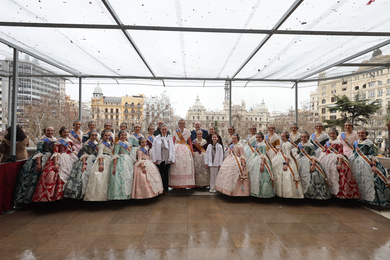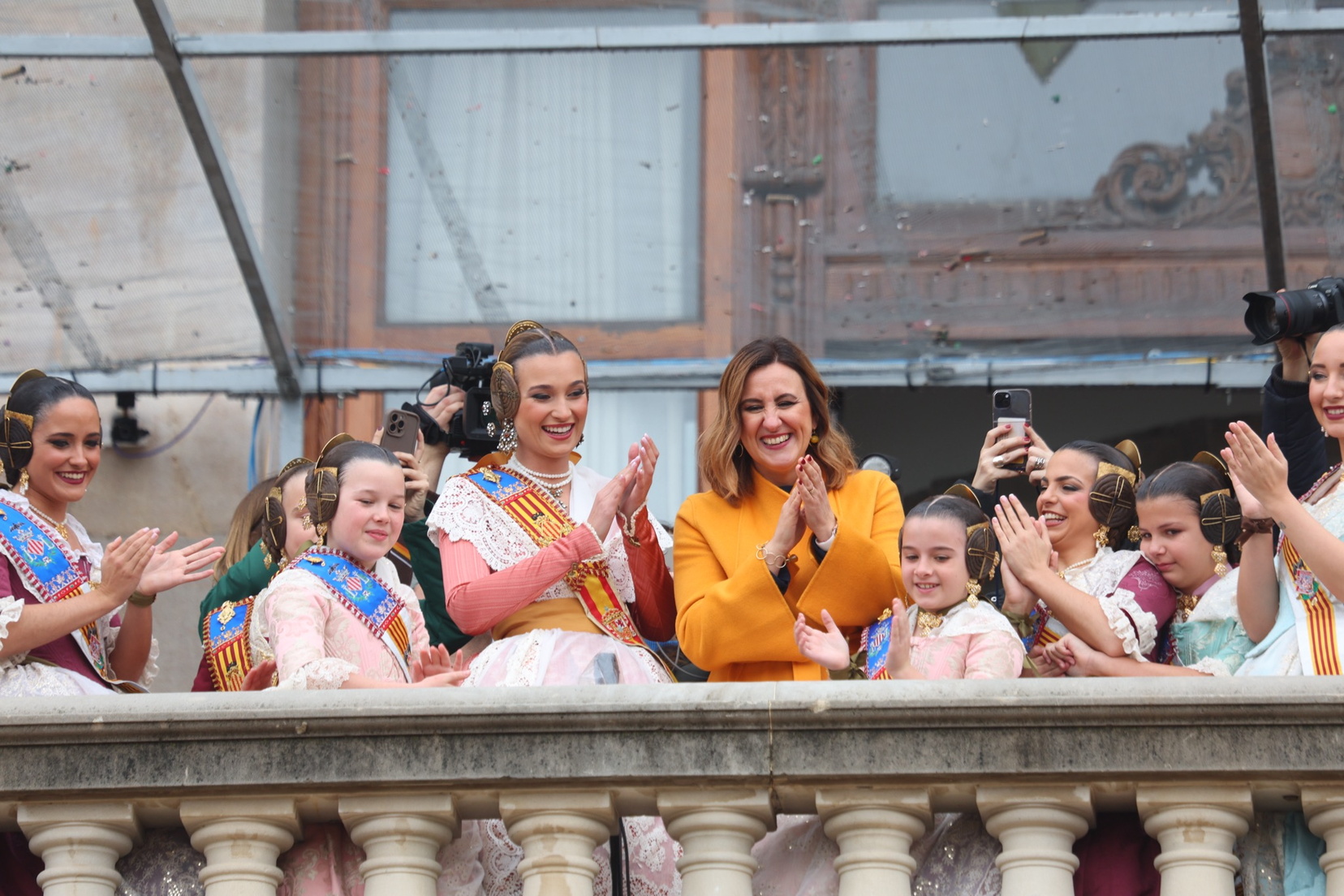 El balcón del Ayuntamiento también ha contado con la presencia de representantes de diversas comisiones falleras, entre ellas: