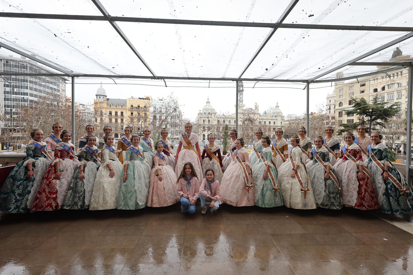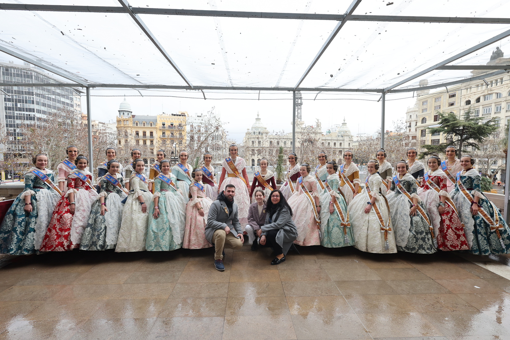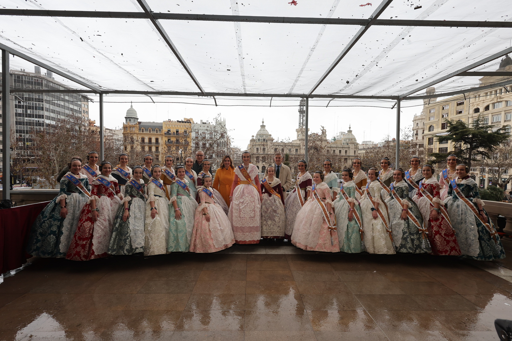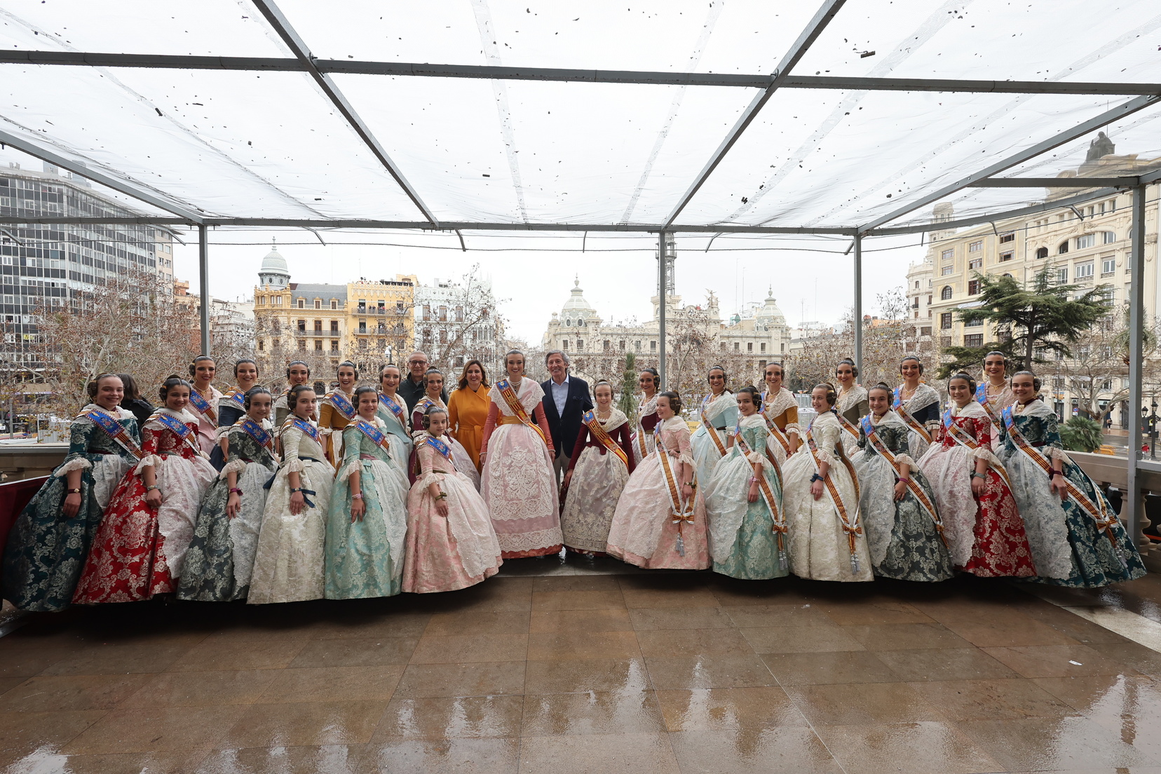 El balcón del Ayuntamiento también ha contado con la presencia de representantes de diversas comisiones falleras, entre ellas: