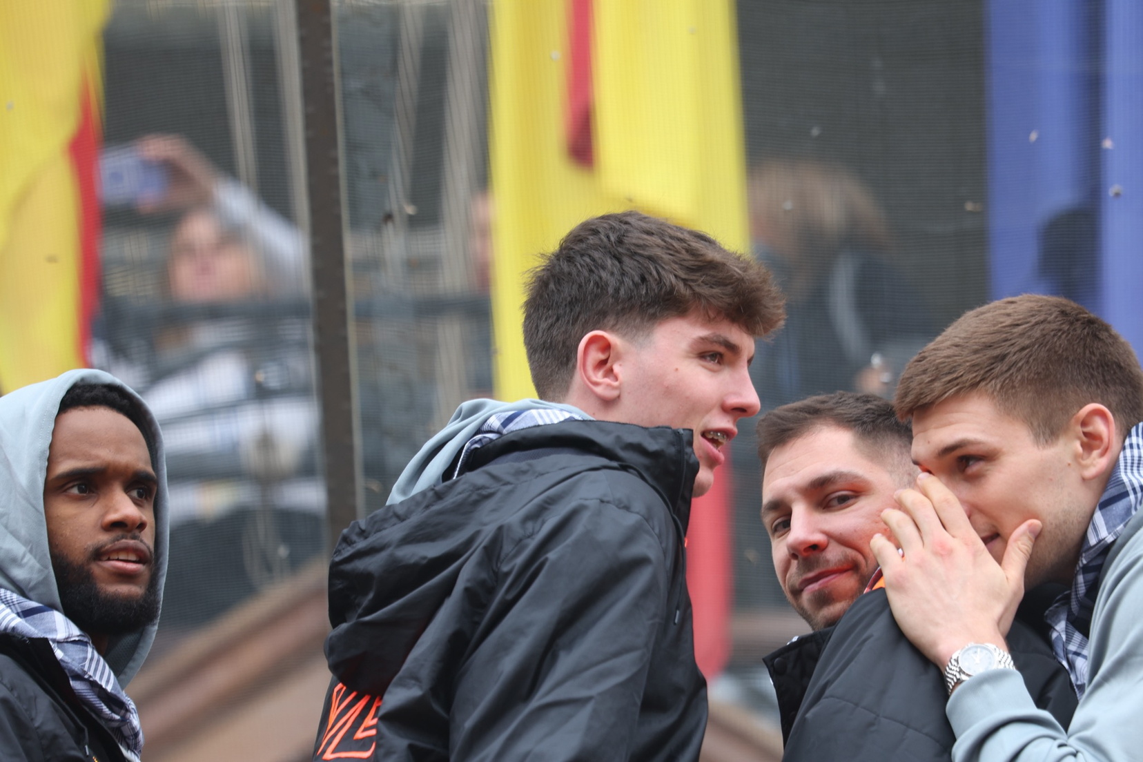 Vicent Solá, presidente del Valencia Basket, acompañado por jugadores del equipo masculino.
