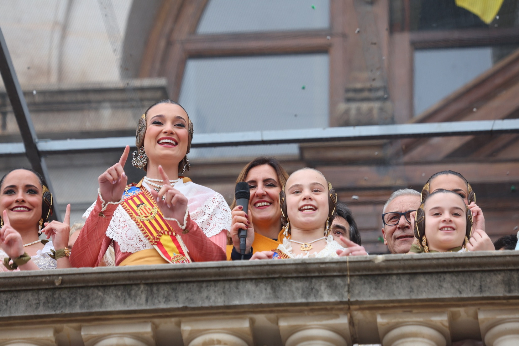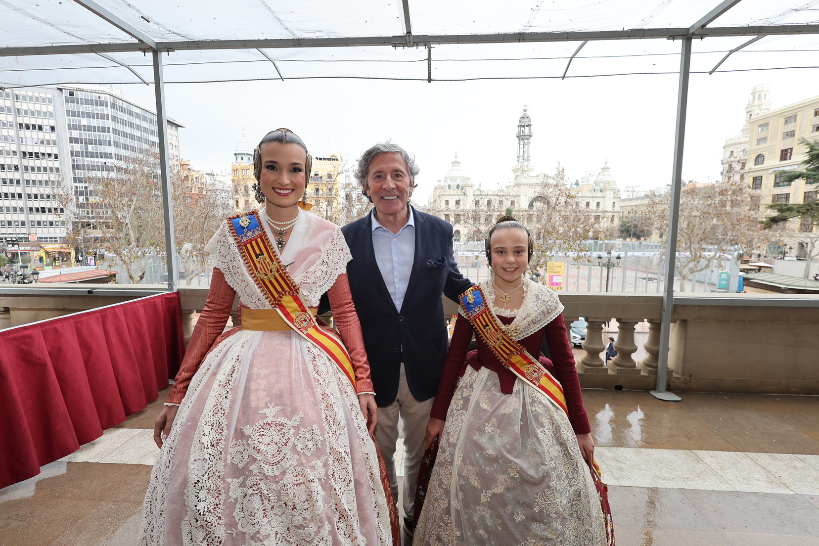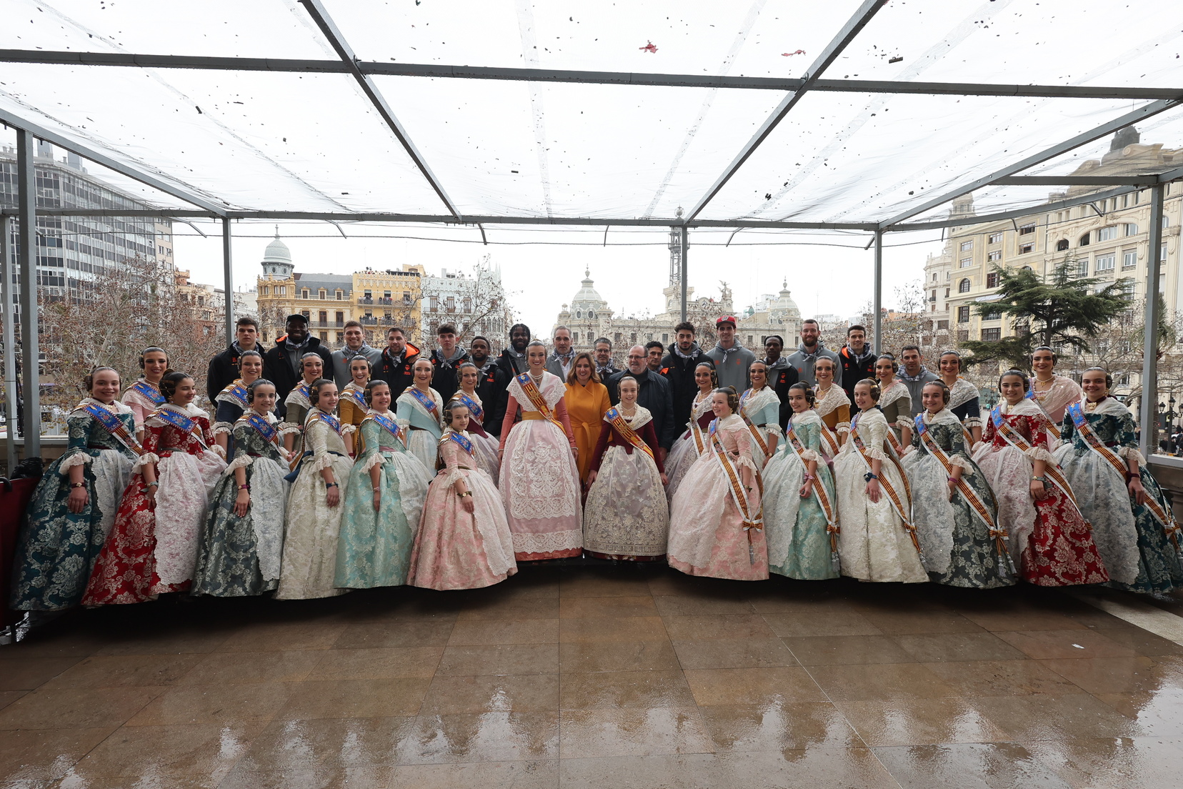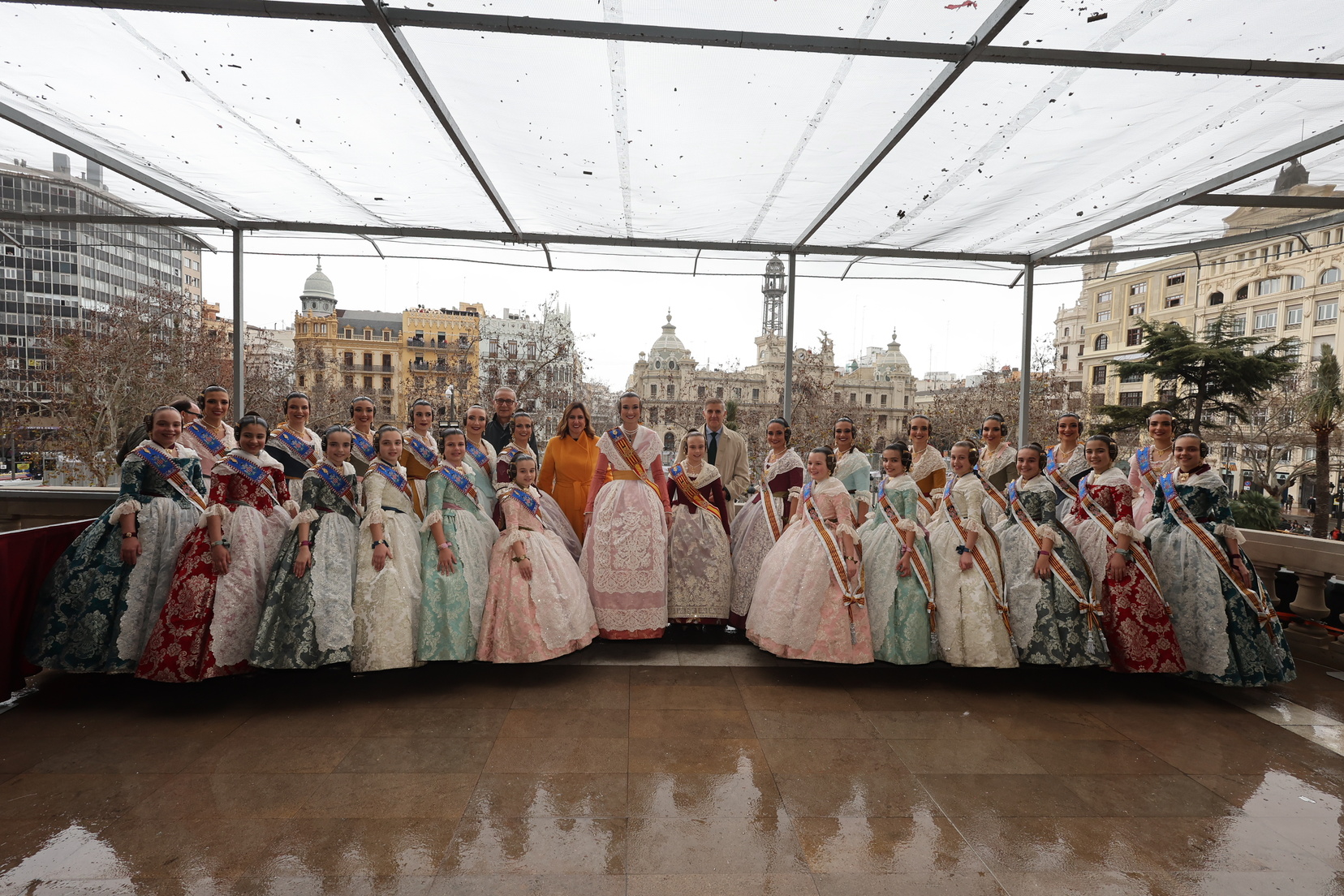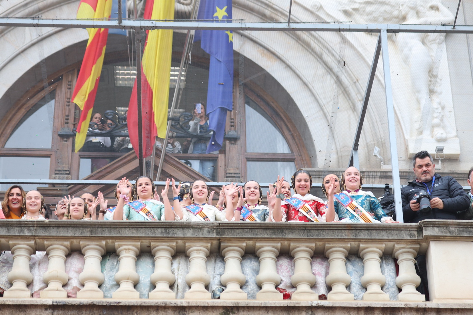 El balcón del Ayuntamiento también ha contado con la presencia de representantes de diversas comisiones falleras, entre ellas: