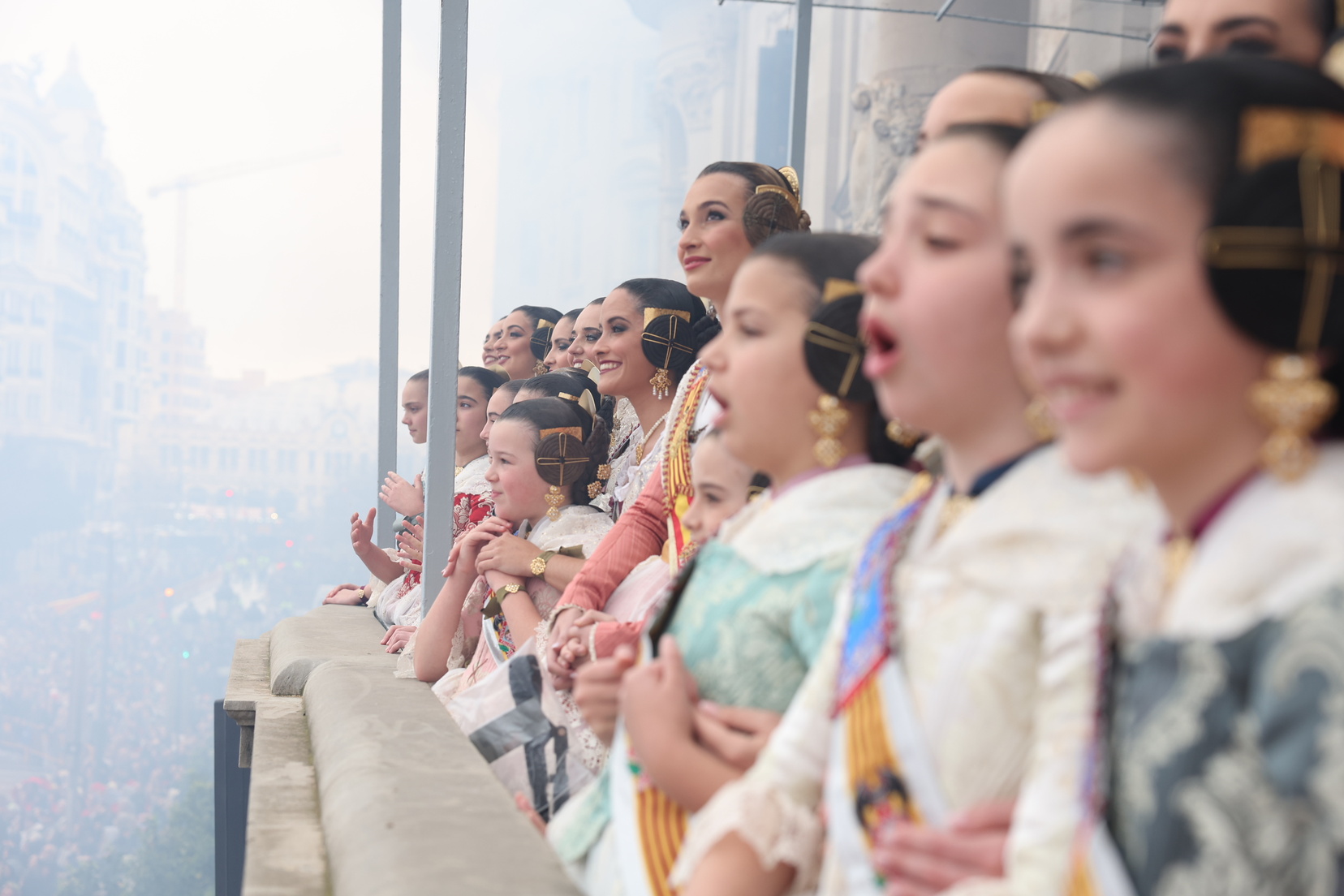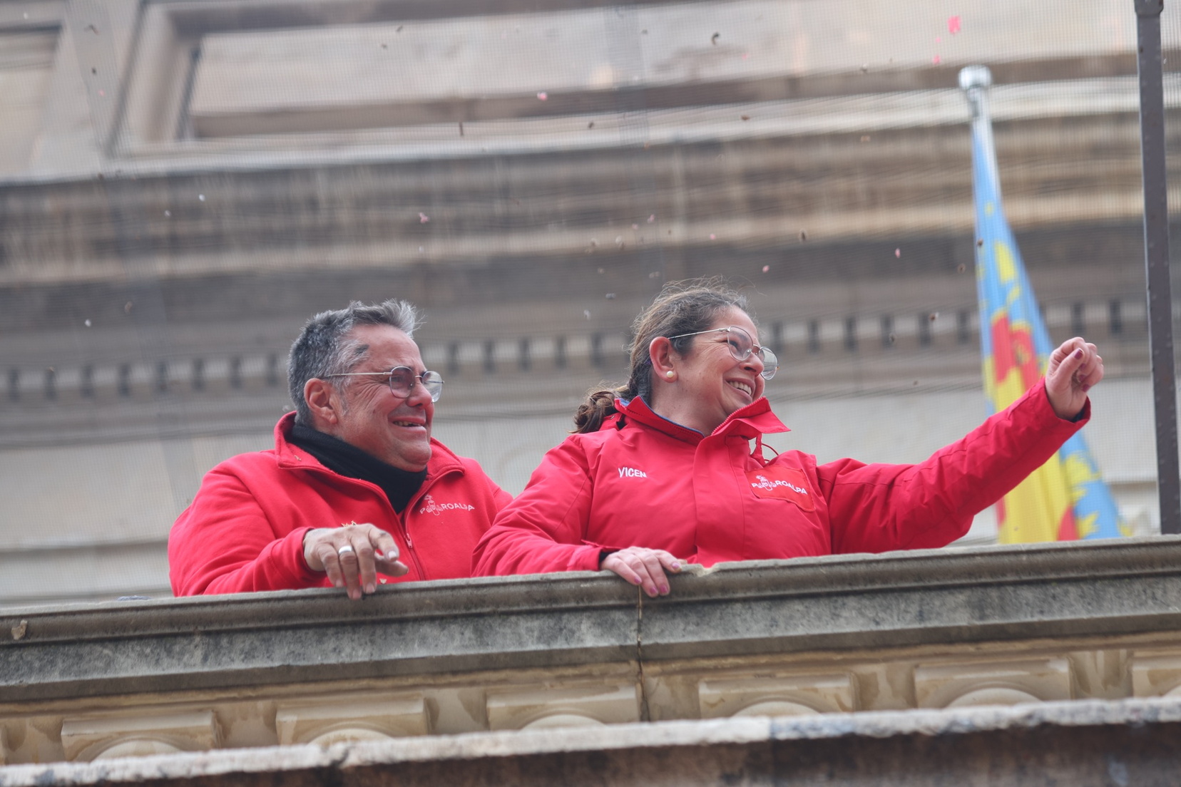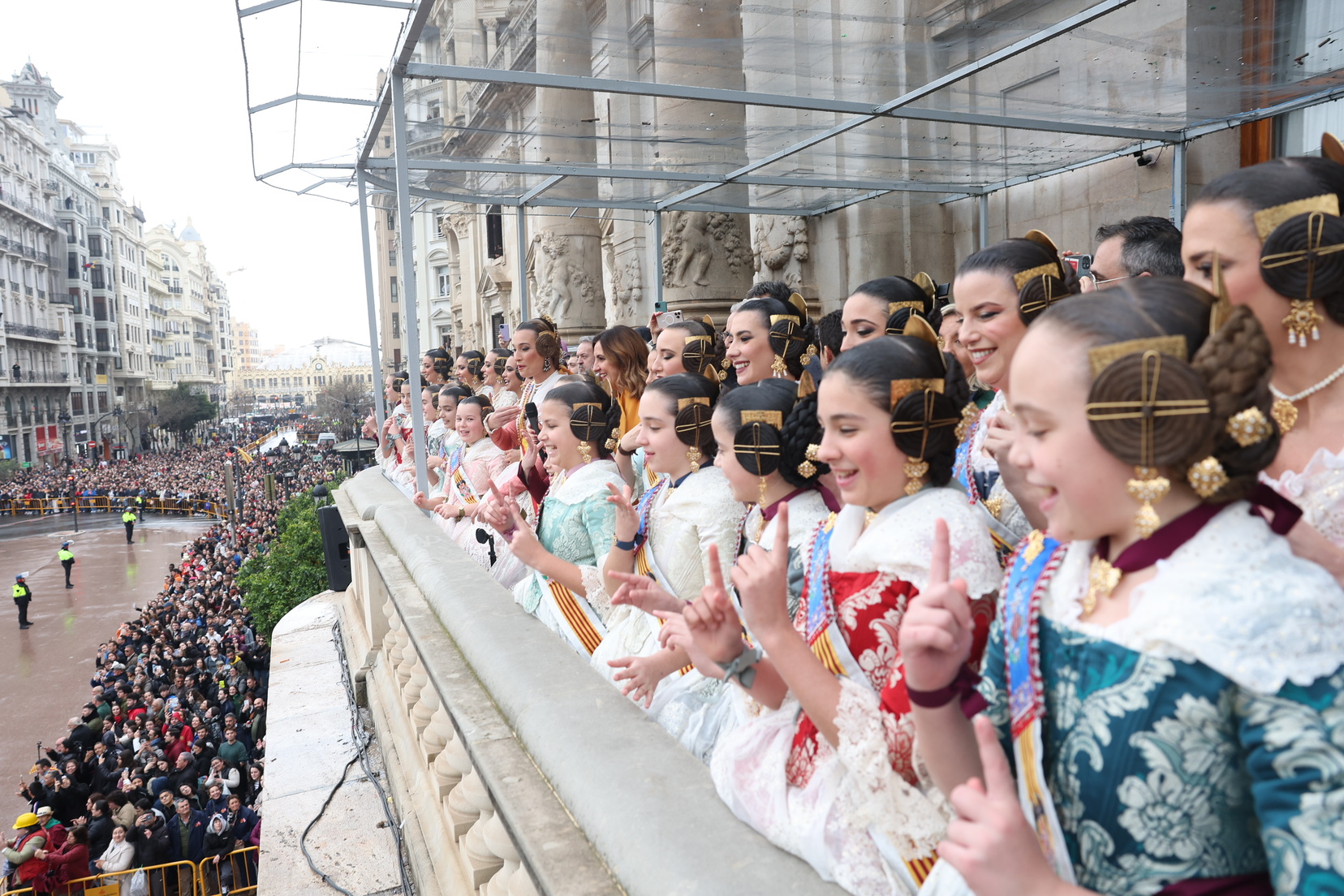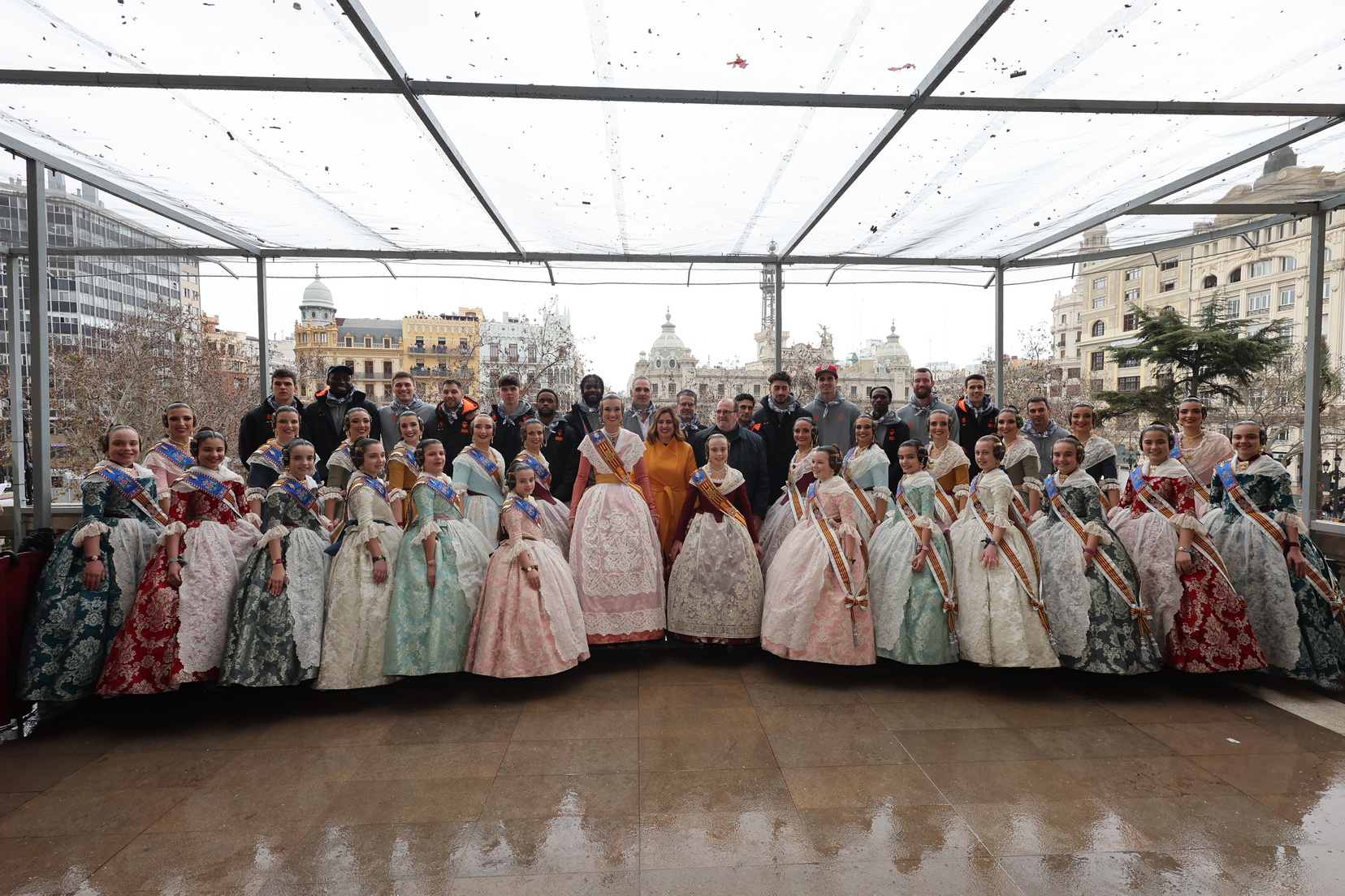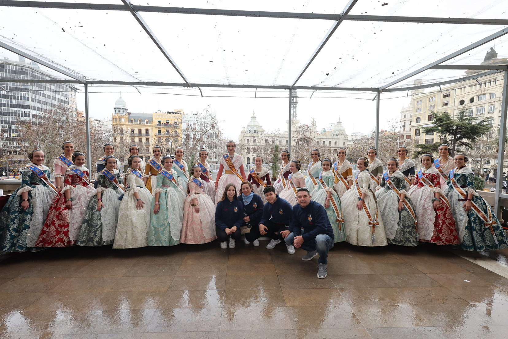 El balcón del Ayuntamiento también ha contado con la presencia de representantes de diversas comisiones falleras, entre ellas: