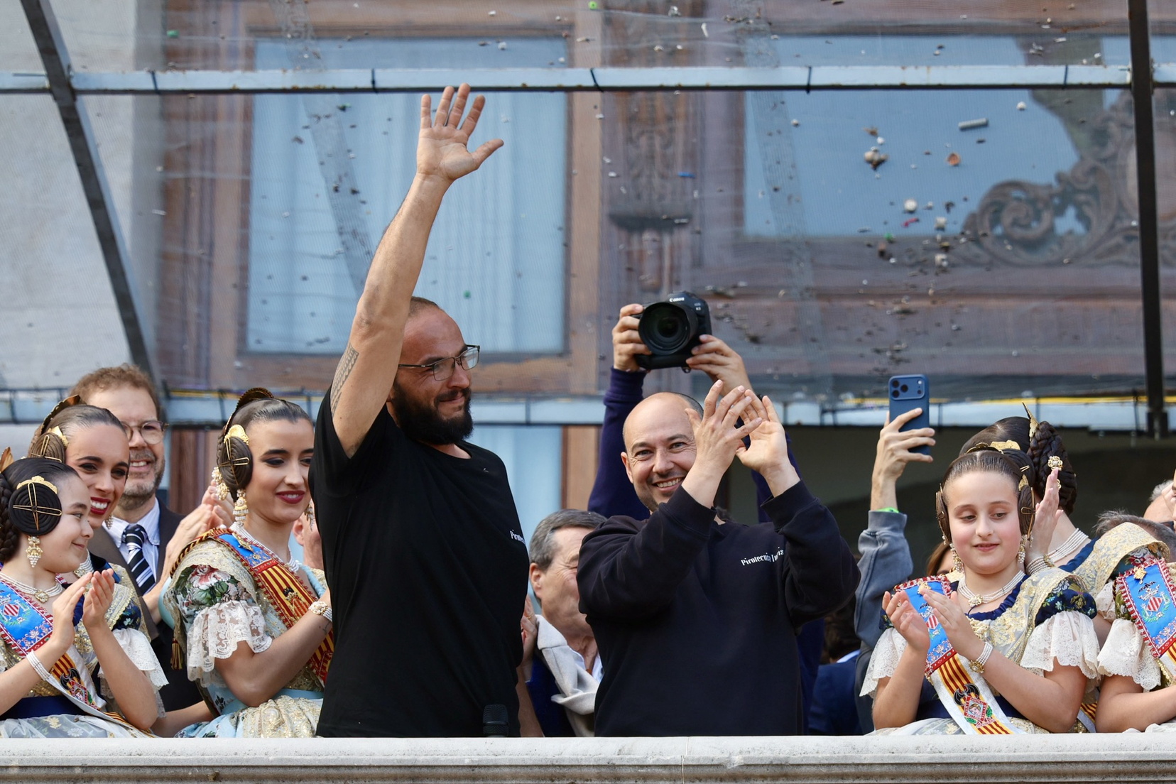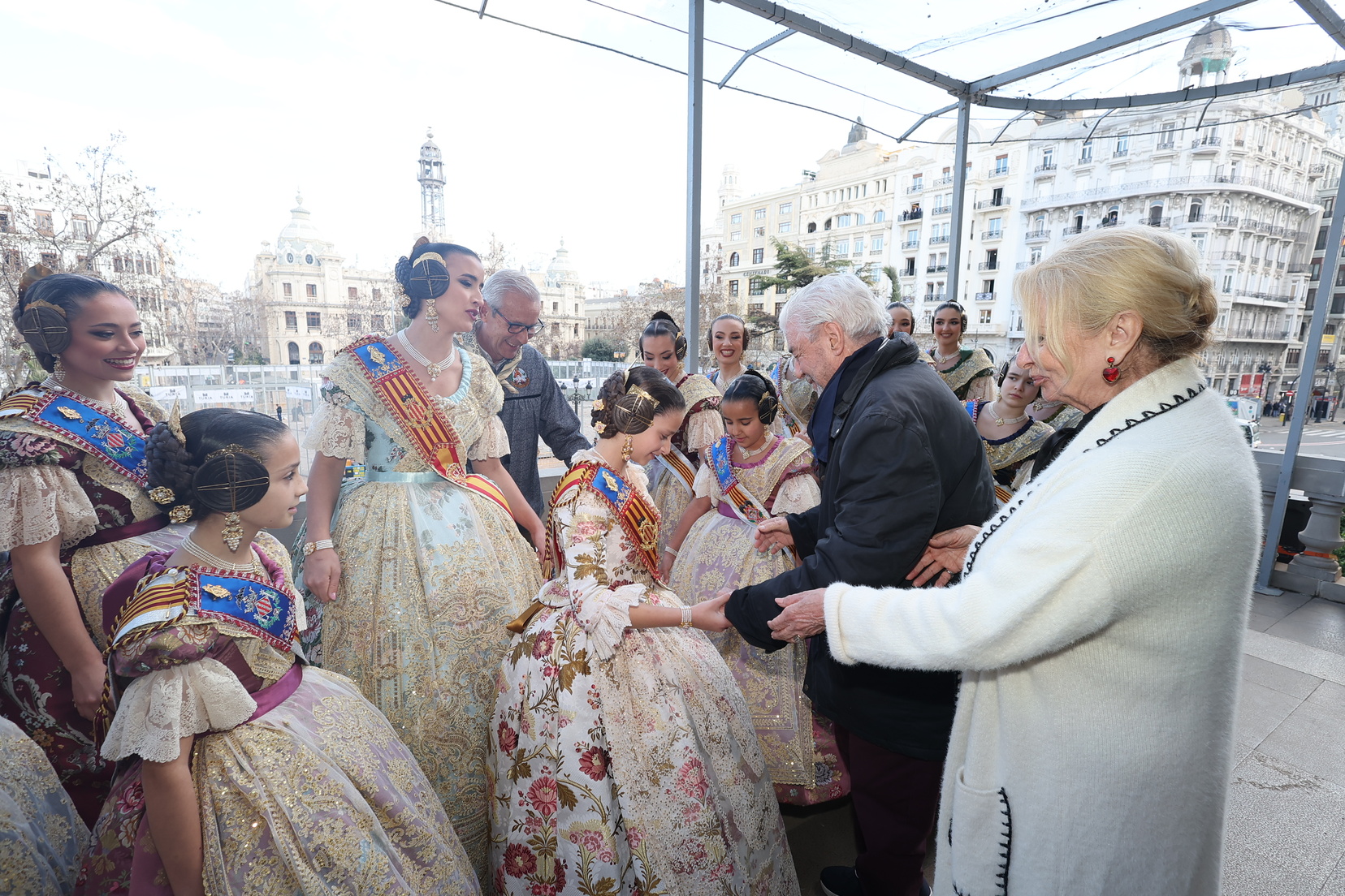 Cada día, el balcón municipal reúne a invitados vinculados a la cultura, la sociedad y el mundo fallero para disfrutar de la mascletà, uno de los actos más emblemáticos de las Fallas y que cada jornada congrega a miles de personas en la plaza del Ayuntamiento.