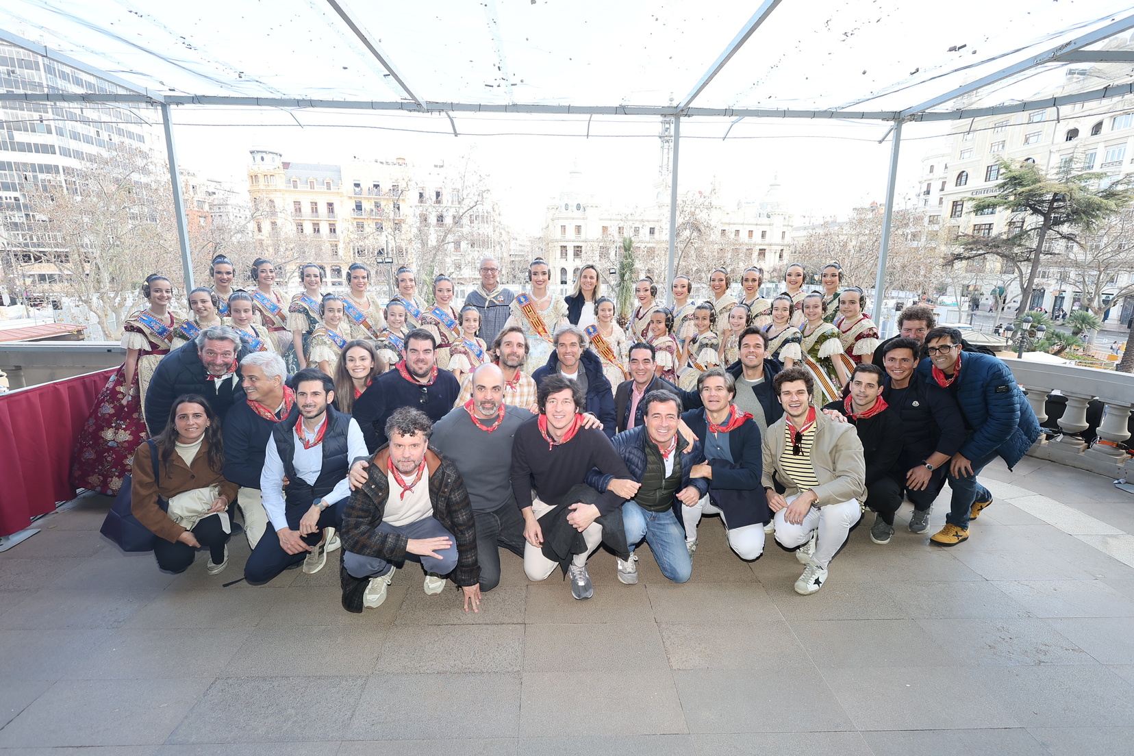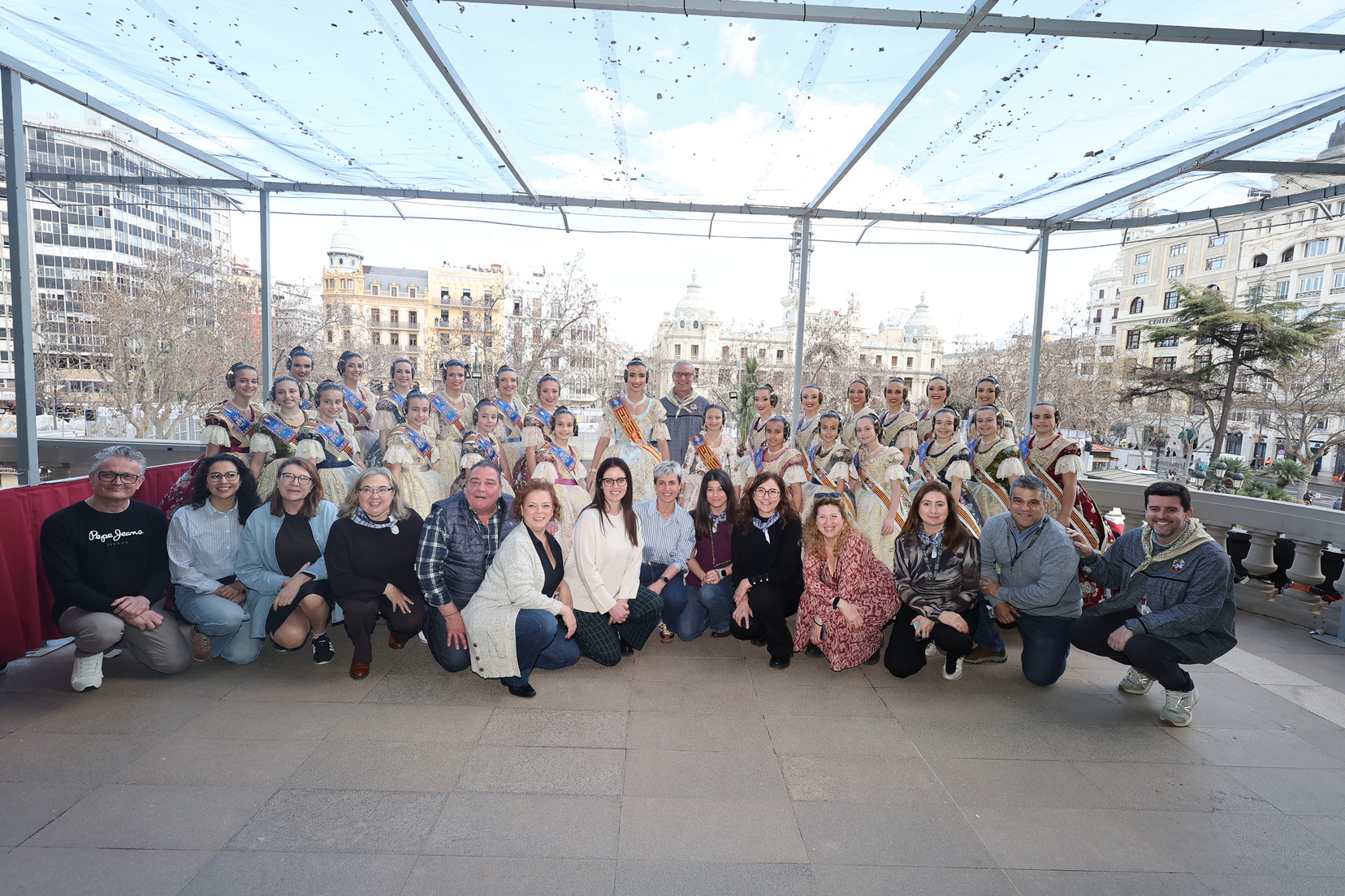 Como es habitual durante las Fallas, varias comisiones falleras han sido invitadas a disfrutar del espectáculo pirotécnico desde el balcón del Ayuntamiento. Entre ellas: