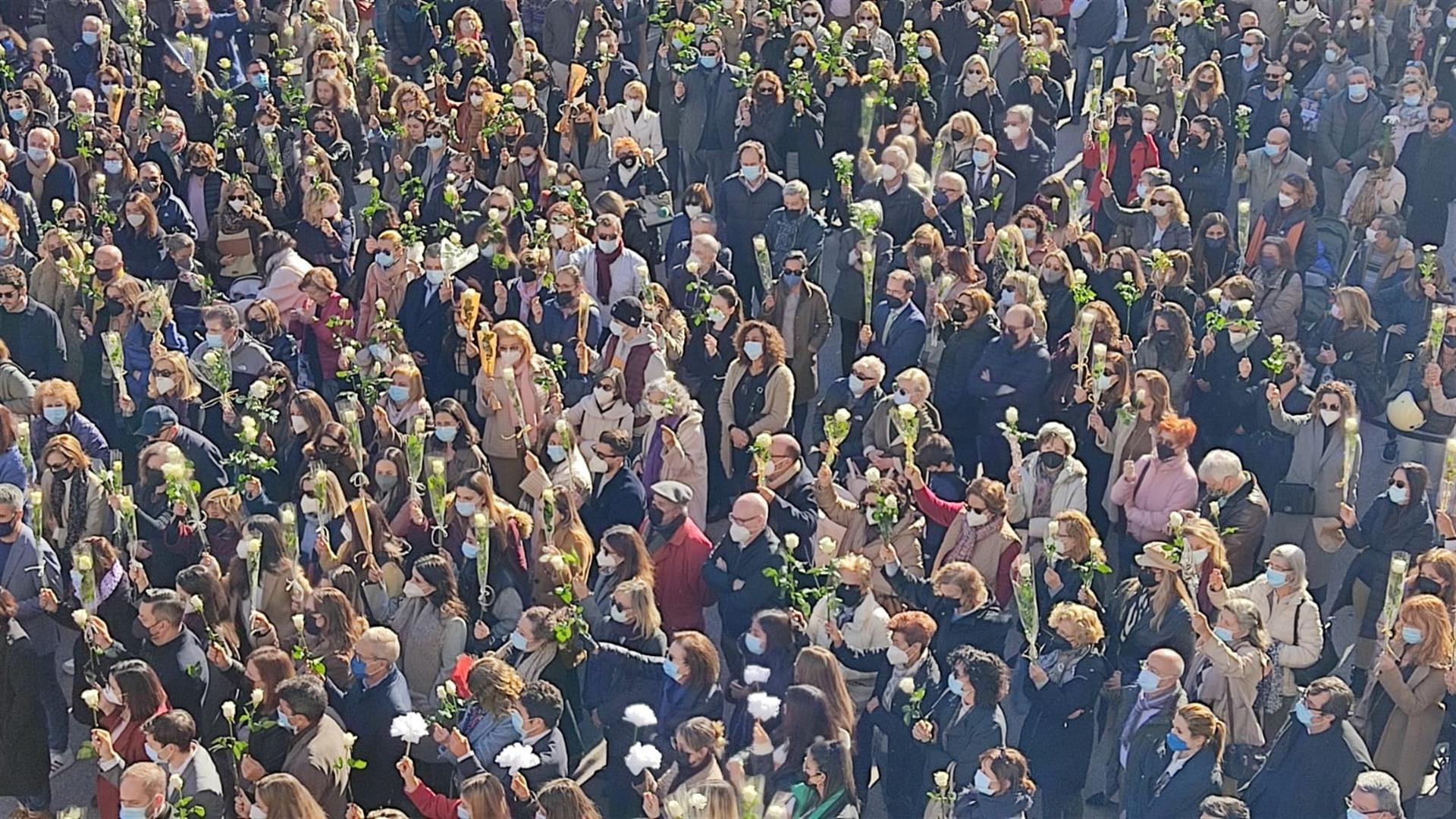 Durante la concentración, en la que se han sucedido los abrazos y las muestras de dolor, se ha guardado un minuto de silencio con los brazos en alto mostrando las rosas blancas, y tras un prolongado aplauso en recuerdo de la joven, se han depositado las flores alrededor de un pilón de la plaza.