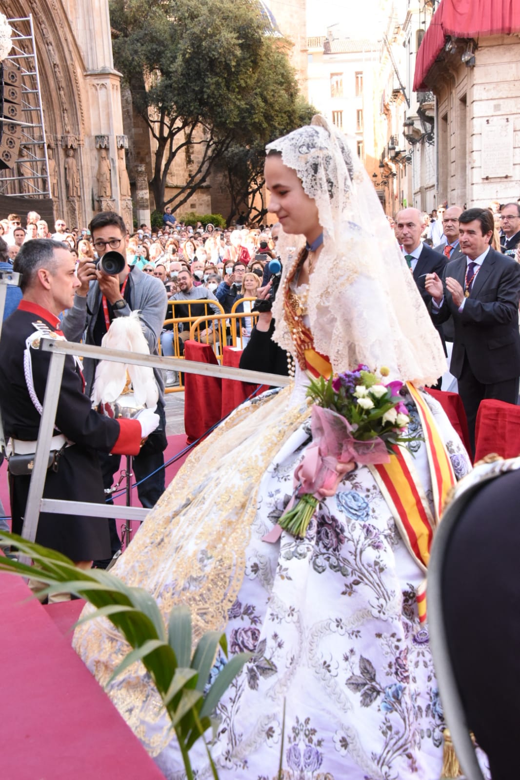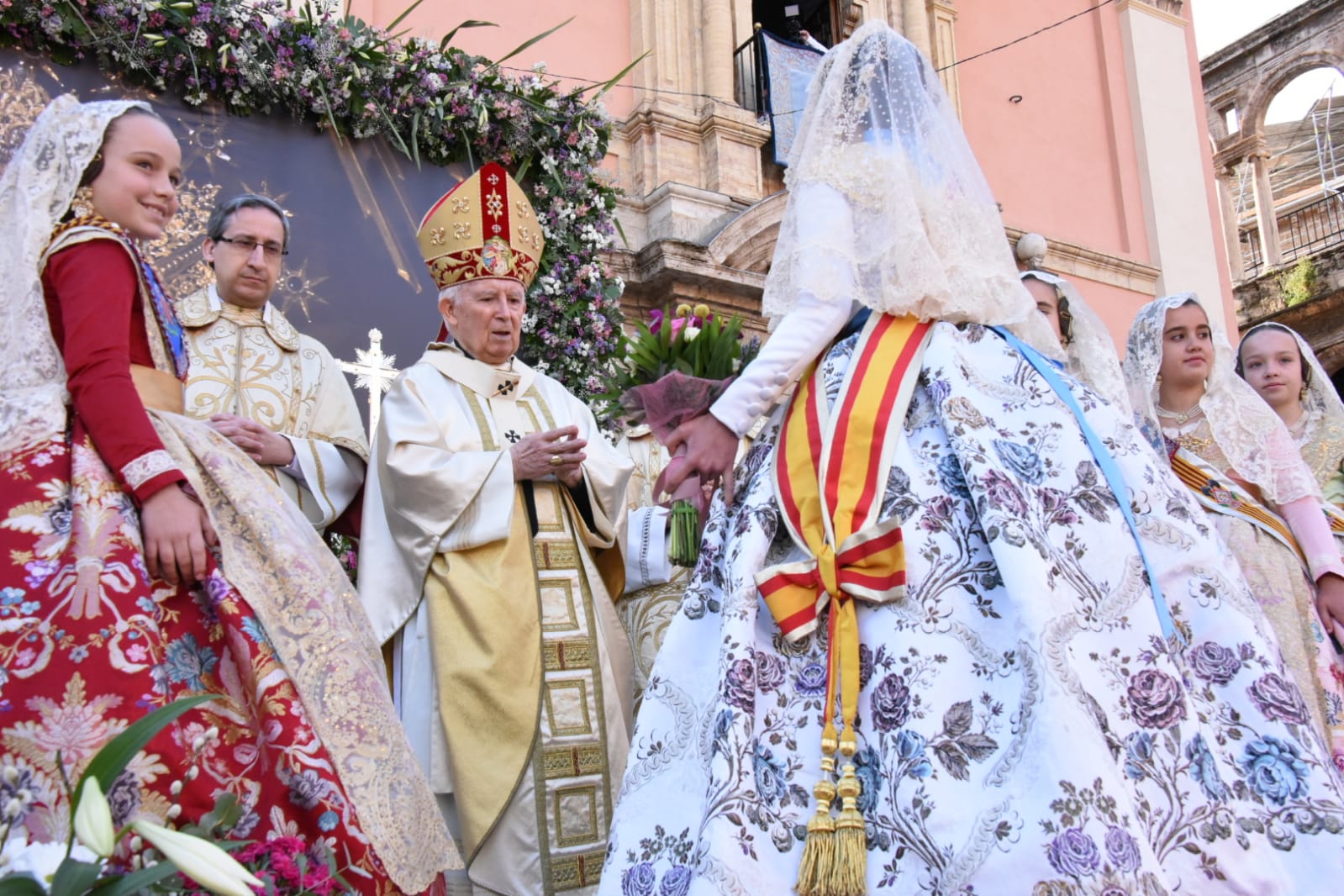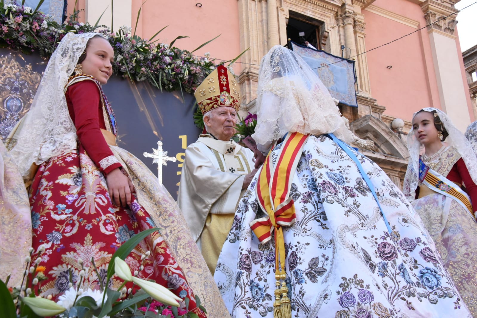 La celebración ha finalizado con una oración de la fallera mayor infantil de Valencia, Nerea López Maestre ha realizado en representación de todos los niños valencianos y una ofrenda de flores de la corte de honor infantil.